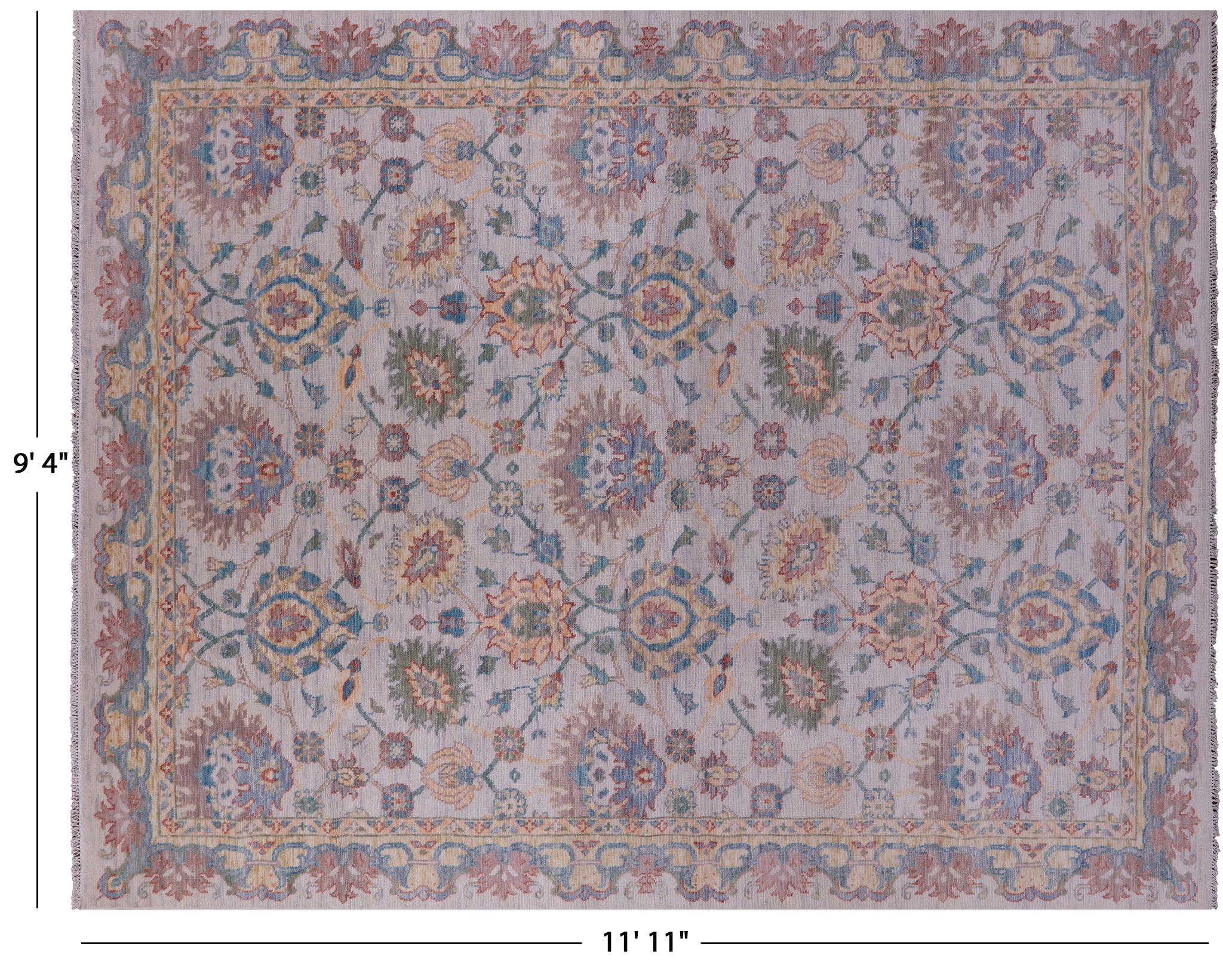 Ivory 9' 4" X 11' 11" William Morris Handmade Wool Rug - Q19057