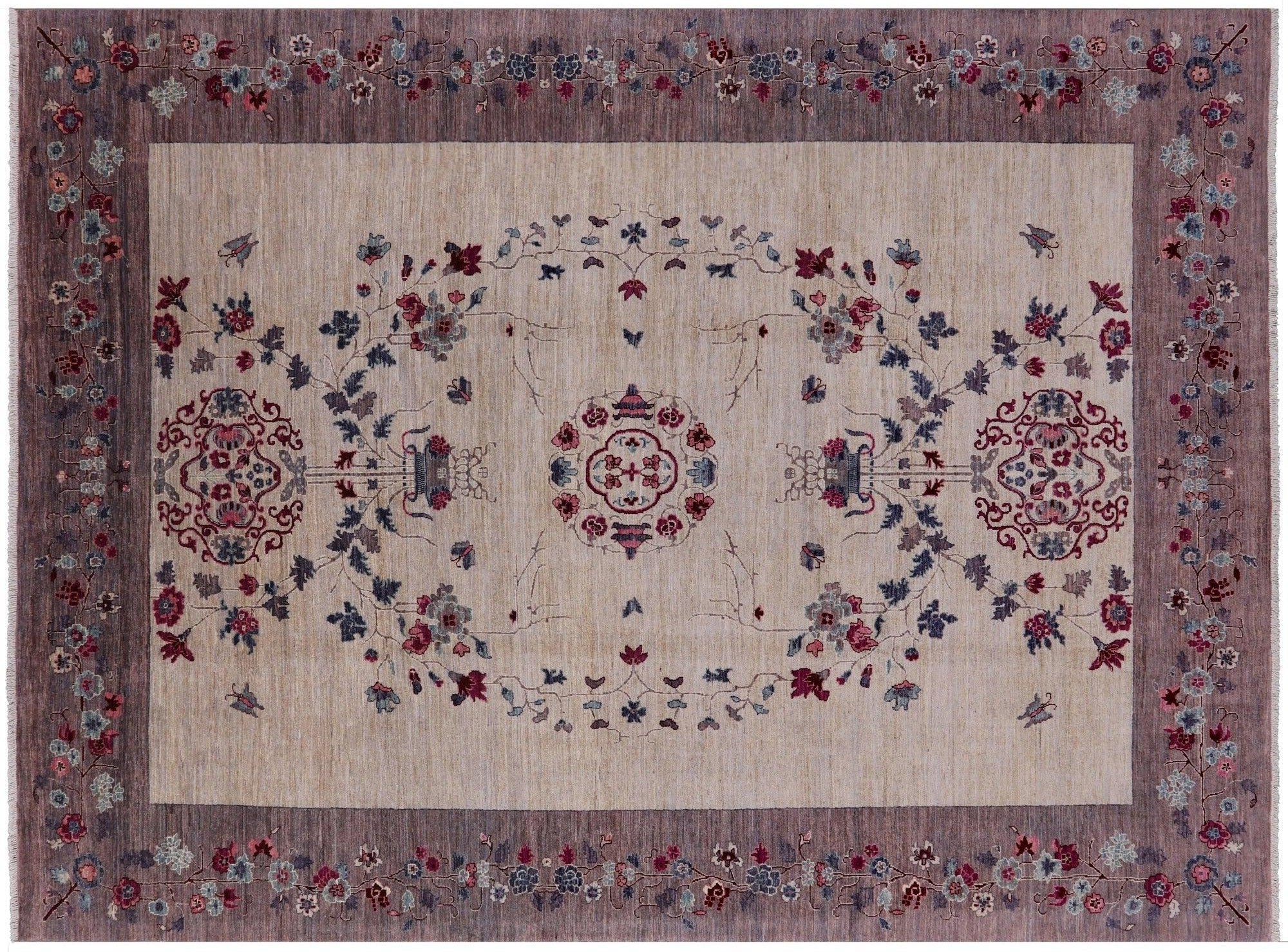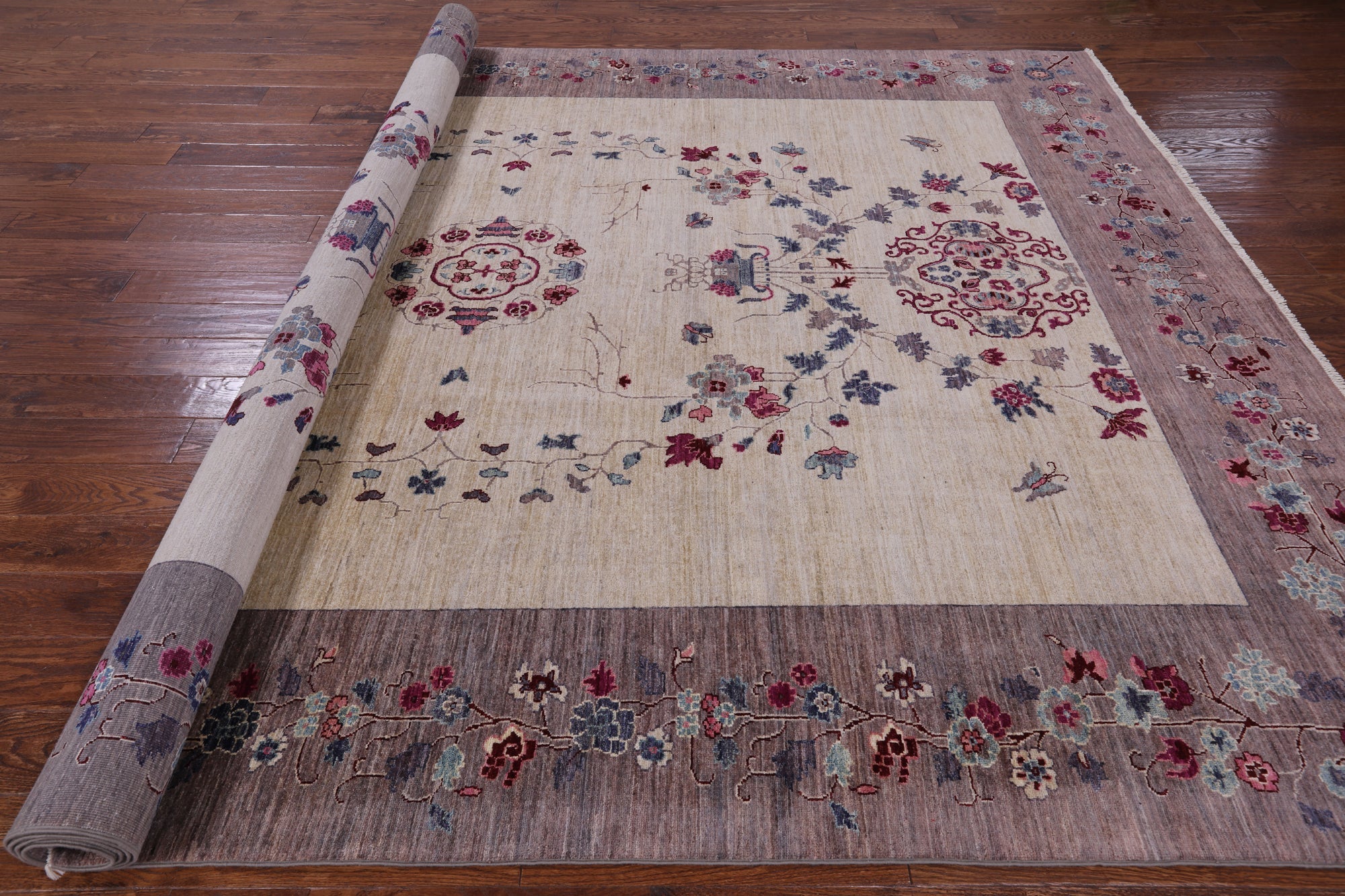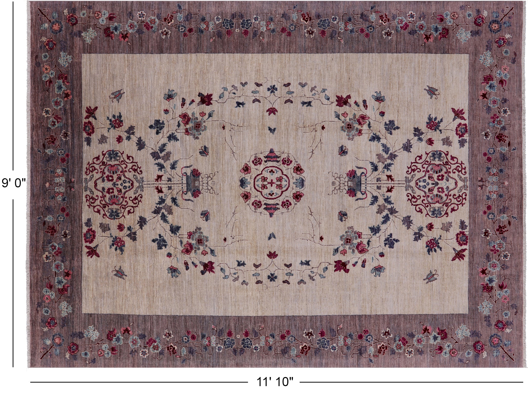 Ivory 9' 0" X 11' 10" William Morris Handmade Wool Rug - Q9436