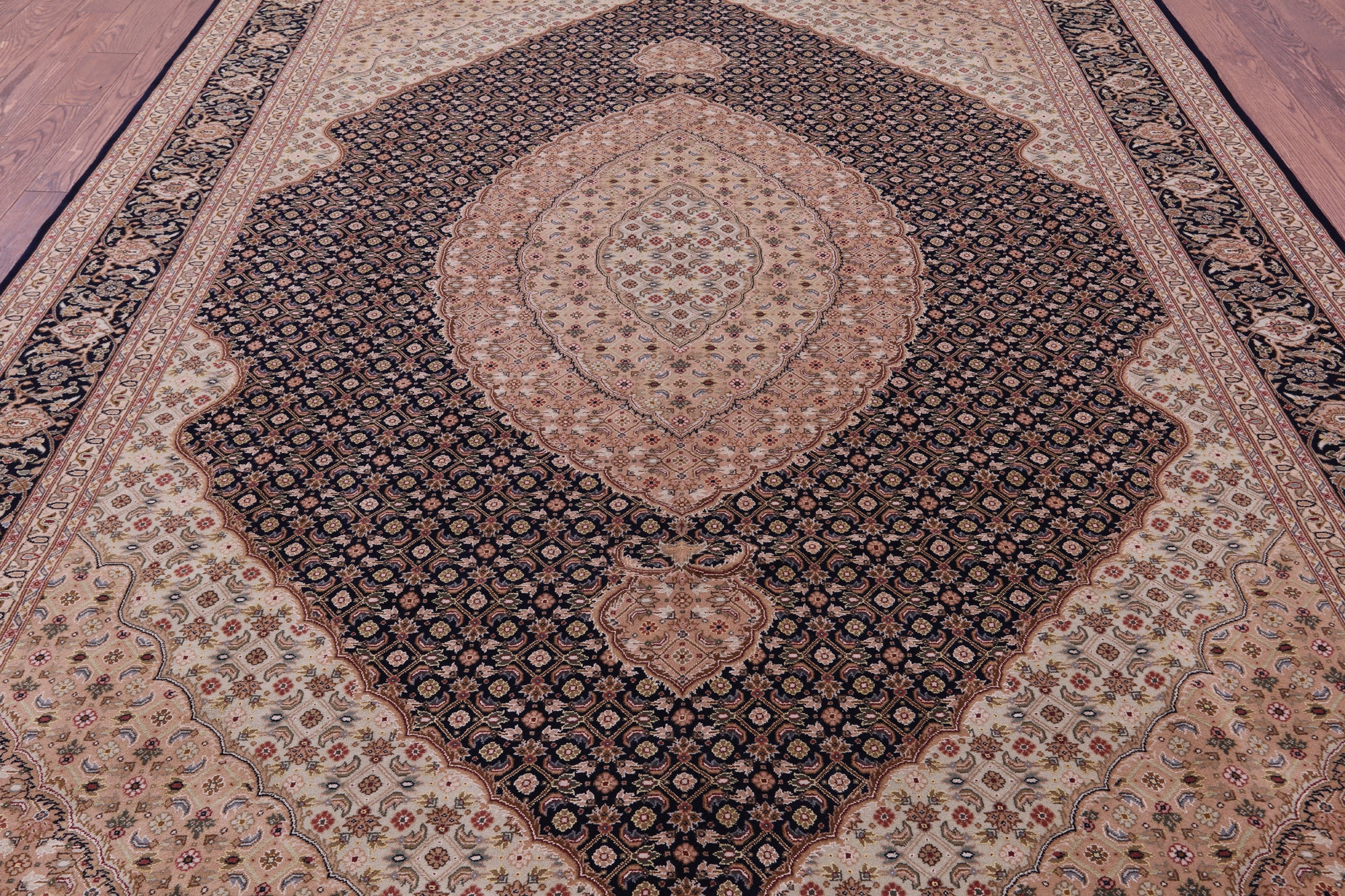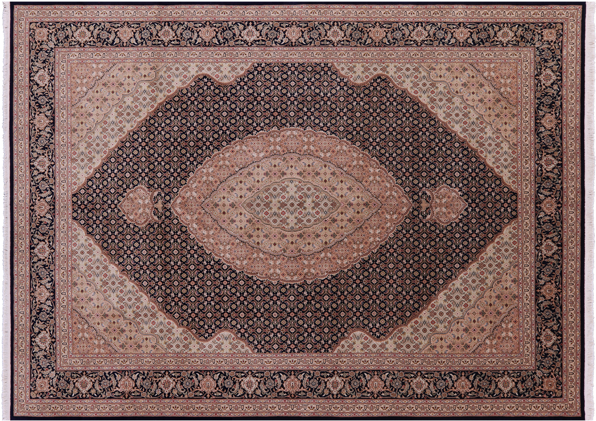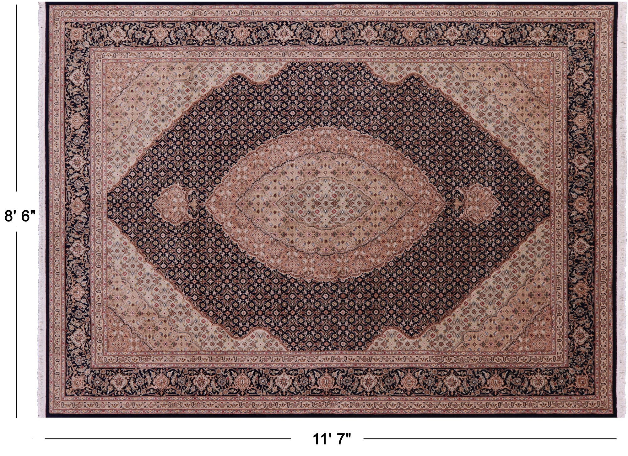Navy Blue 8' 6" X 11' 7" Persian Tabriz Handmade Wool & Silk Rug - Q23662