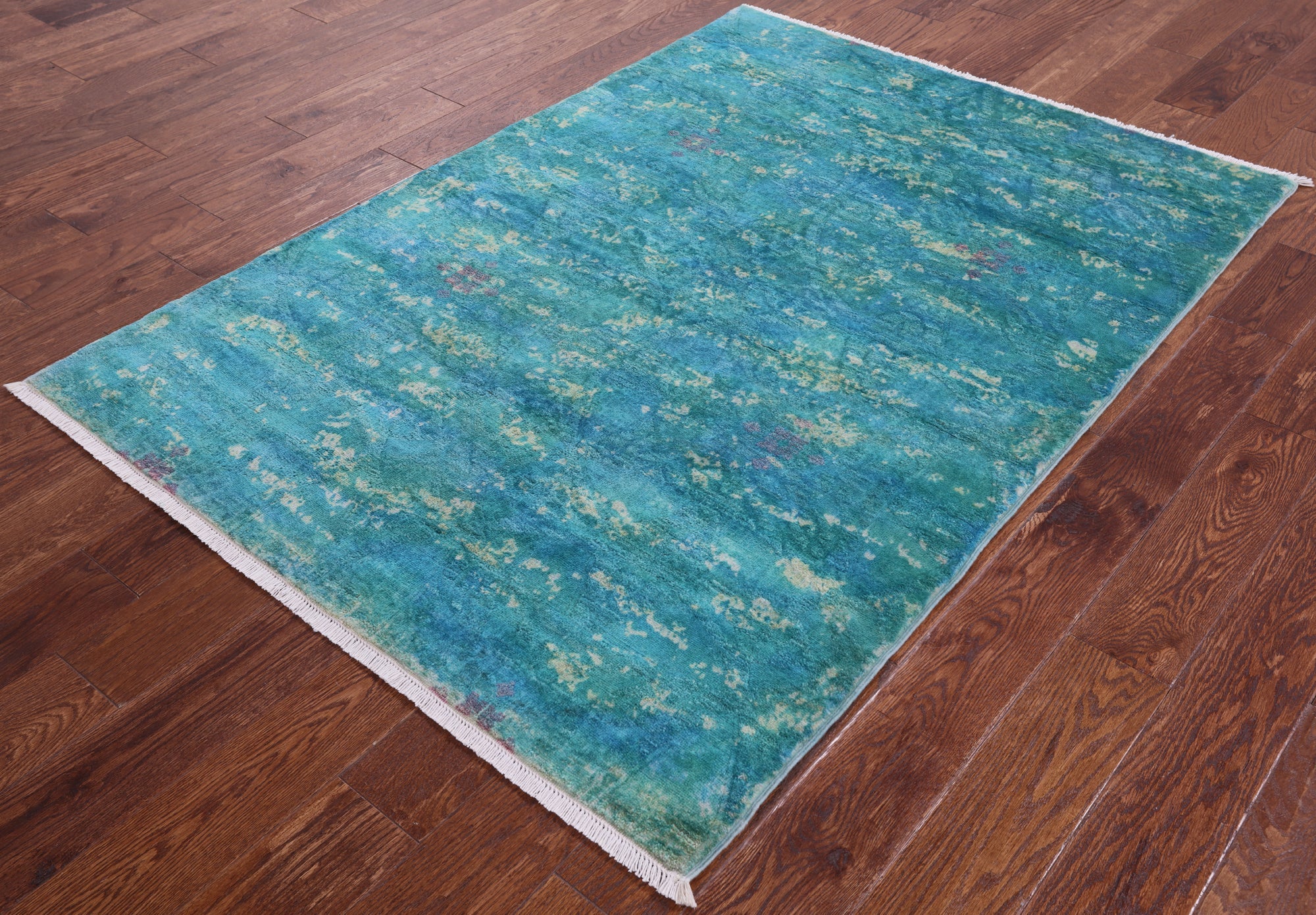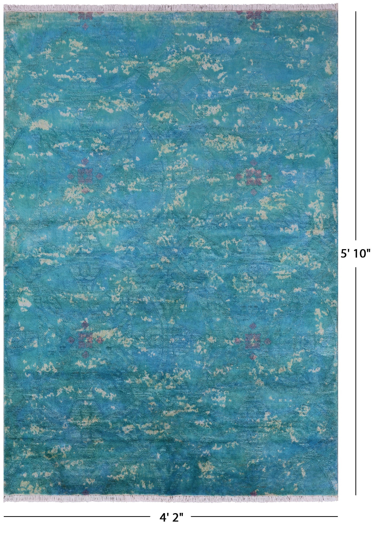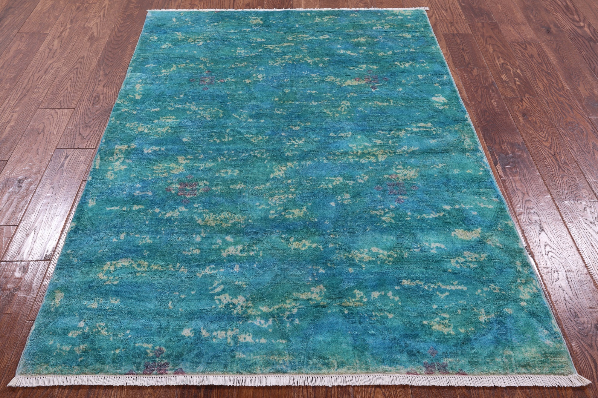 4' 2" X 5' 10" Overdyed Full Pile Wool Hand Knotted Rug - Q6703