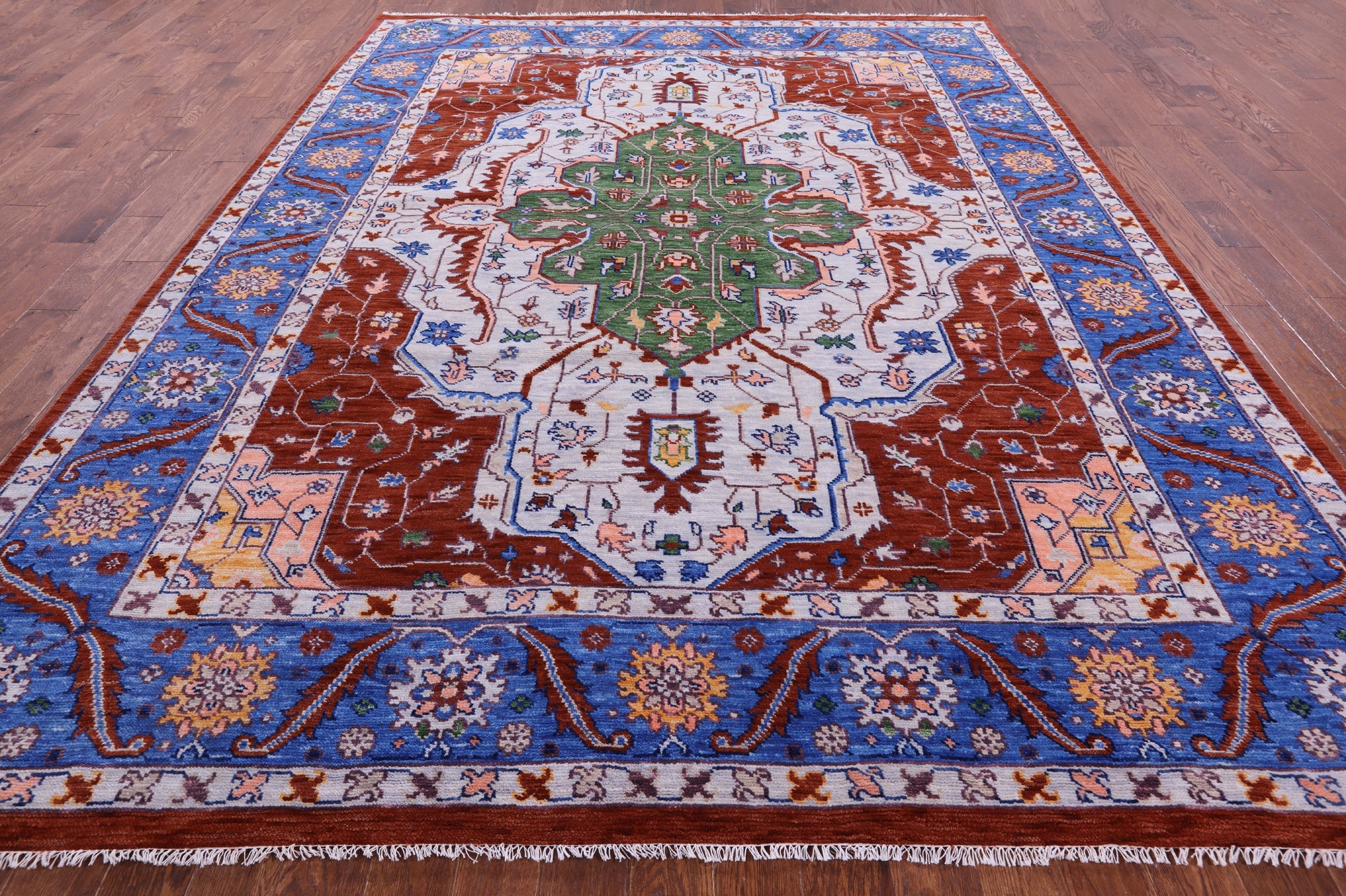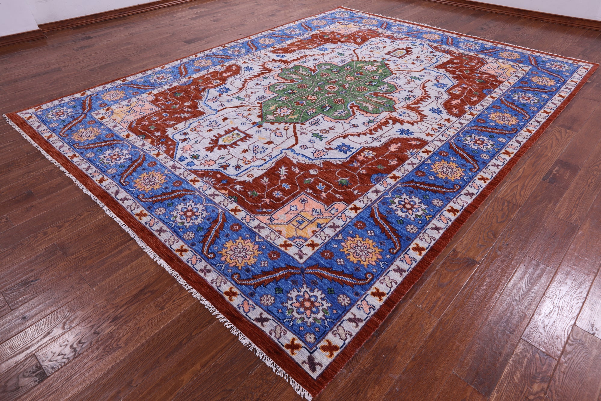 Heriz, Serapi rugs are well known for their bold and angular designs. Many being symmetric, they withhold boldly done geometric and floral-inspired shapes. These shapes are brought out with rich reds, blues, greens, and yellows contrasted against ivory. Heriz, Serapi rugs are very elegant and durable, perfect for a variety of different rooms and spaces within a home.