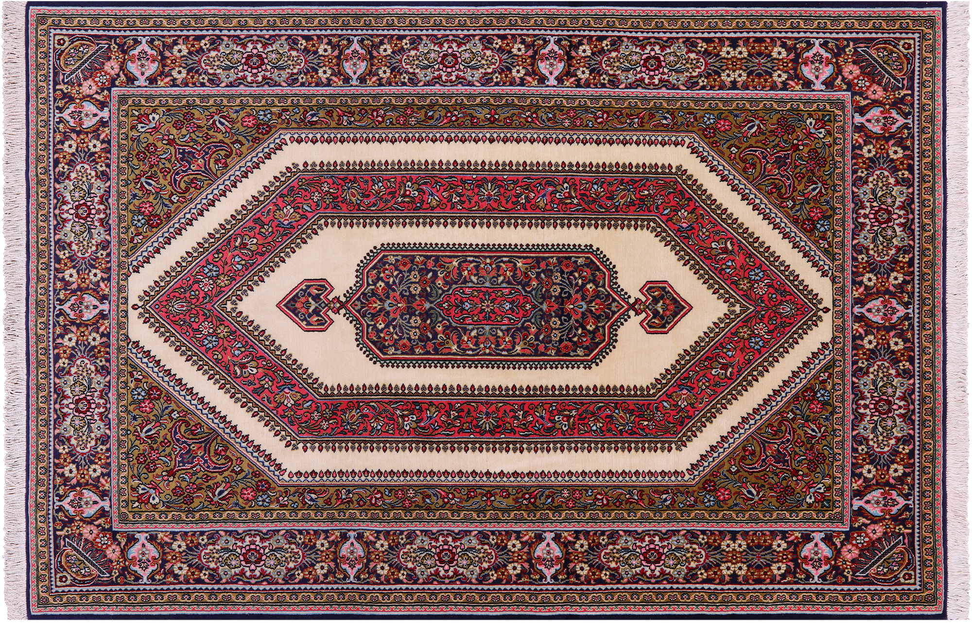 4' 7" X 6' 11" Persian Qum Hand Knotted Wool Rug - Q23653