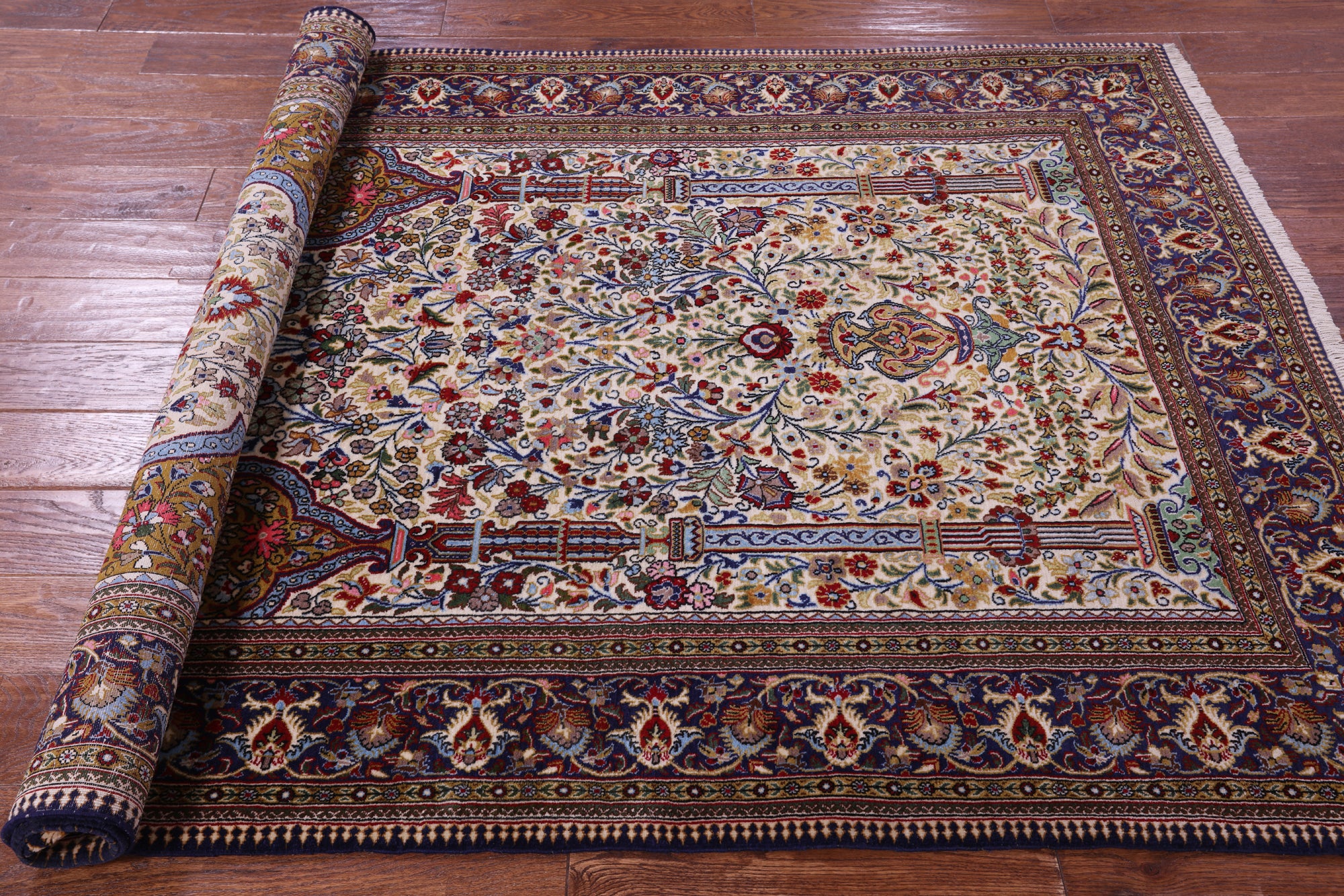 4' 8" X 7' 0" Persian Qum Handmade Wool Rug - Q23651 is backordered and will ship as soon as it is back in stock.