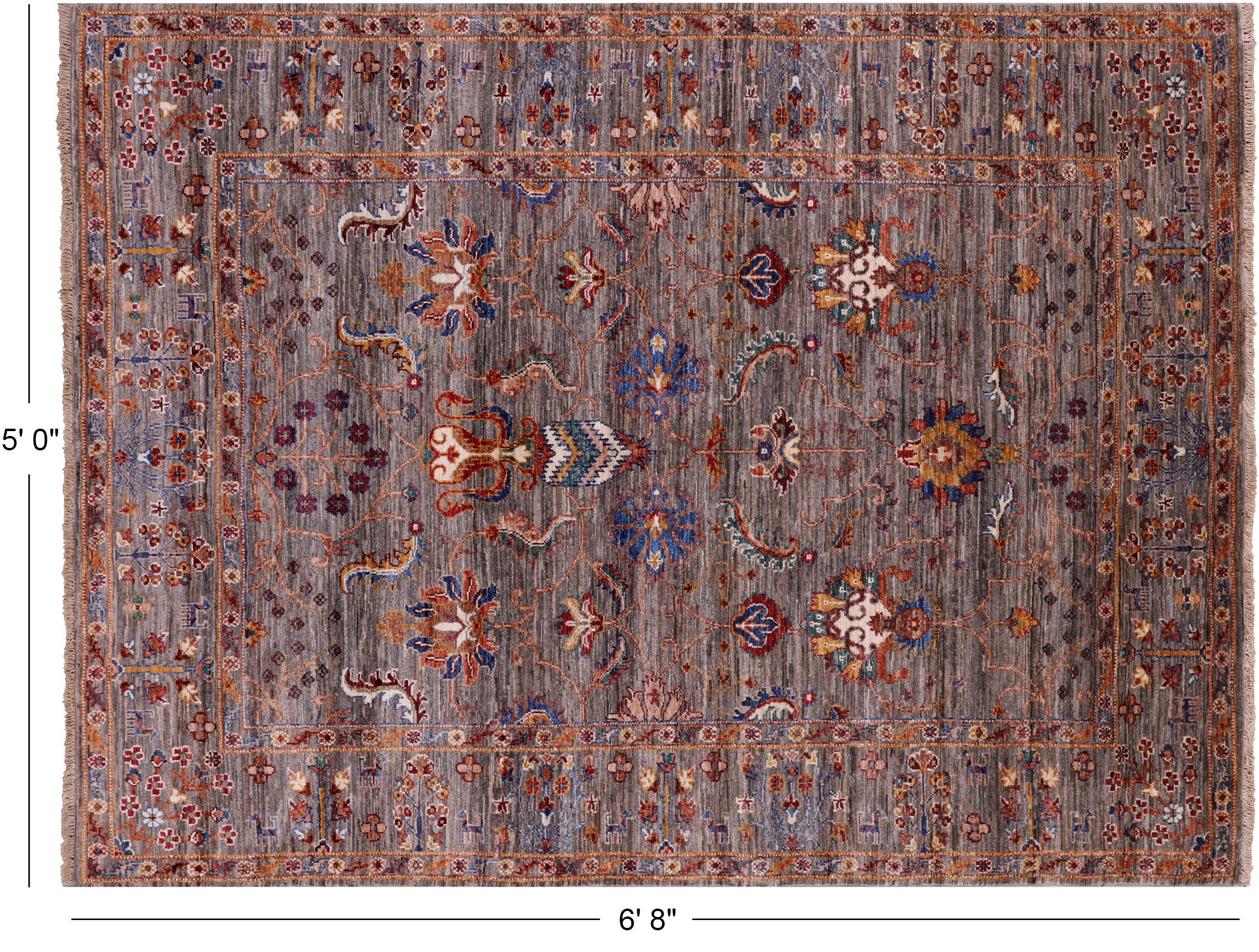 Persian Tabriz Hand Knotted Wool Rug 5' 0" X 6' 8" - Q5748