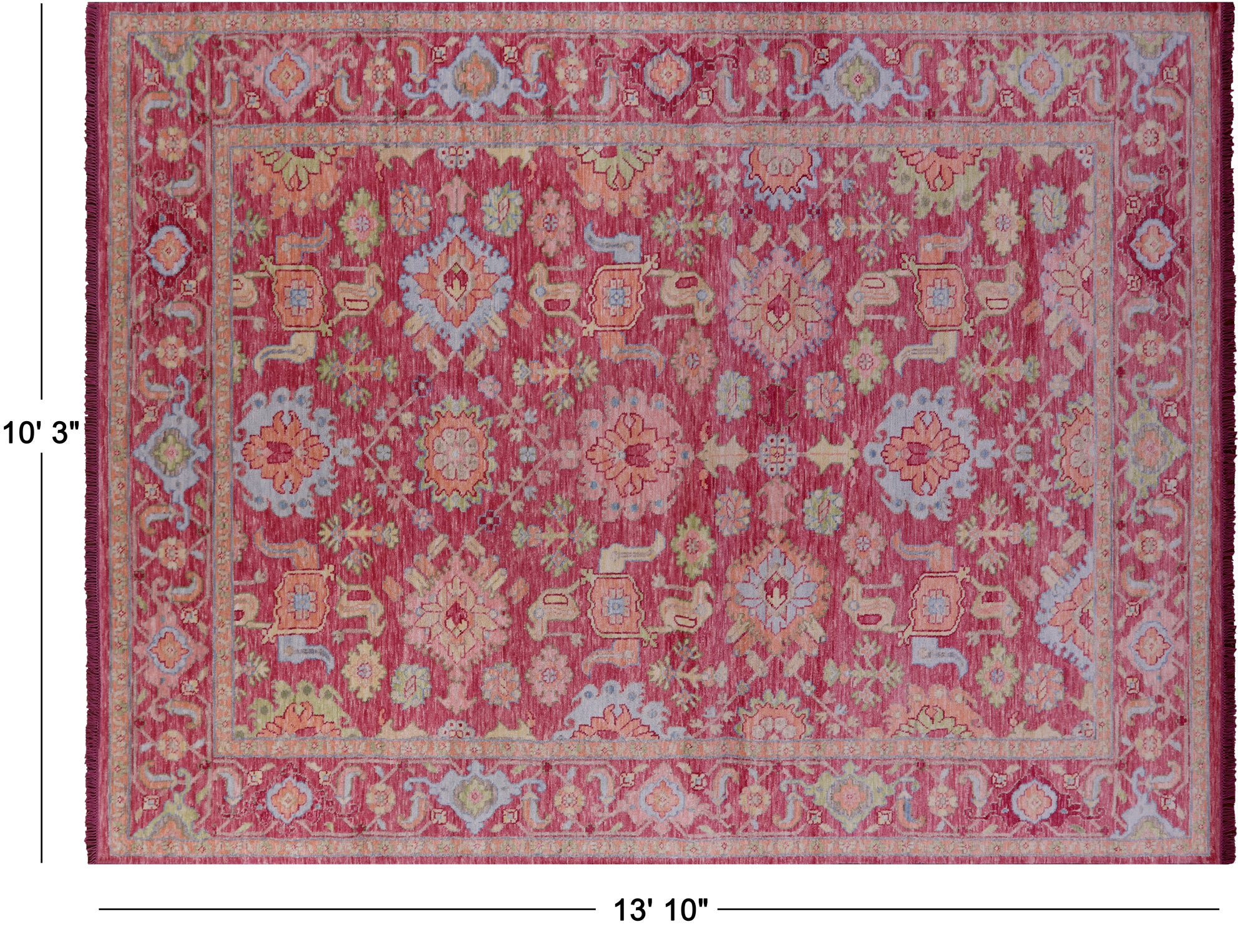 Pink 10' 3" X 13' 10" Persian Heriz Serapi Hand-Knotted Wool Rug - Q22295