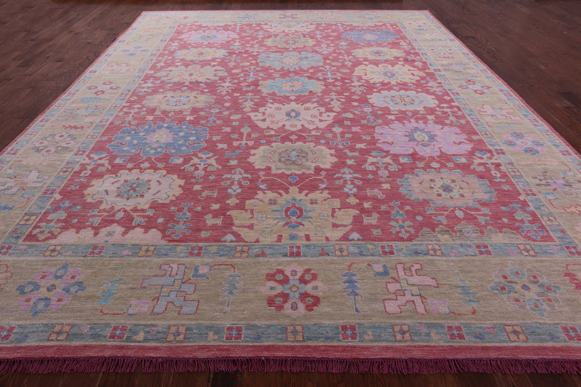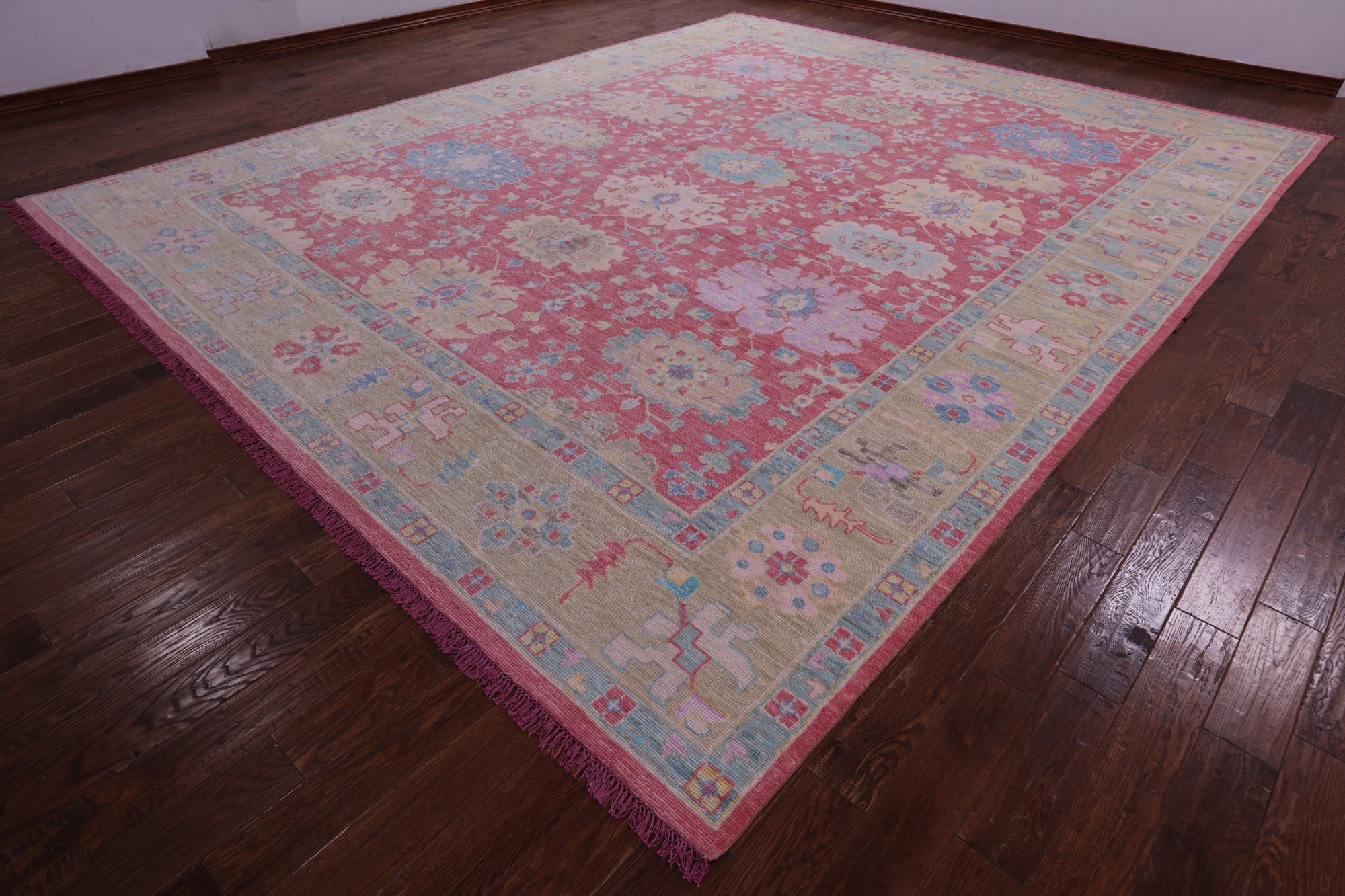 Pink Turkish Angora Oushak Handmade Wool Rug 12' 2" X 15' 0" - Q22651 is backordered and will ship as soon as it is back in stock.