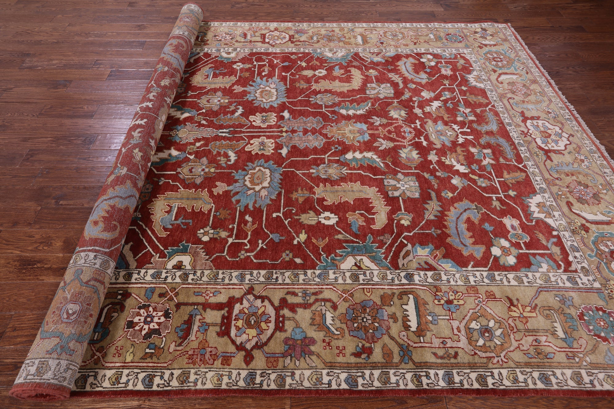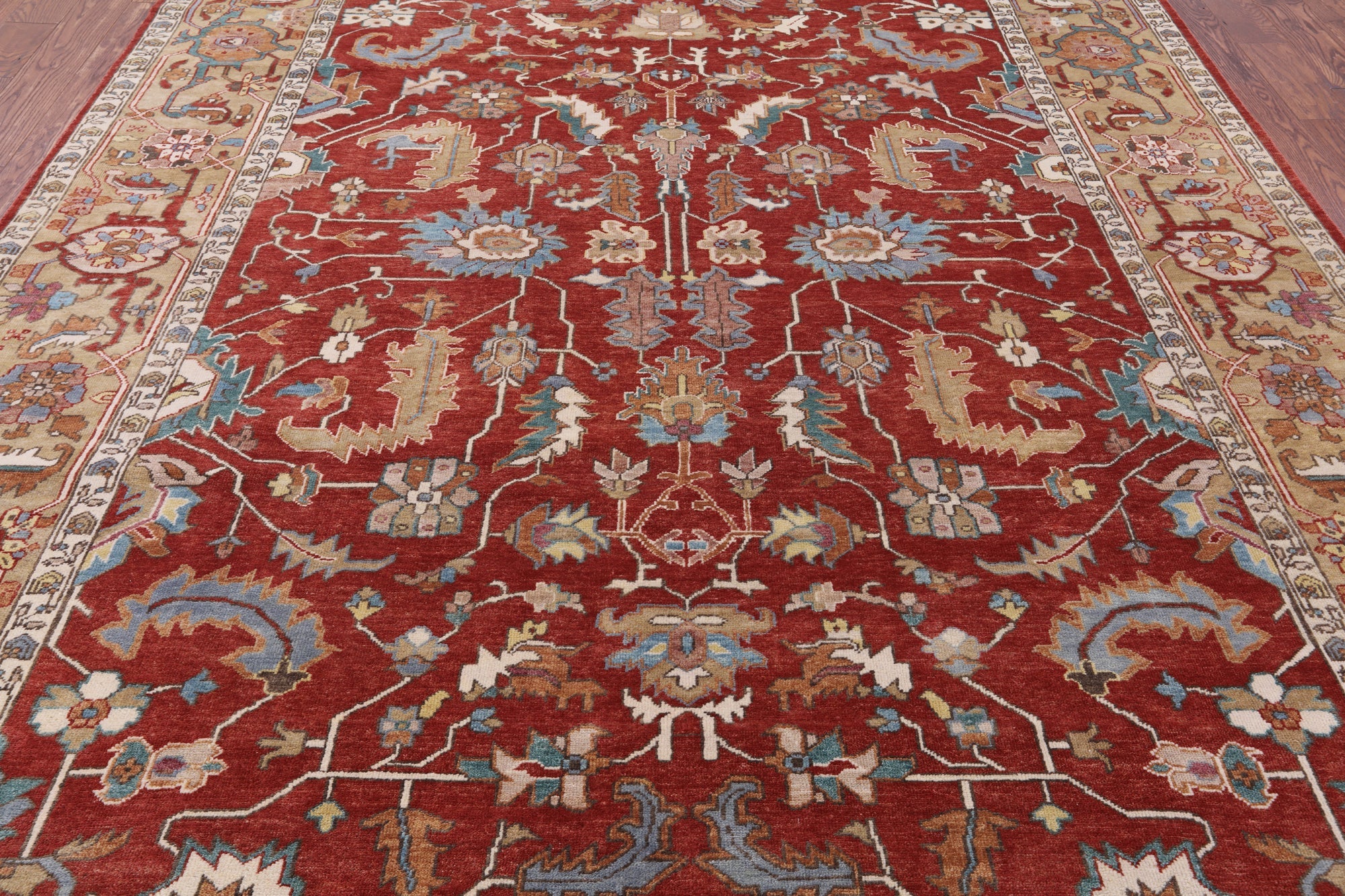 Heriz, Serapi rugs are well known for their bold and angular designs. Many being symmetric, they withhold boldly done geometric and floral-inspired shapes. These shapes are brought out with rich reds, blues, greens, and yellows contrasted against ivory. Heriz, Serapi rugs are very elegant and durable, perfect for a variety of different rooms and spaces within a home.