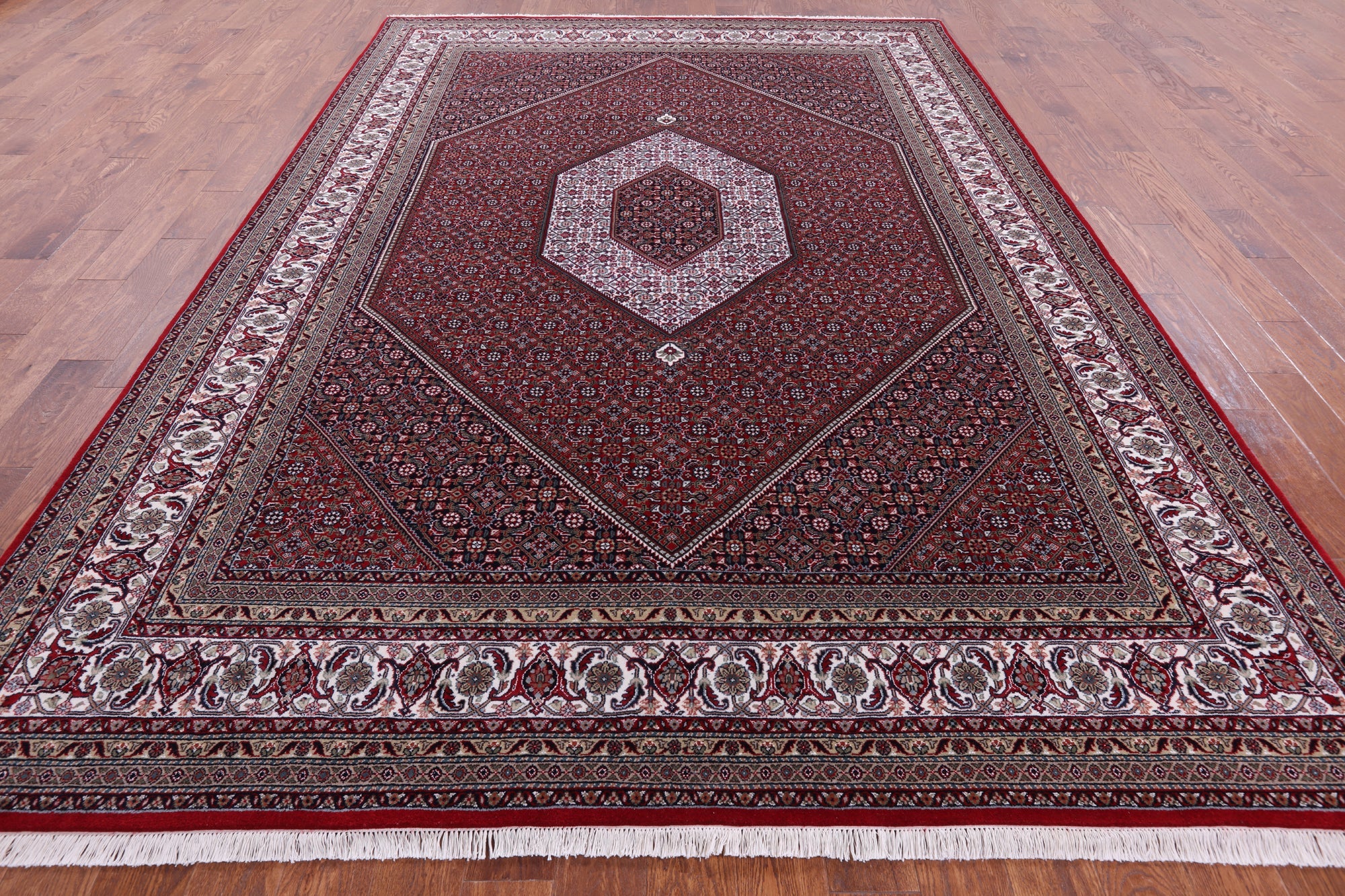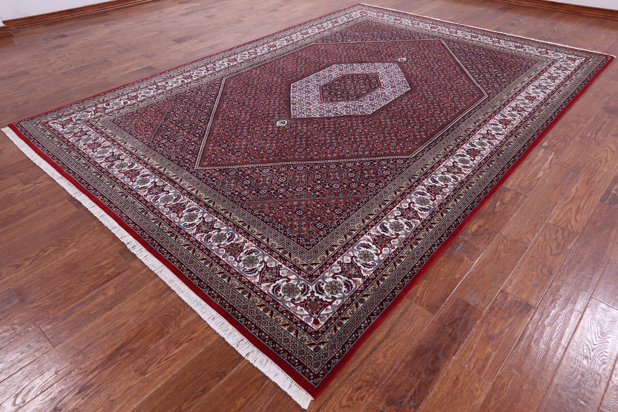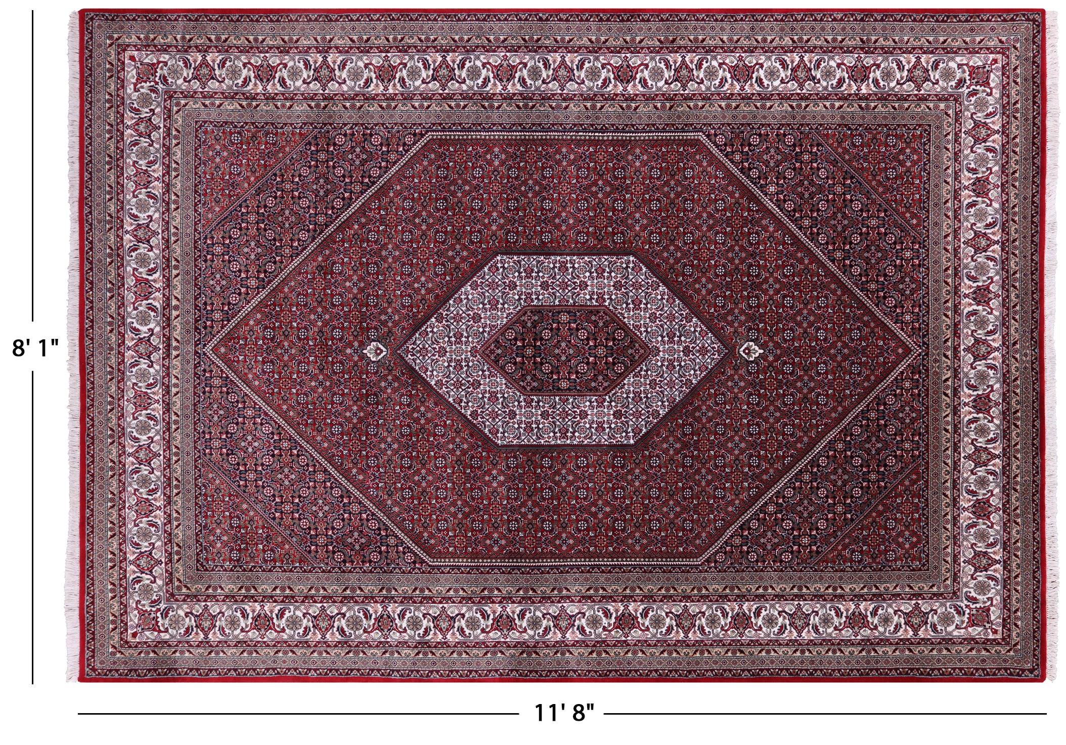 Red Fine Persian Bijar Handmade Wool & Silk Rug 8' 1" X 11' 8" - Q6717