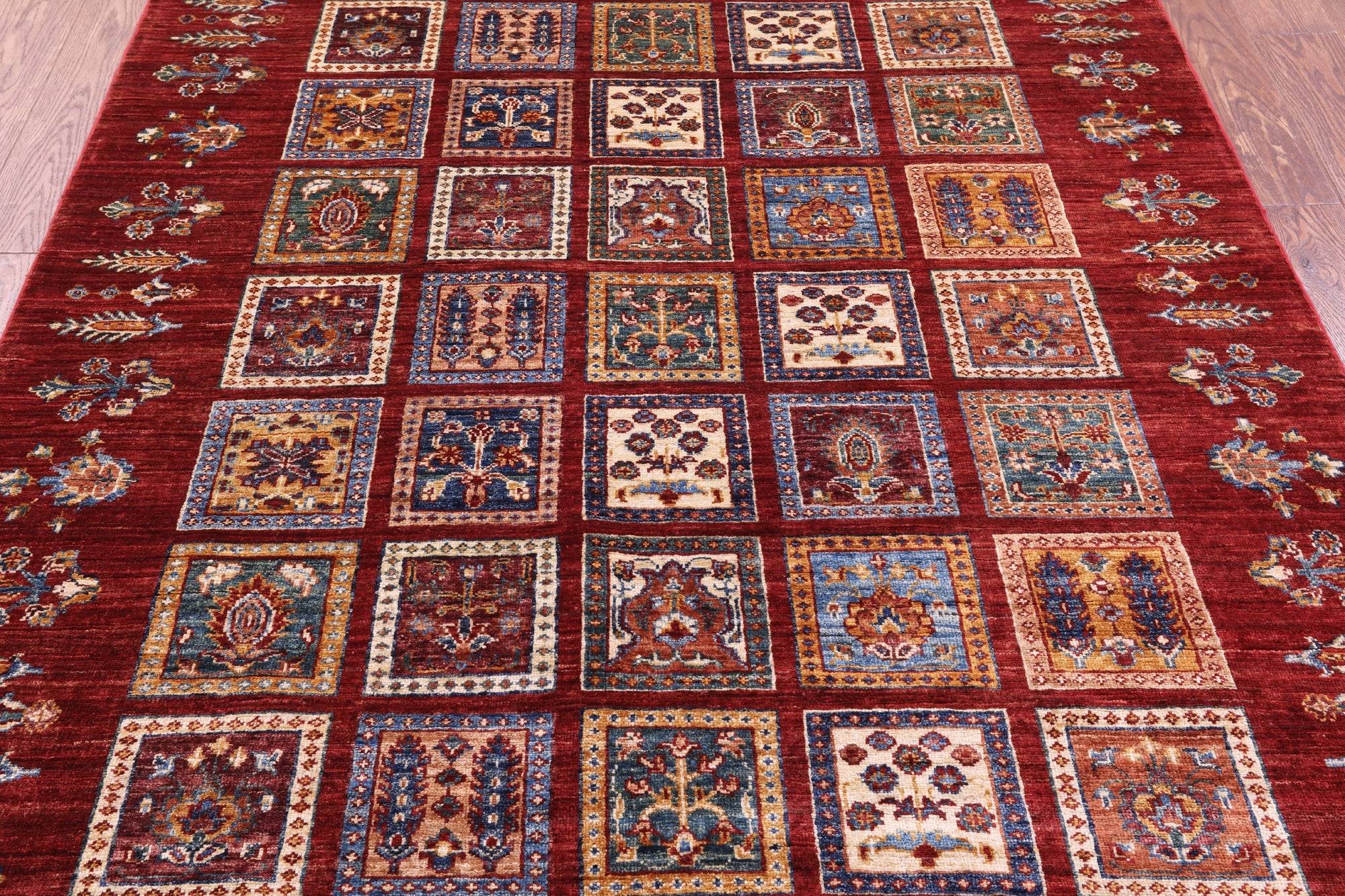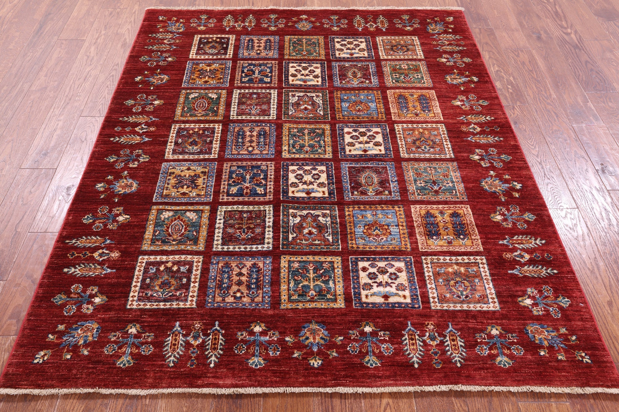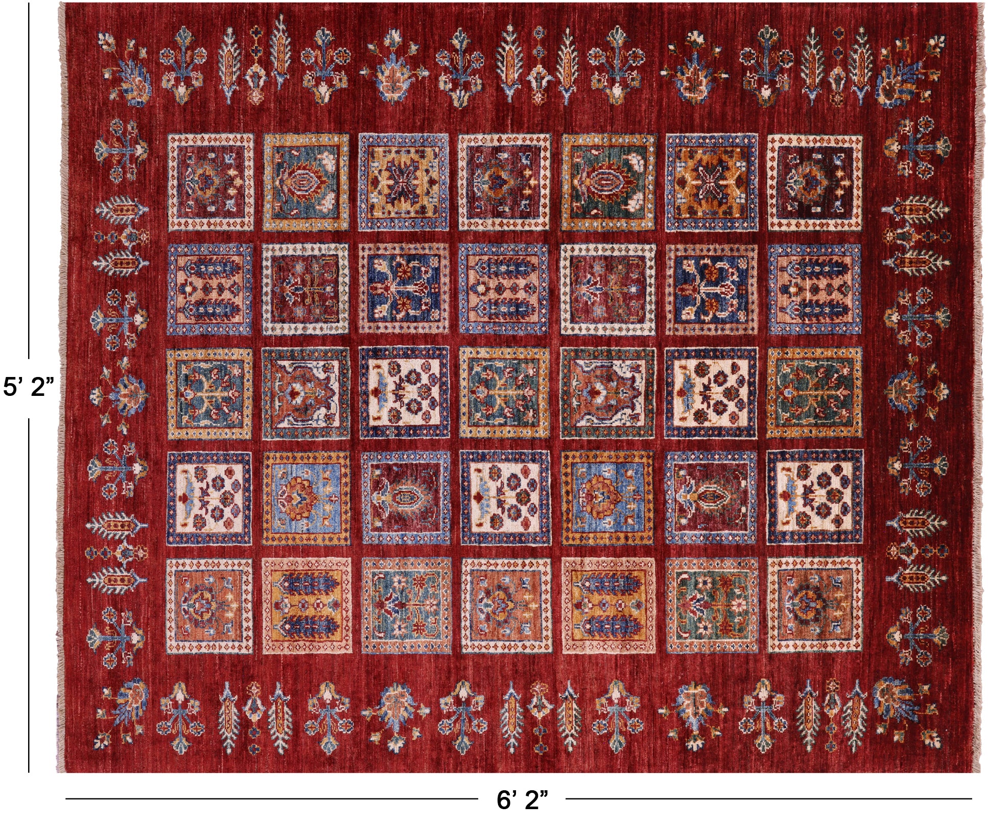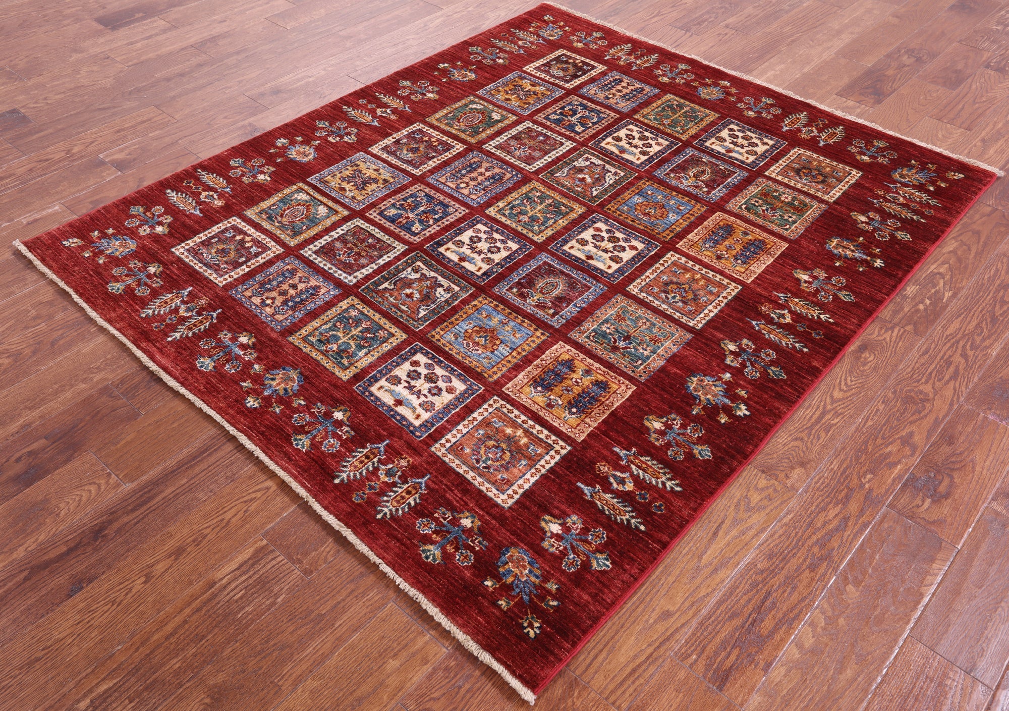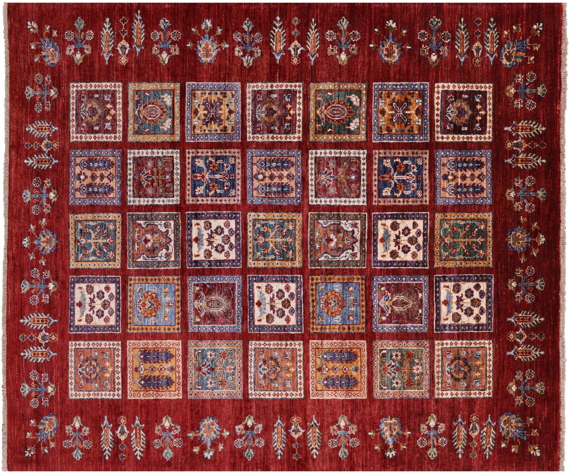 Red Hand-Knotted Garden Design Persian Wool Rug 5' 2" X 6' 2" - Q18332