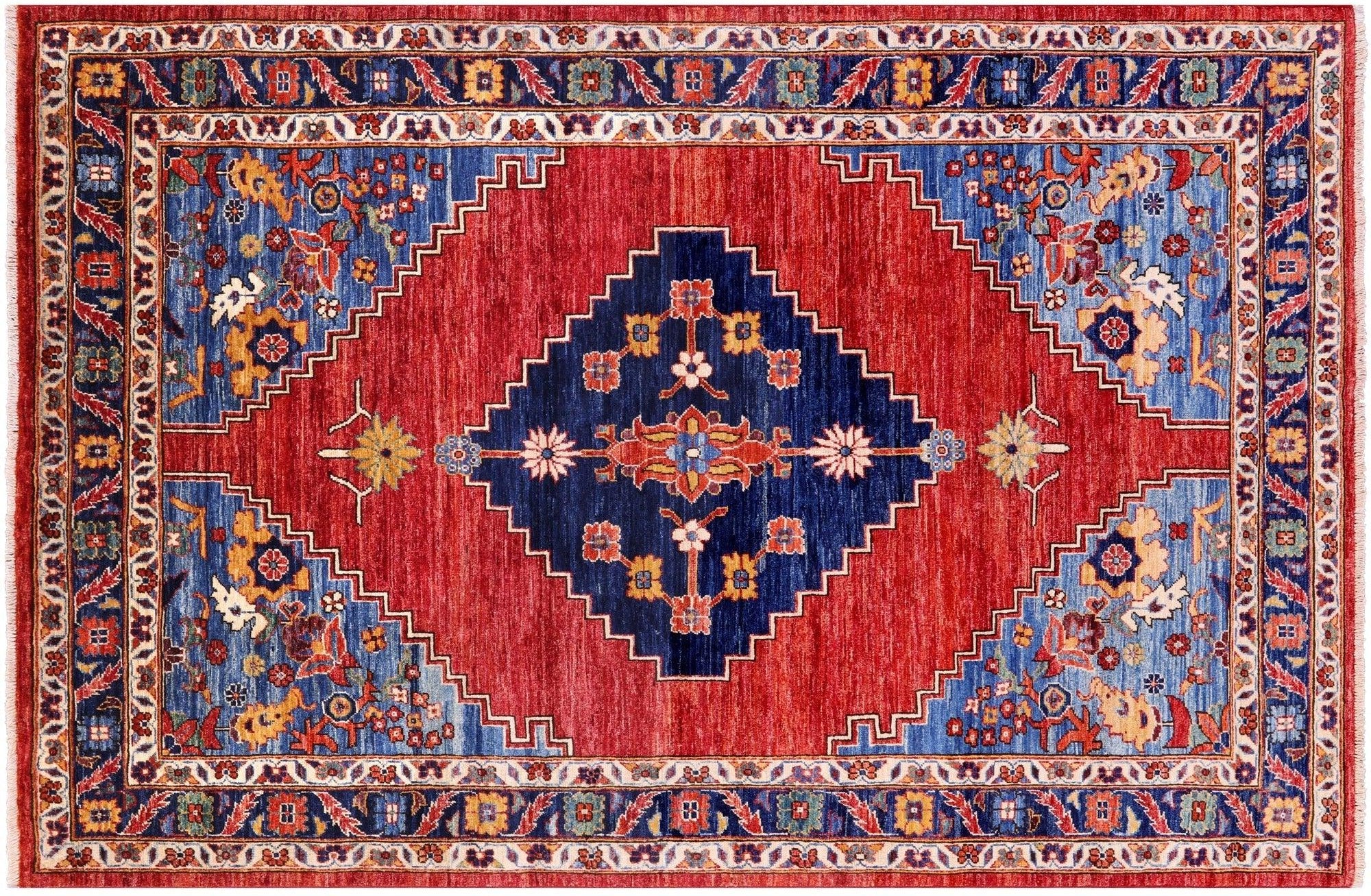 Red Hand Knotted Super Heriz Serapi Wool Rug 5' 9" X 8' 10" - Q16318