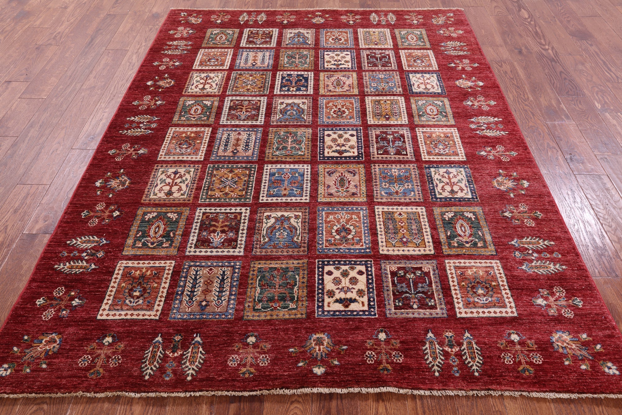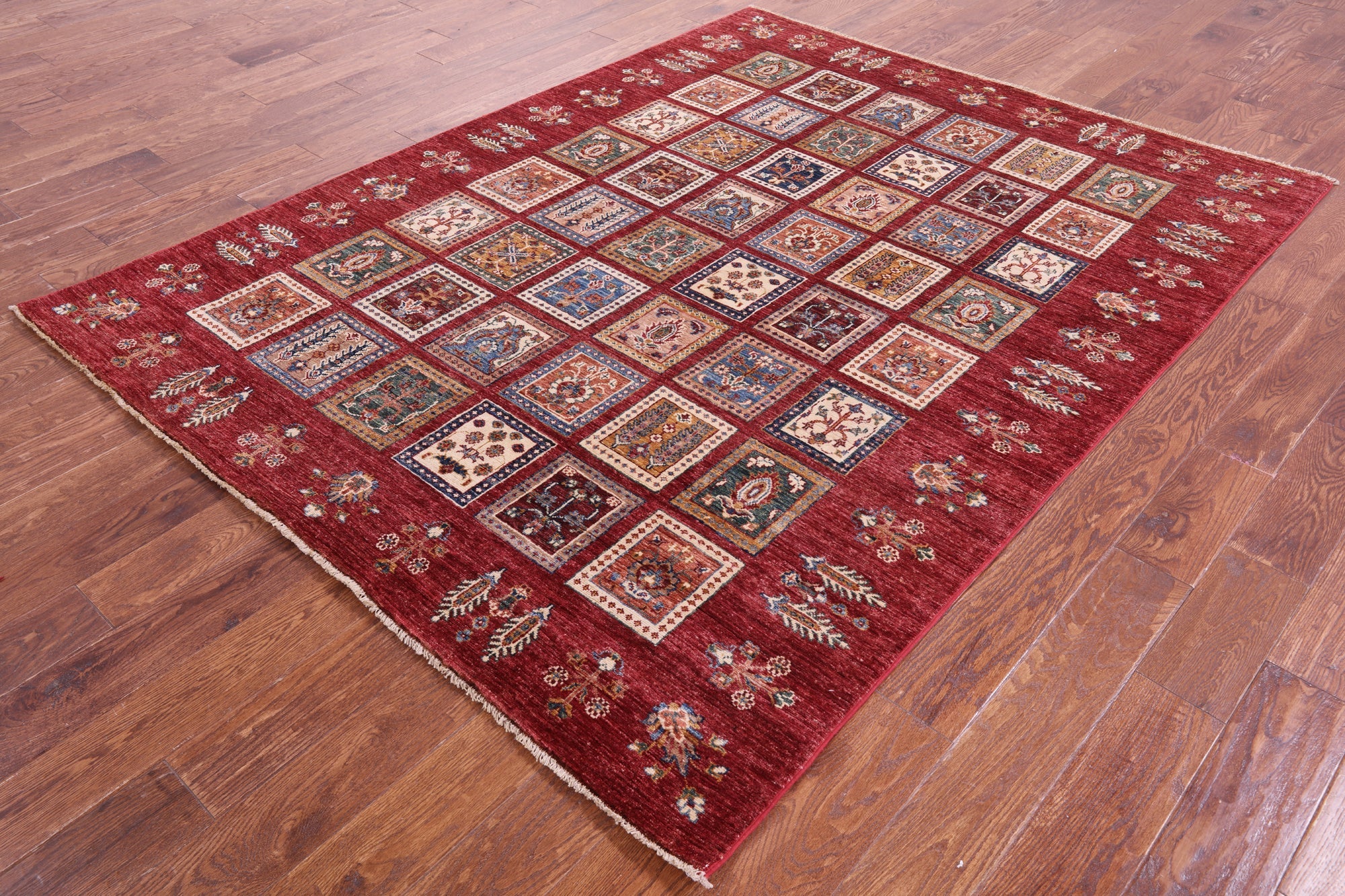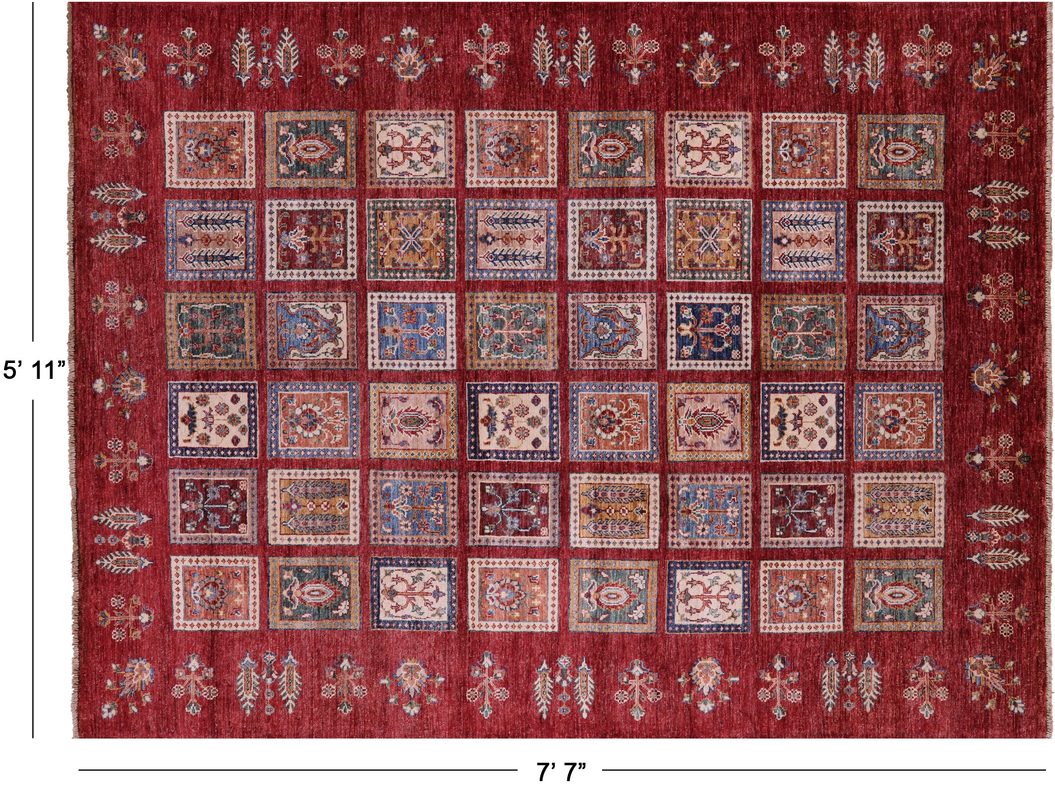 Red Handmade Persian Garden Design Rug 5' 11" X 7' 7" - Q18310