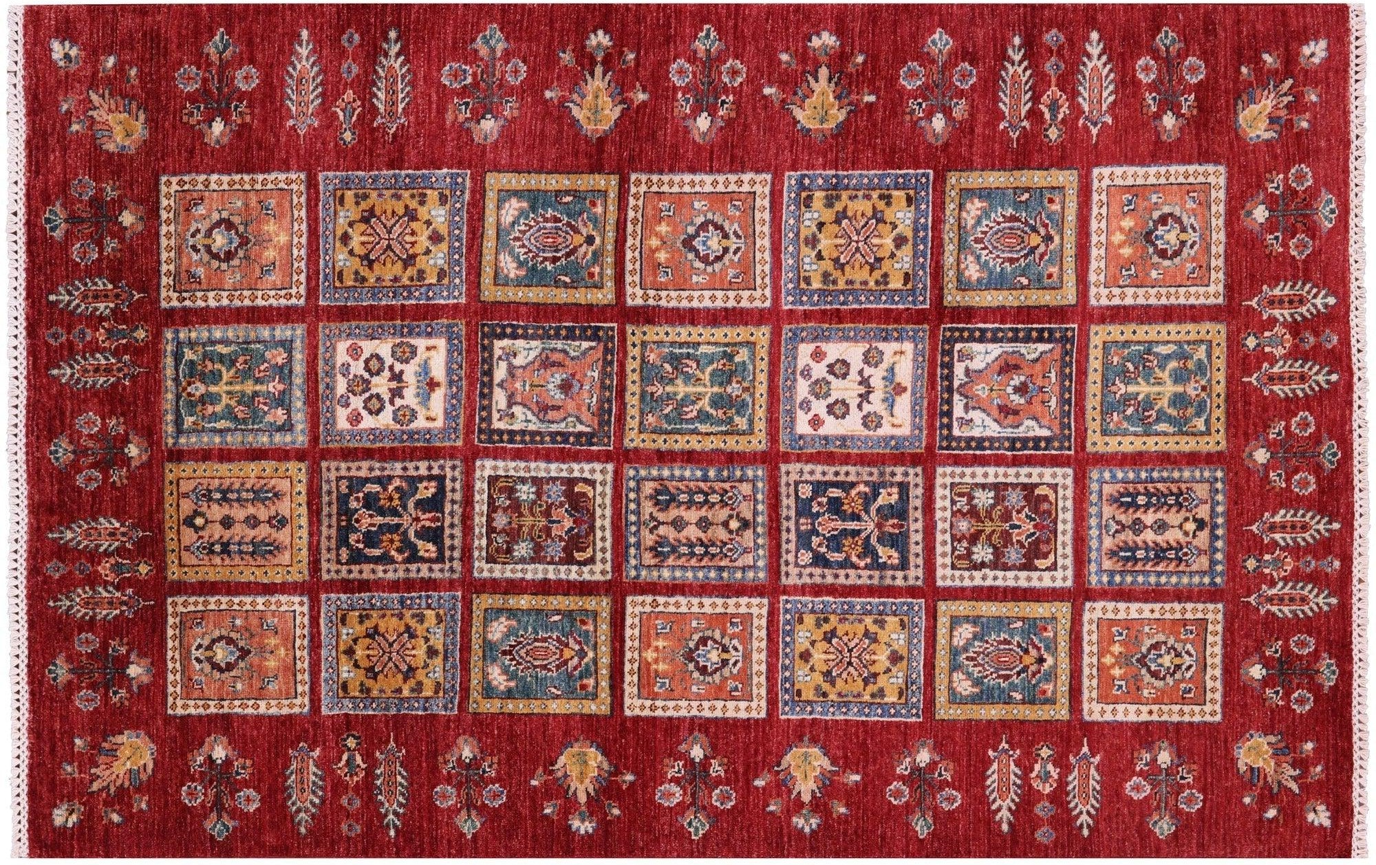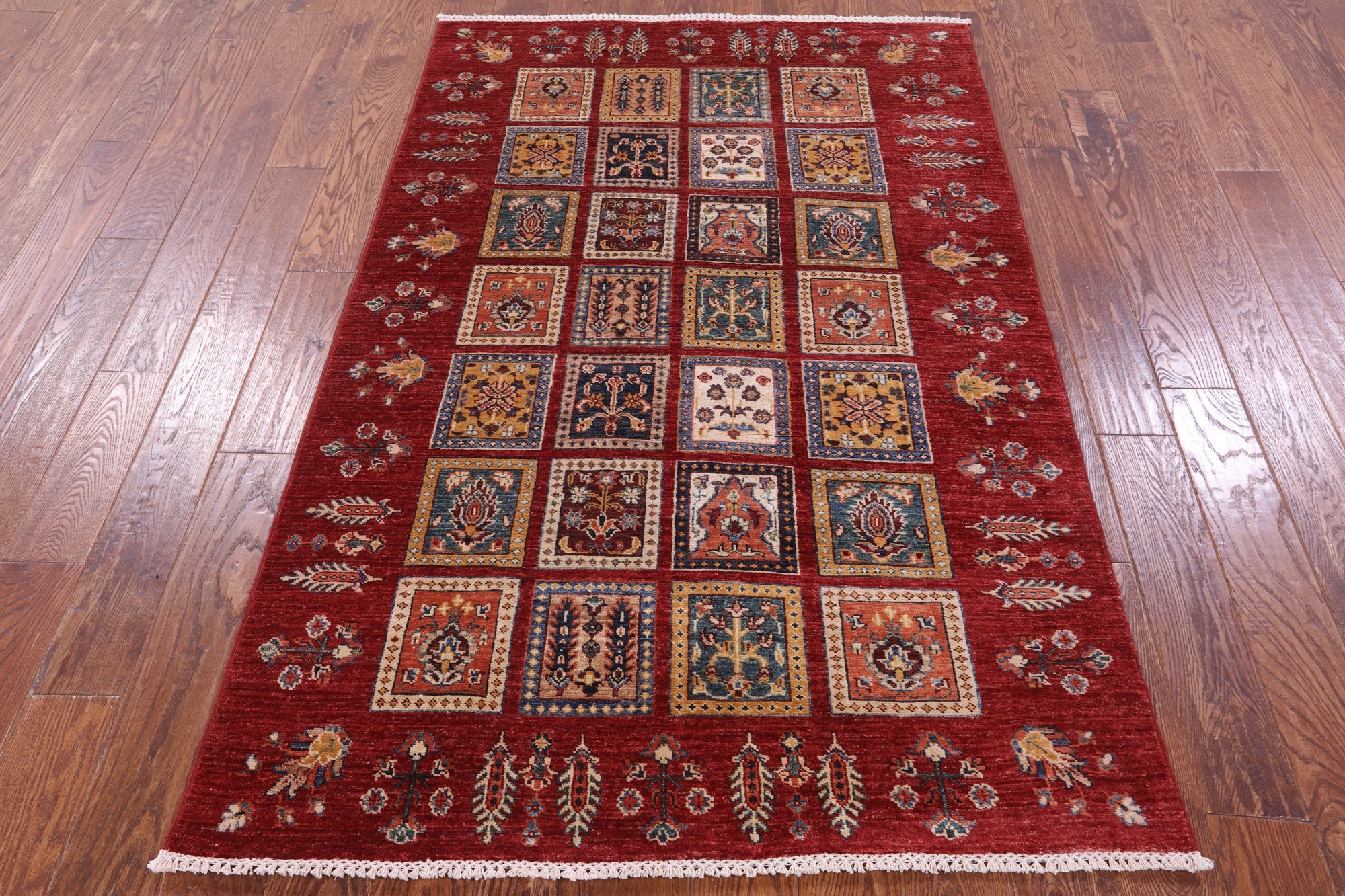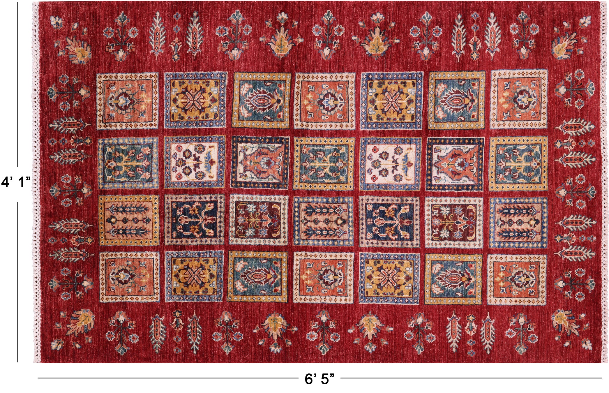 Red Handmade Persian Garden Design Rug 4' 1" X 6' 5" - Q18750