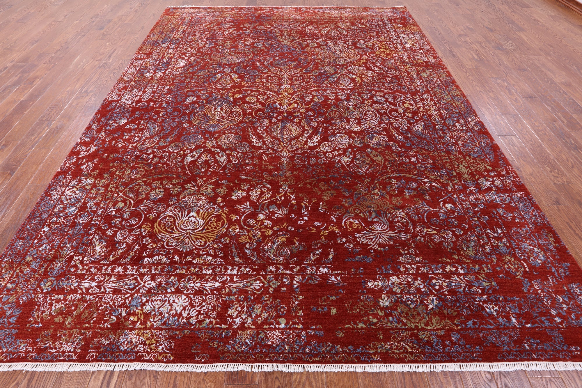 Red 9' 1" X 12' 2" Modern Hand Knotted Wool & Silk Rug - Q11353 is backordered and will ship as soon as it is back in stock.