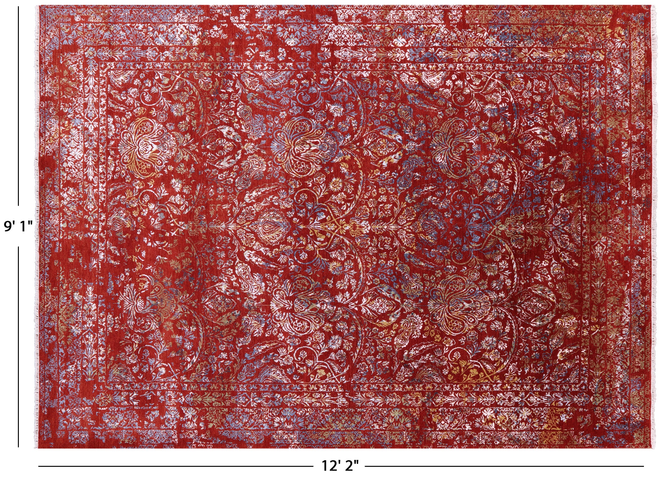 Red 9' 1" X 12' 2" Modern Hand Knotted Wool & Silk Rug - Q11353