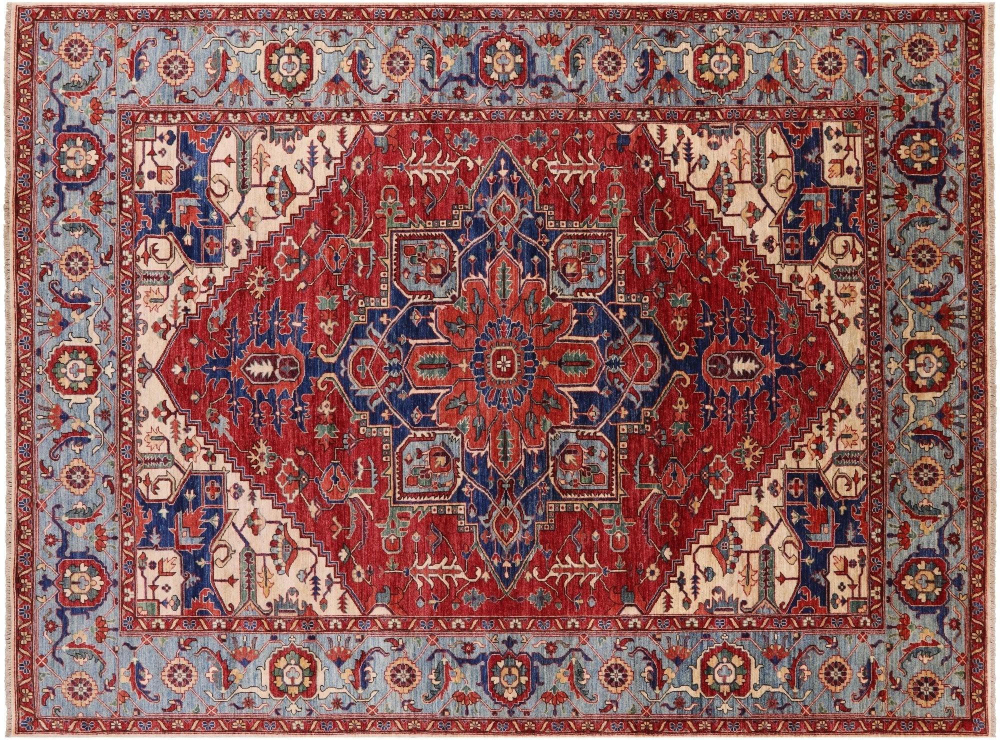 The nature-inspired color palette of Serapi/Heriz rugs gives them an antique look, which has historically sought after for many years. They commonly feature intricate medallions, followed by abstract florals and geometric designs. What makes the Serapi/Heriz so desirable, is their high endurance and longevity under high traffic. Serapi/Heriz rugs are constructed by a labor intensive hand knotting process, made from thick plush piles of wool.