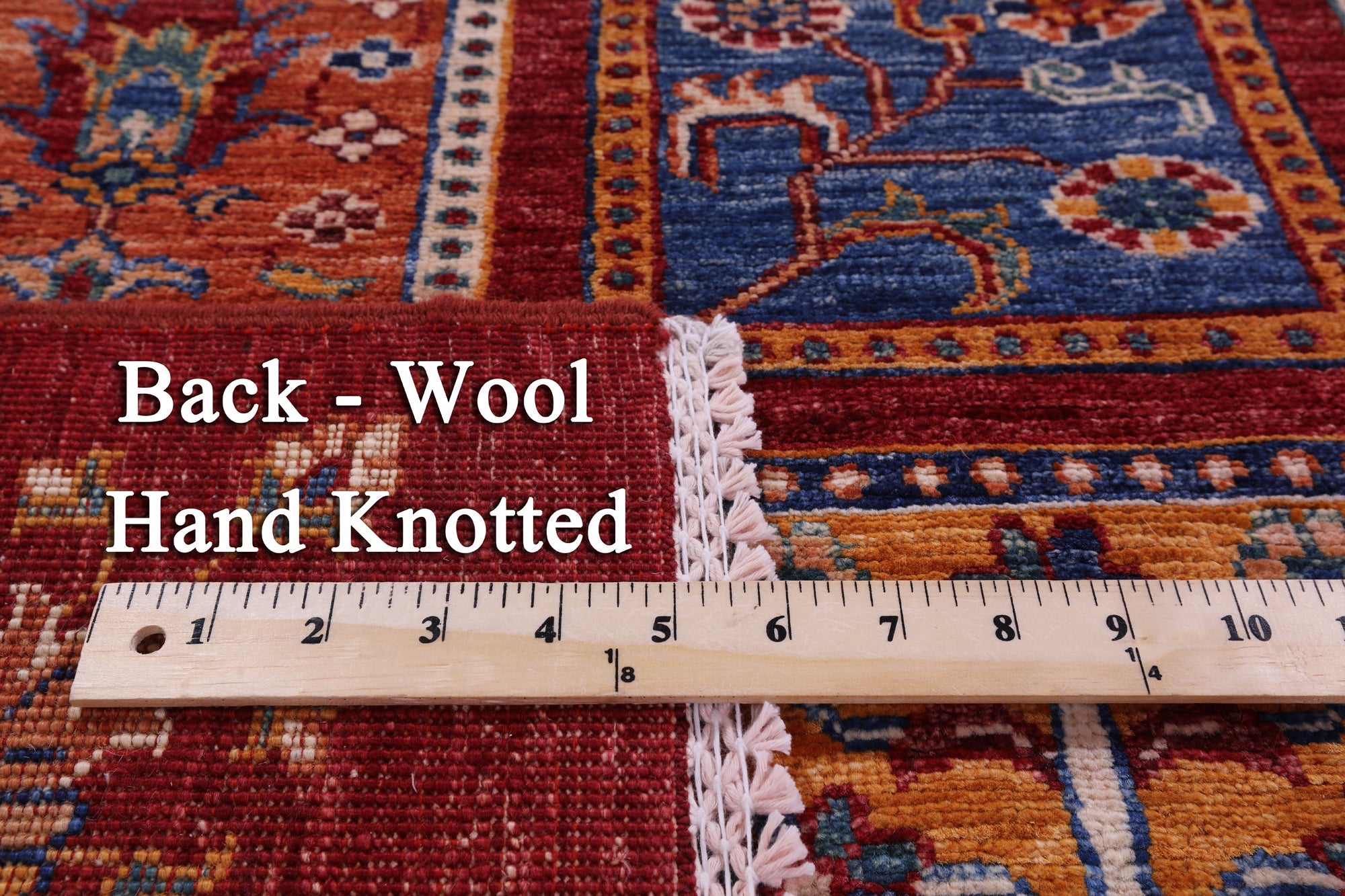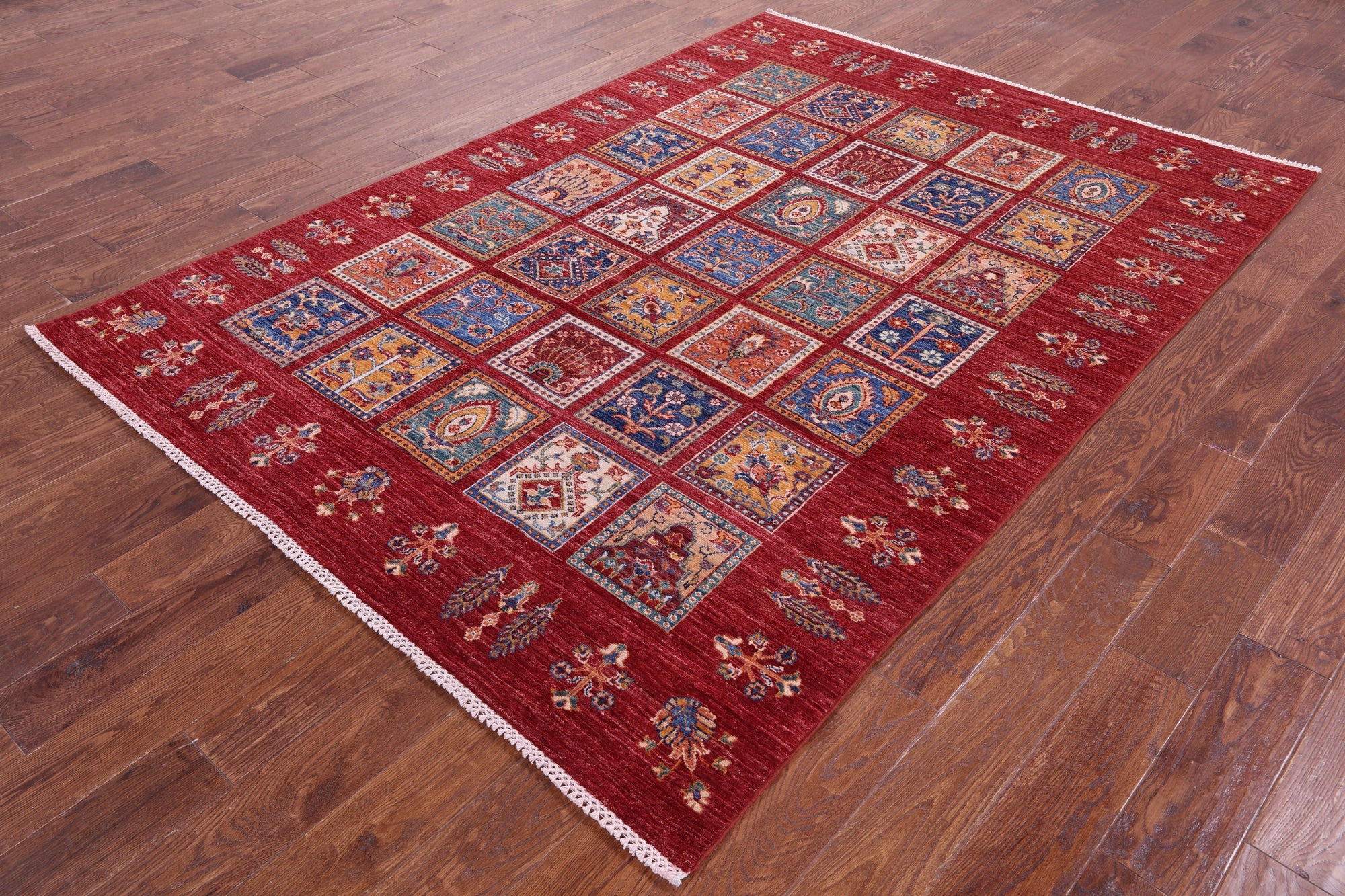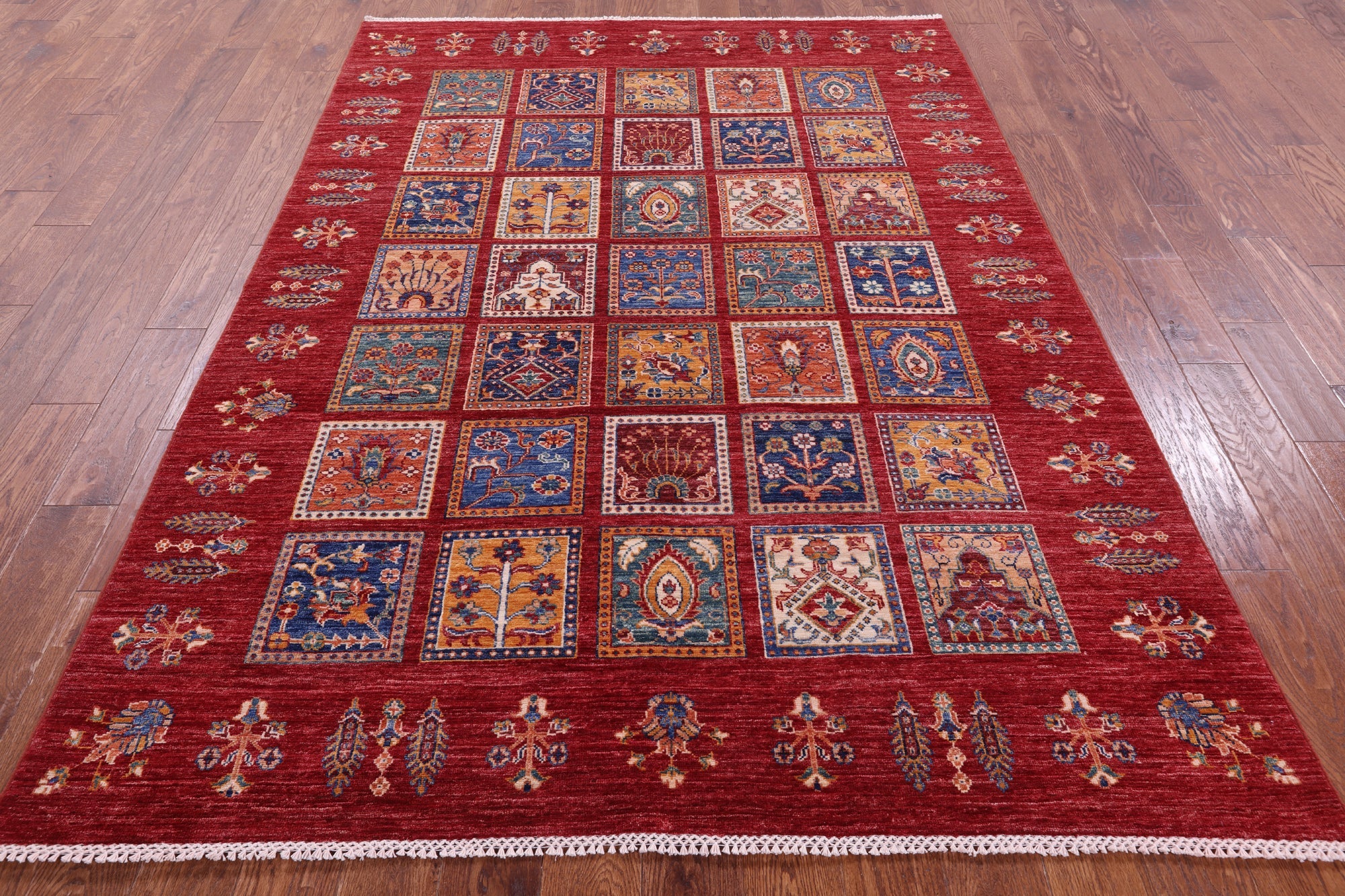 Red 5' 9" X 8' 0" Persian Garden Design Hand-Knotted Wool Rug - Q18548