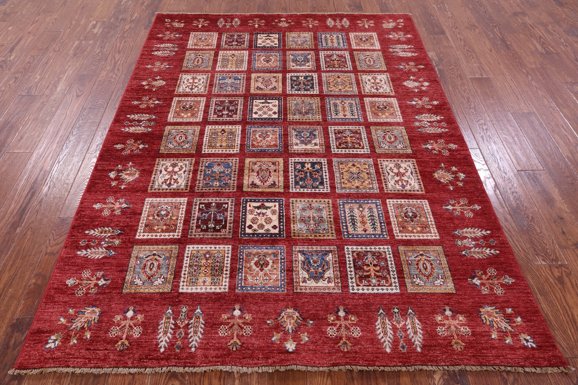 Red 5' 11" X 7' 9" Persian Garden Design Handmade Wool Rug - Q18305 is backordered and will ship as soon as it is back in stock.