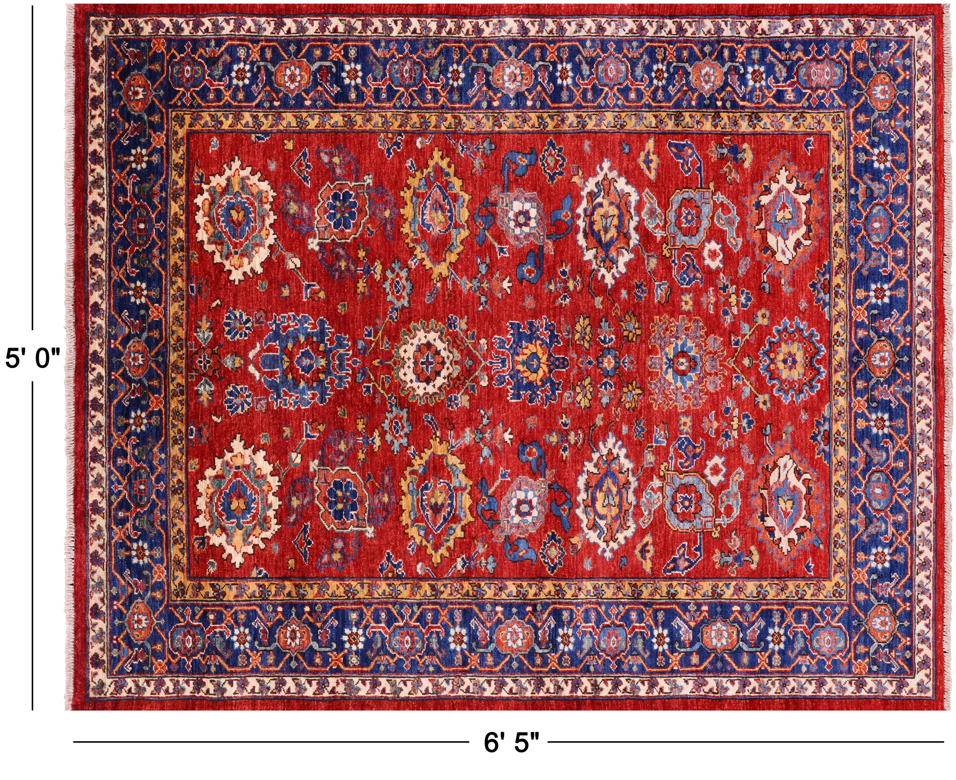 Red Persian Heriz Serapi Hand-Knotted Rug 5' 0" X 6' 5" - Q23385 is backordered and will ship as soon as it is back in stock.