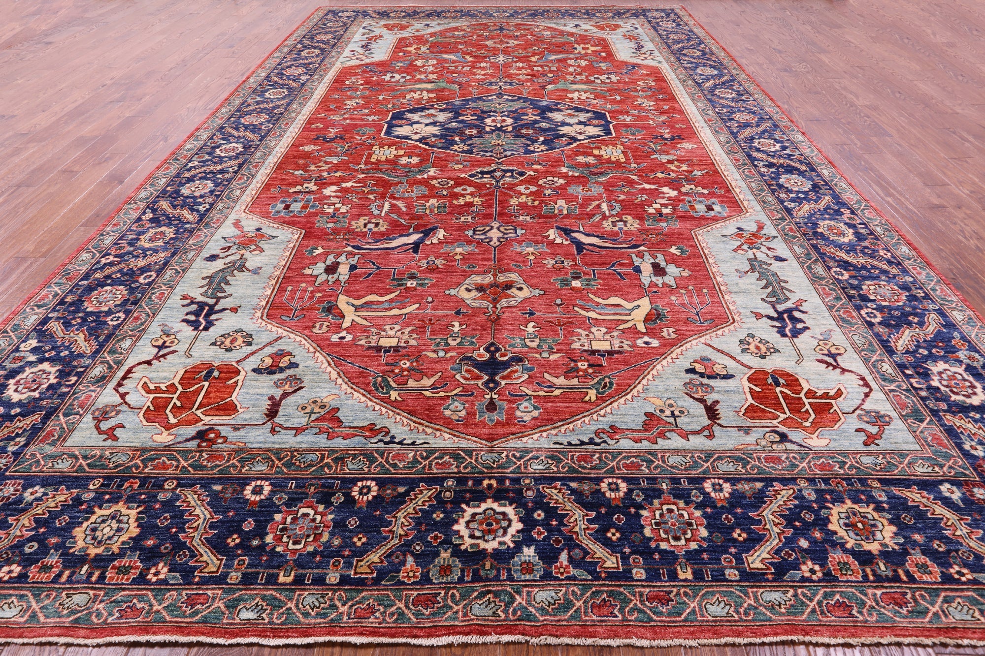Red Persian Heriz Serapi Handmade Rug 10' 9" X 17' 2" - Q22800