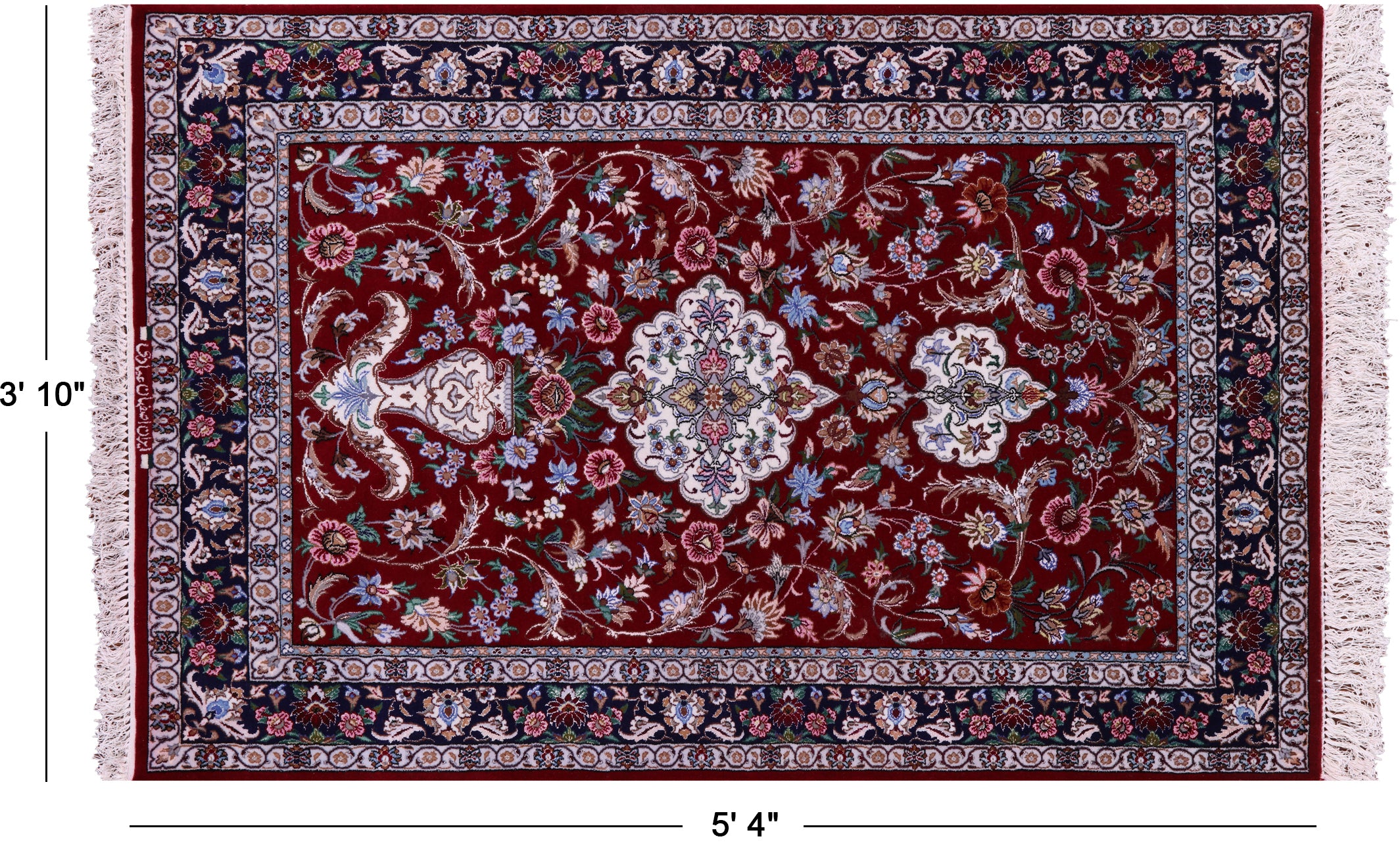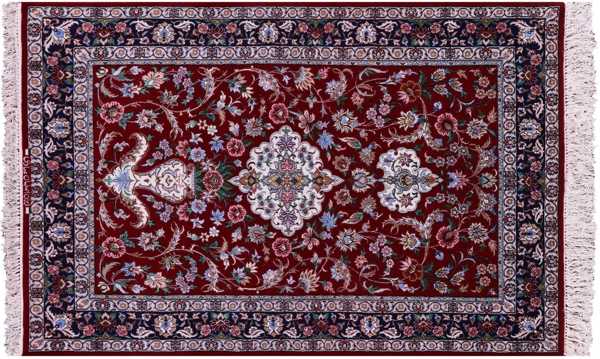 Red 3' 10" X 5' 4" Persian Isfahan Signed Wool & Silk Hand Knotted Rug - SA2753 is backordered and will ship as soon as it is back in stock.