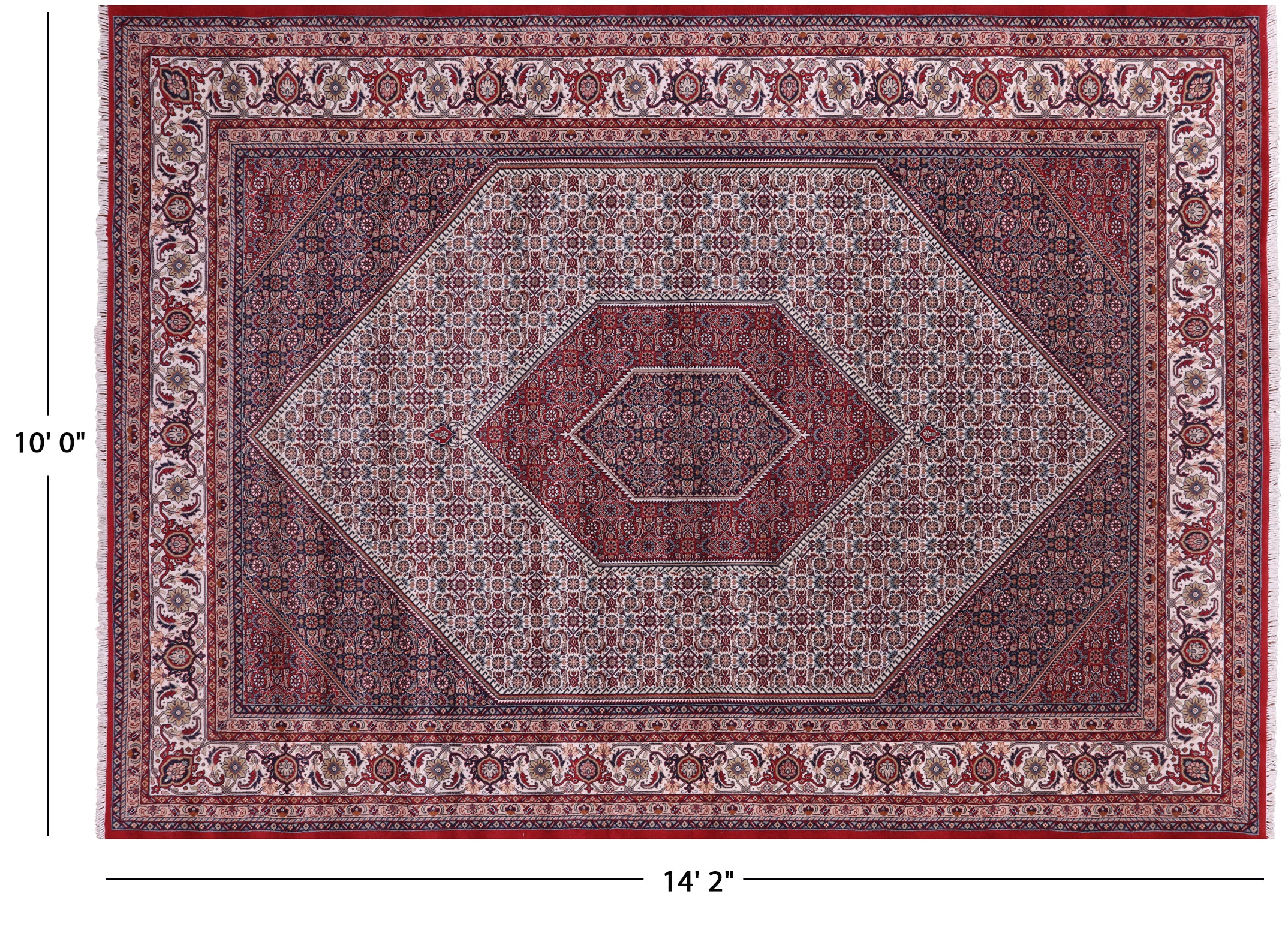 Red 10' 0" X 14' 2" Persian Super Bijar Hand Knotted Wool Rug - Q21119