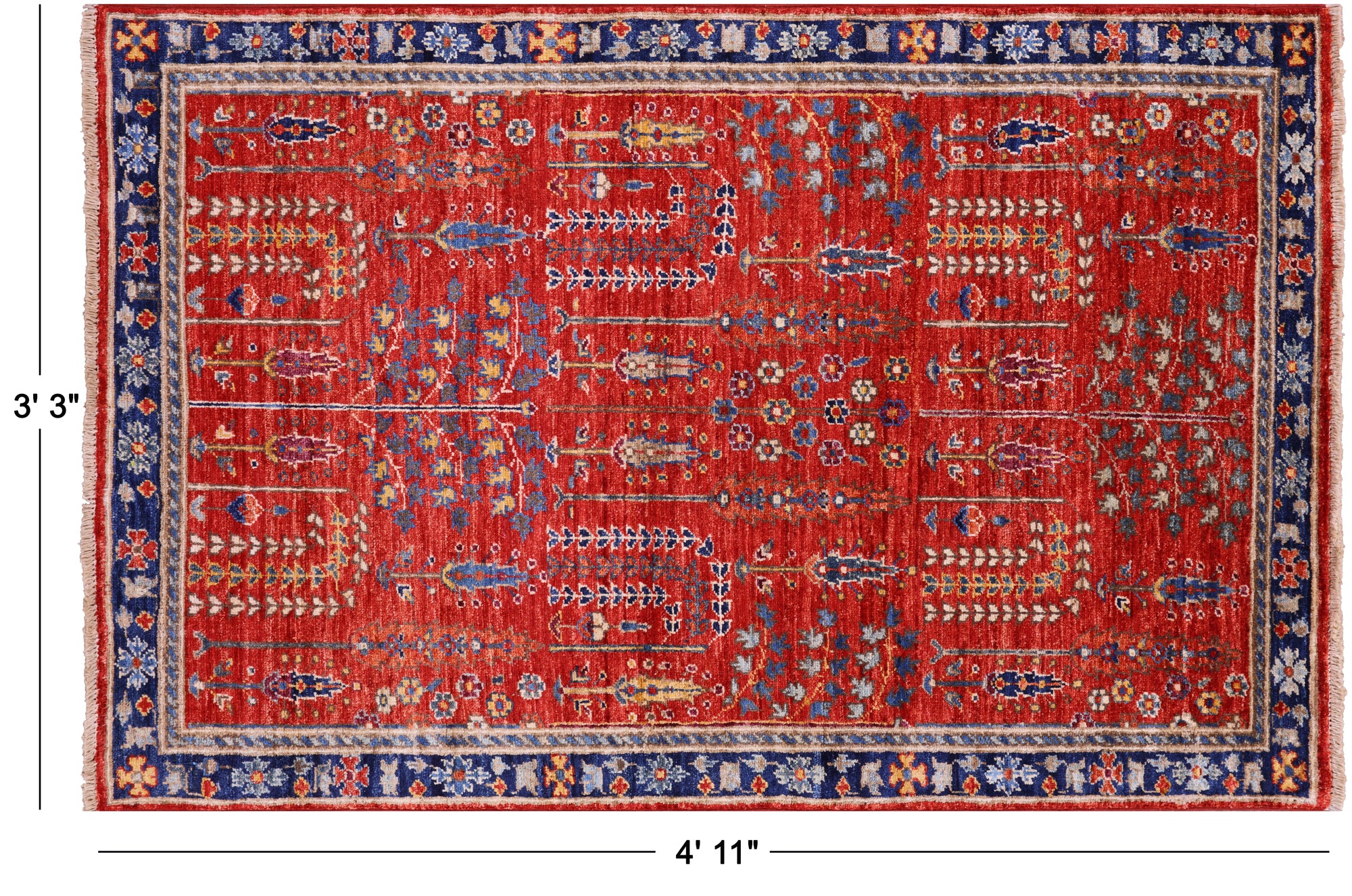 Red 3' 3" X 4' 11" Persian Ziegler Hand Knotted Wool Rug - Q22961