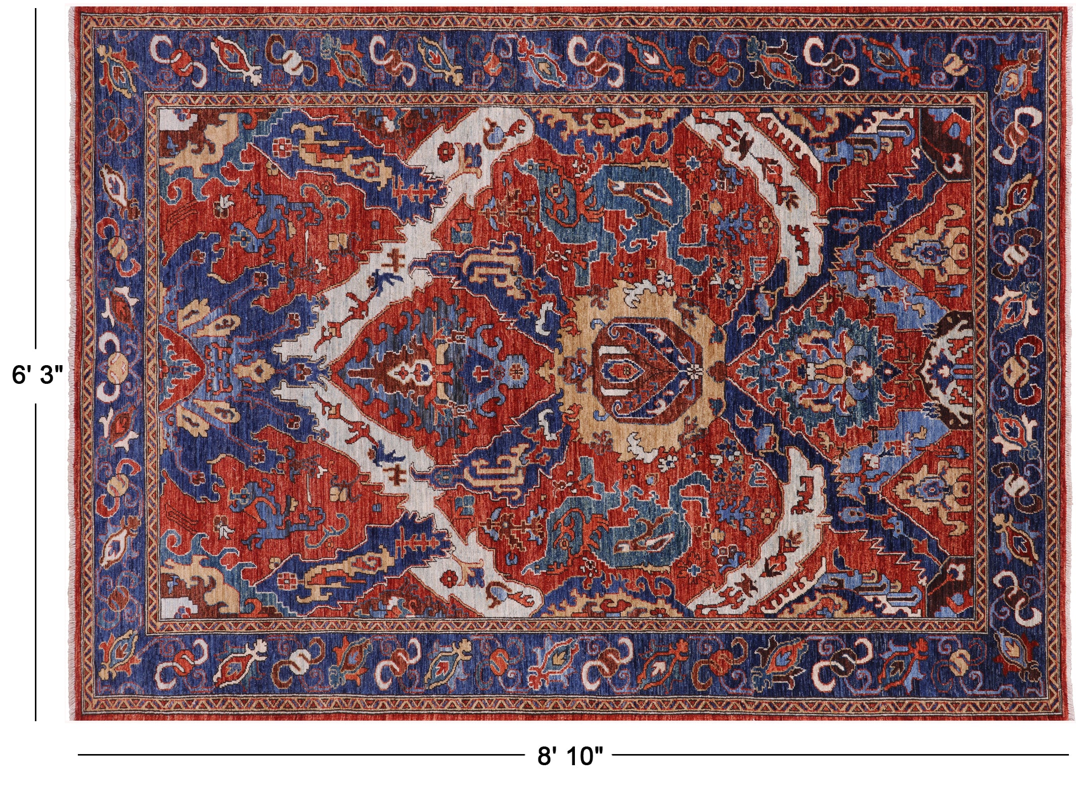 Red 6' 3" X 8' 10" Super Heriz Serapi Hand Knotted Rug - Q16135