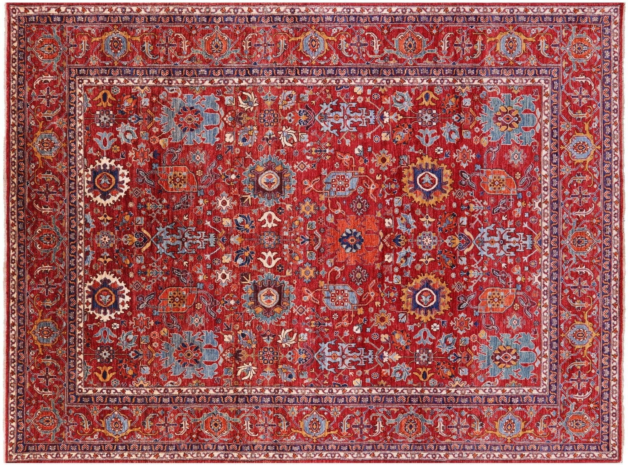 Red 8' 10" X 12' 1" Super Heriz Serapi Hand-Knotted Rug - Q20387