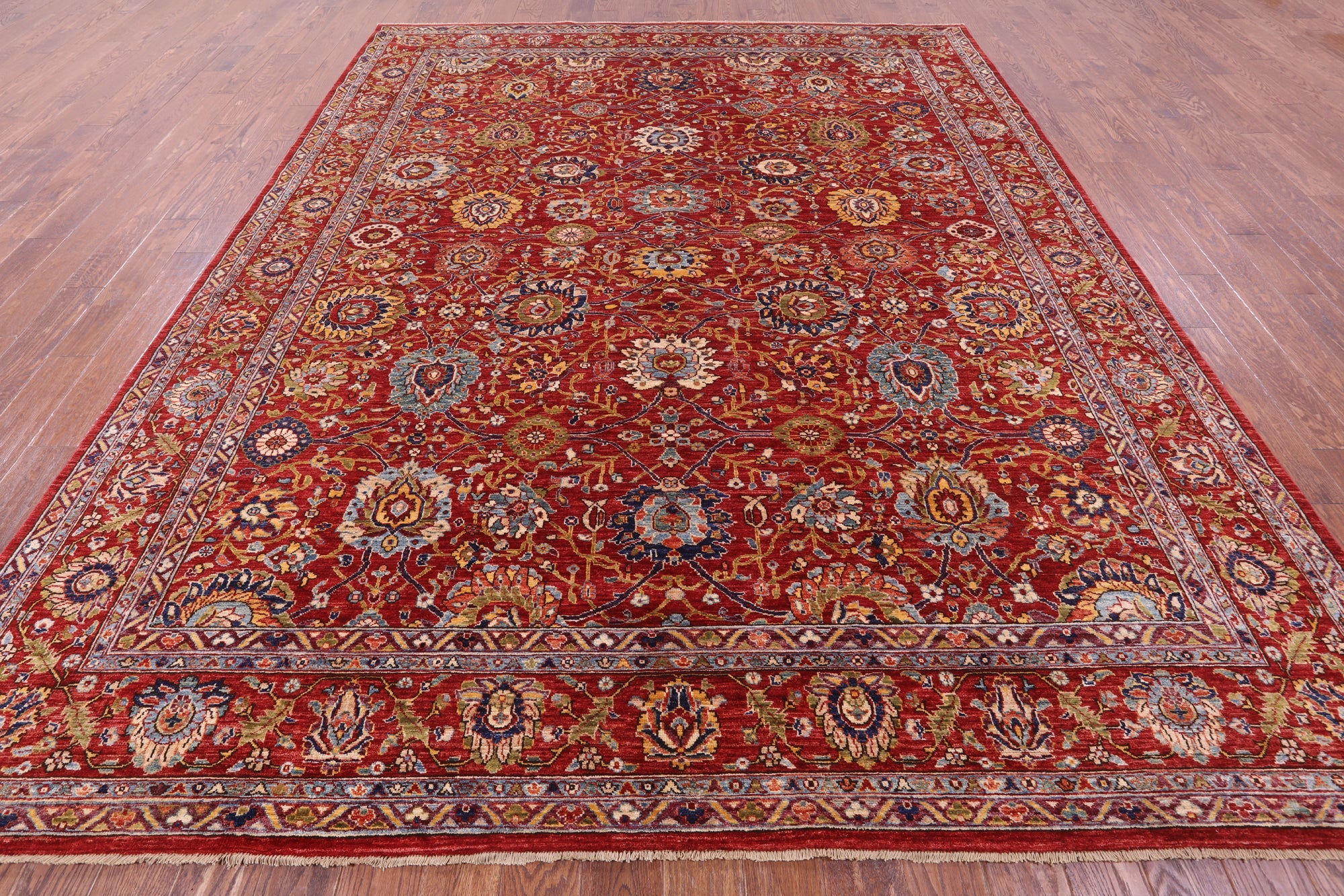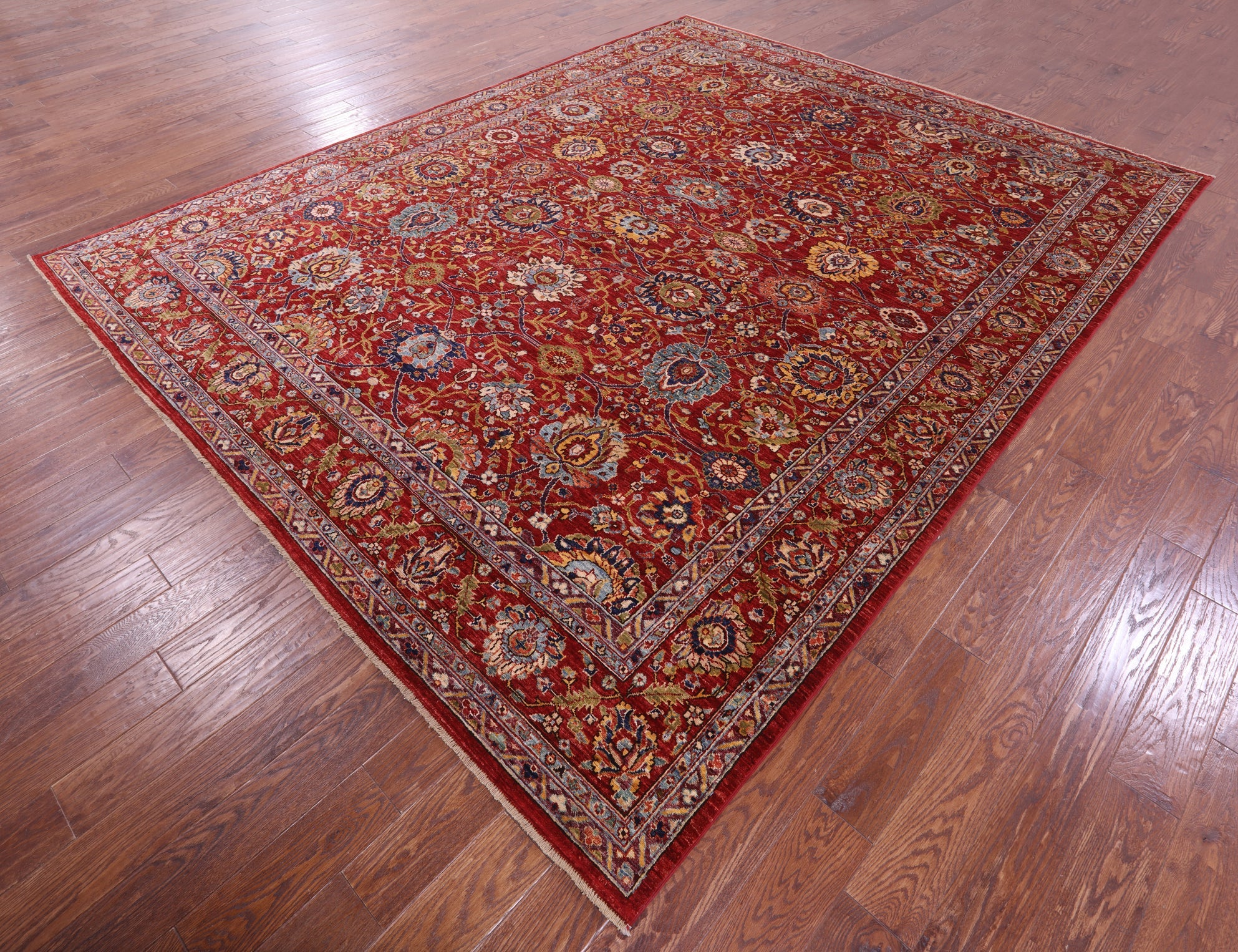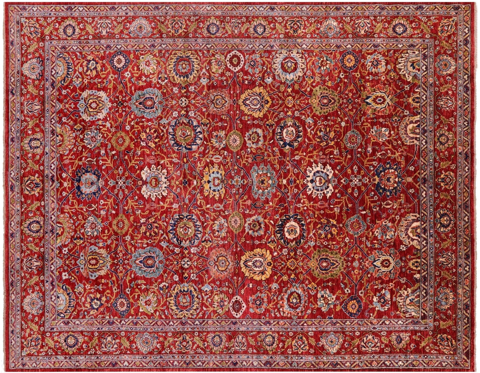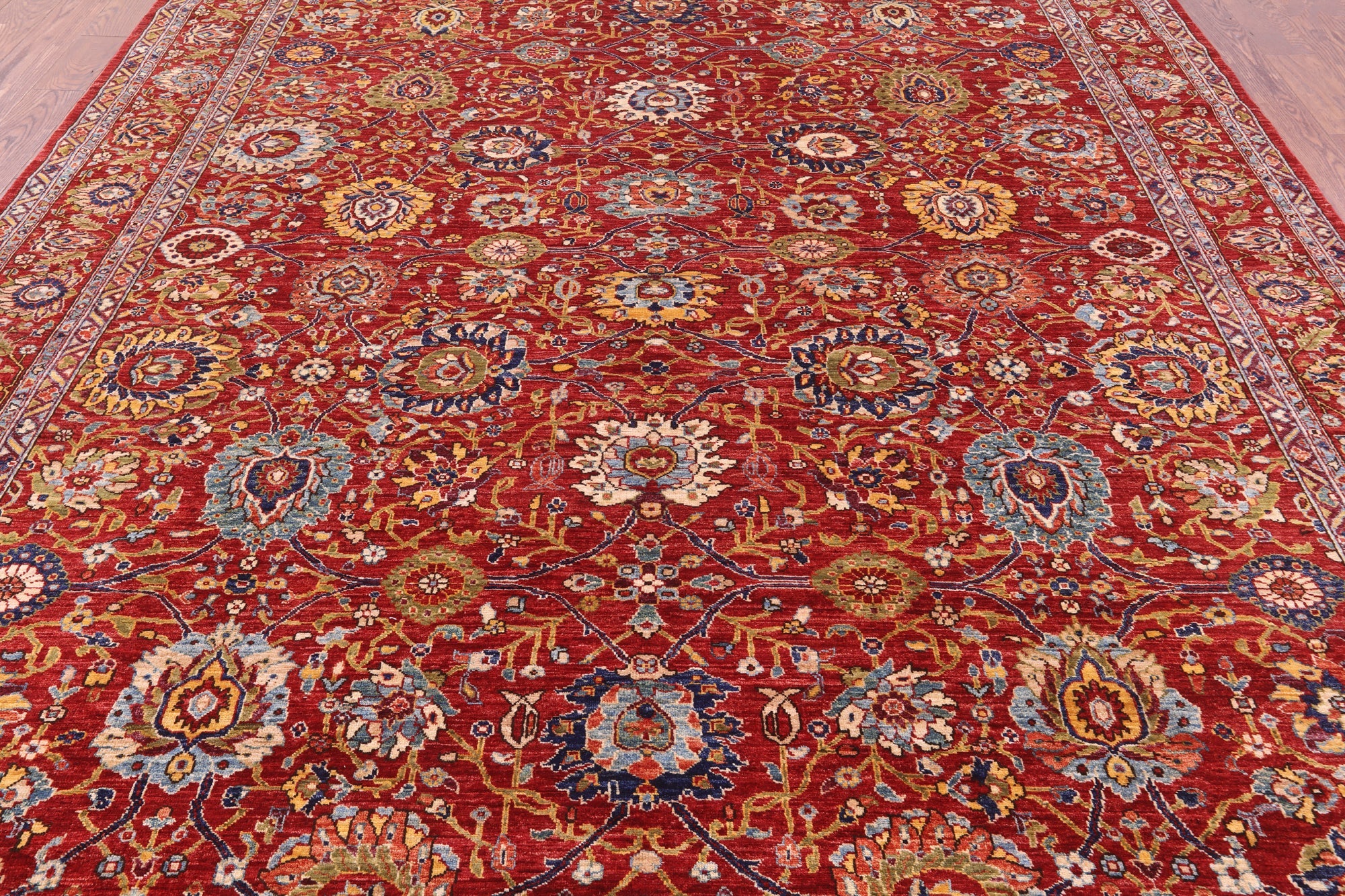 Red Super Heriz Serapi Hand-Knotted Wool Rug 9' 3" X 11' 7" - Q20747