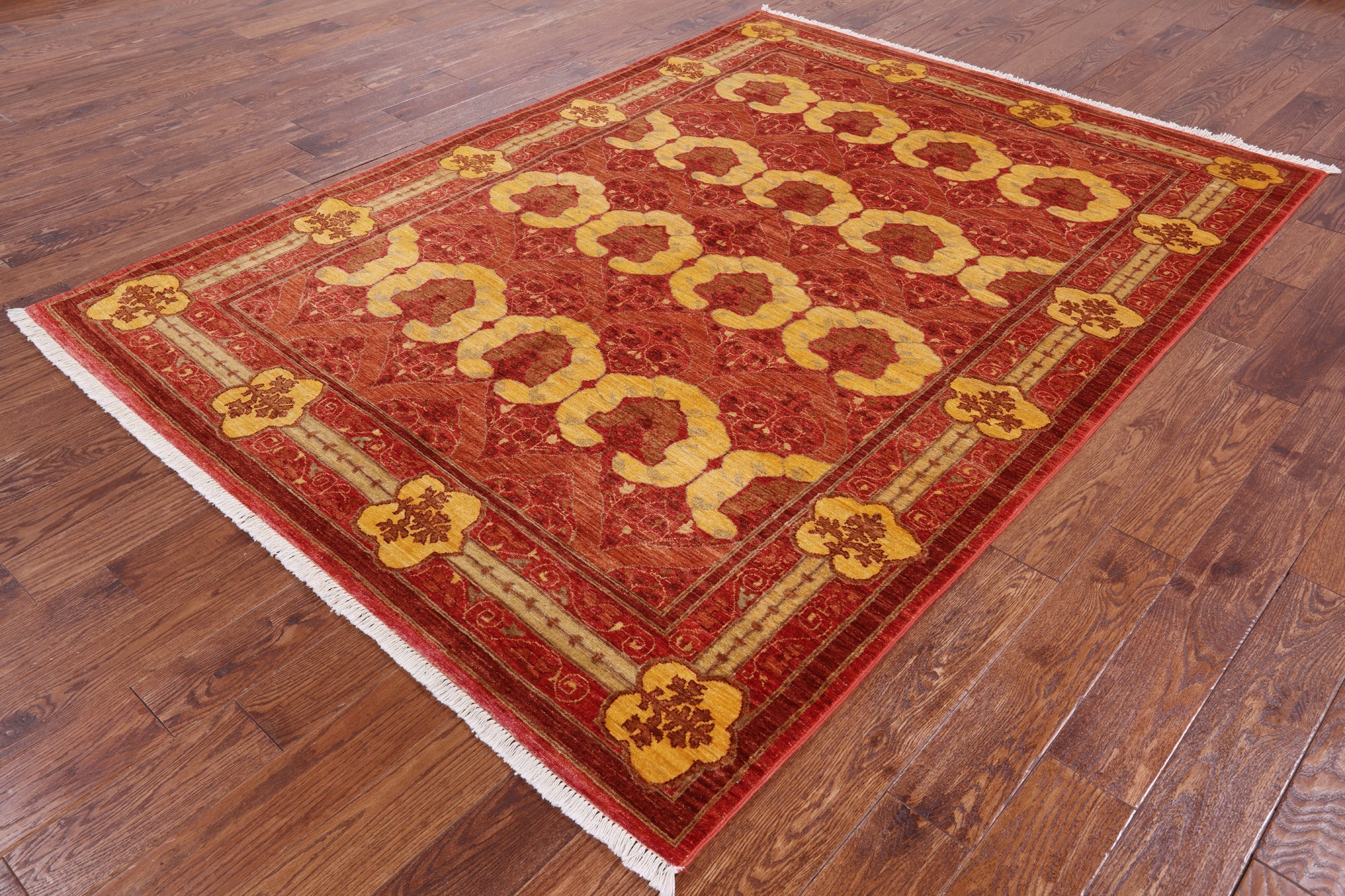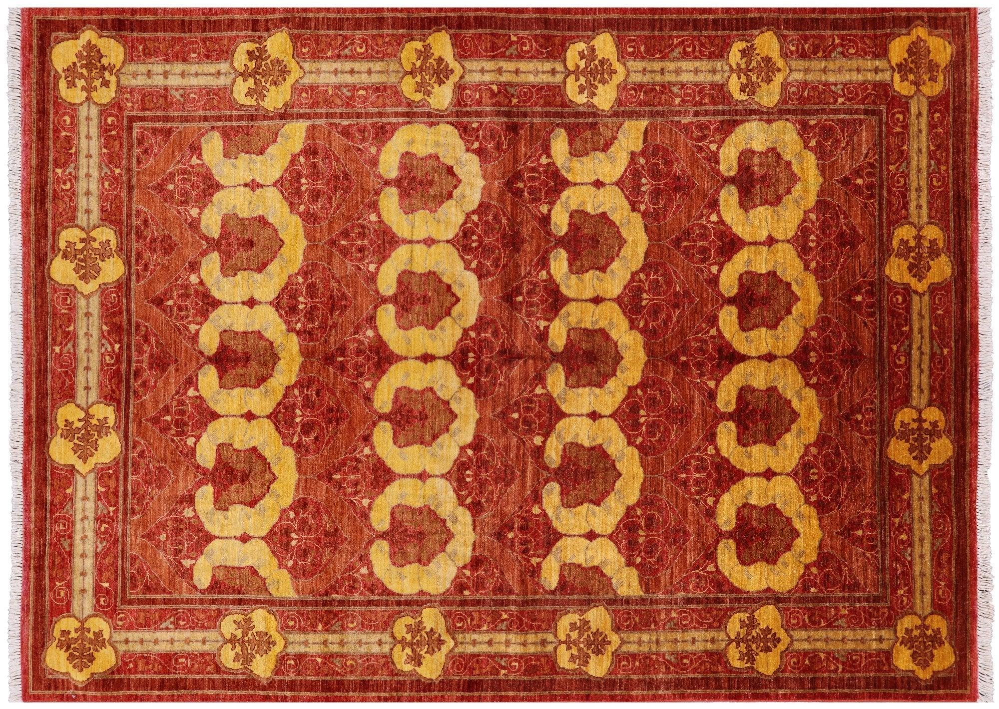 Red 6' 3" X 8' 6" William Morris Hand Knotted Wool Area Rug - Q1881