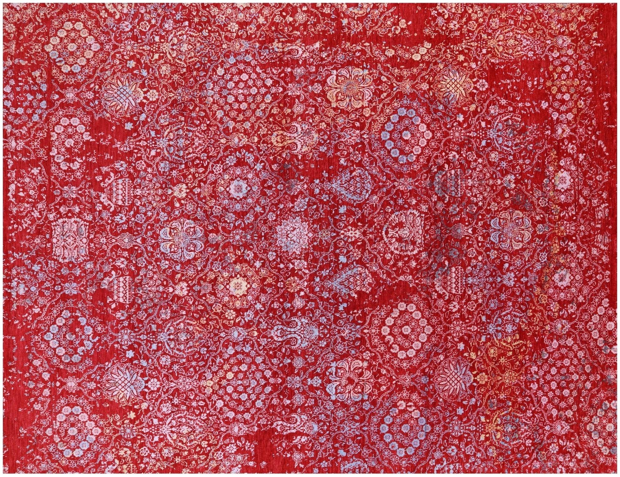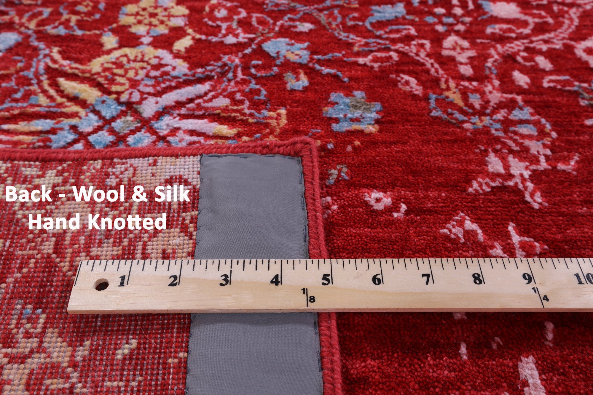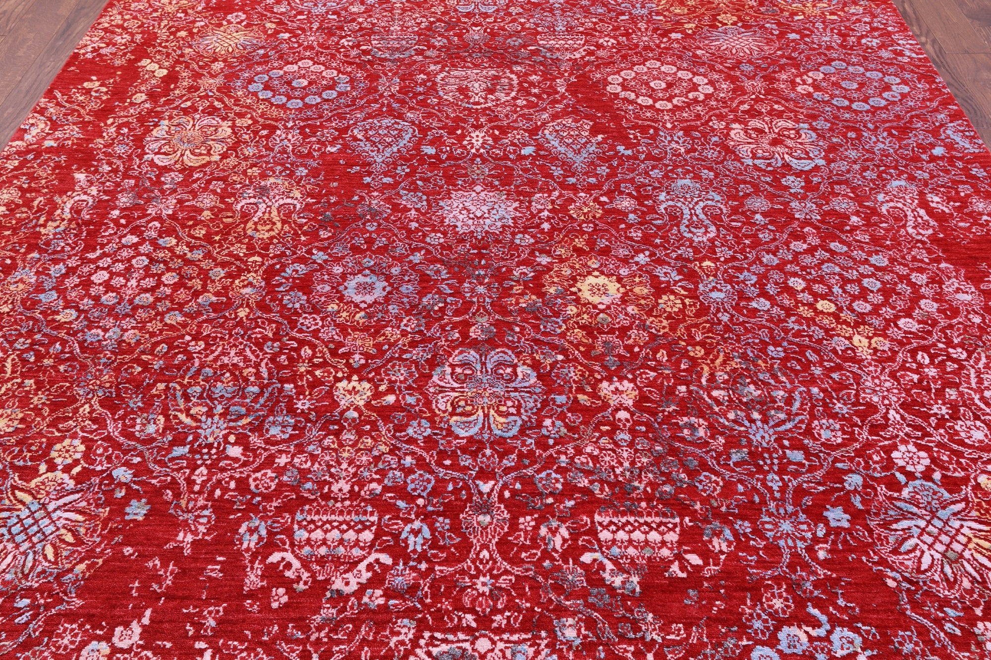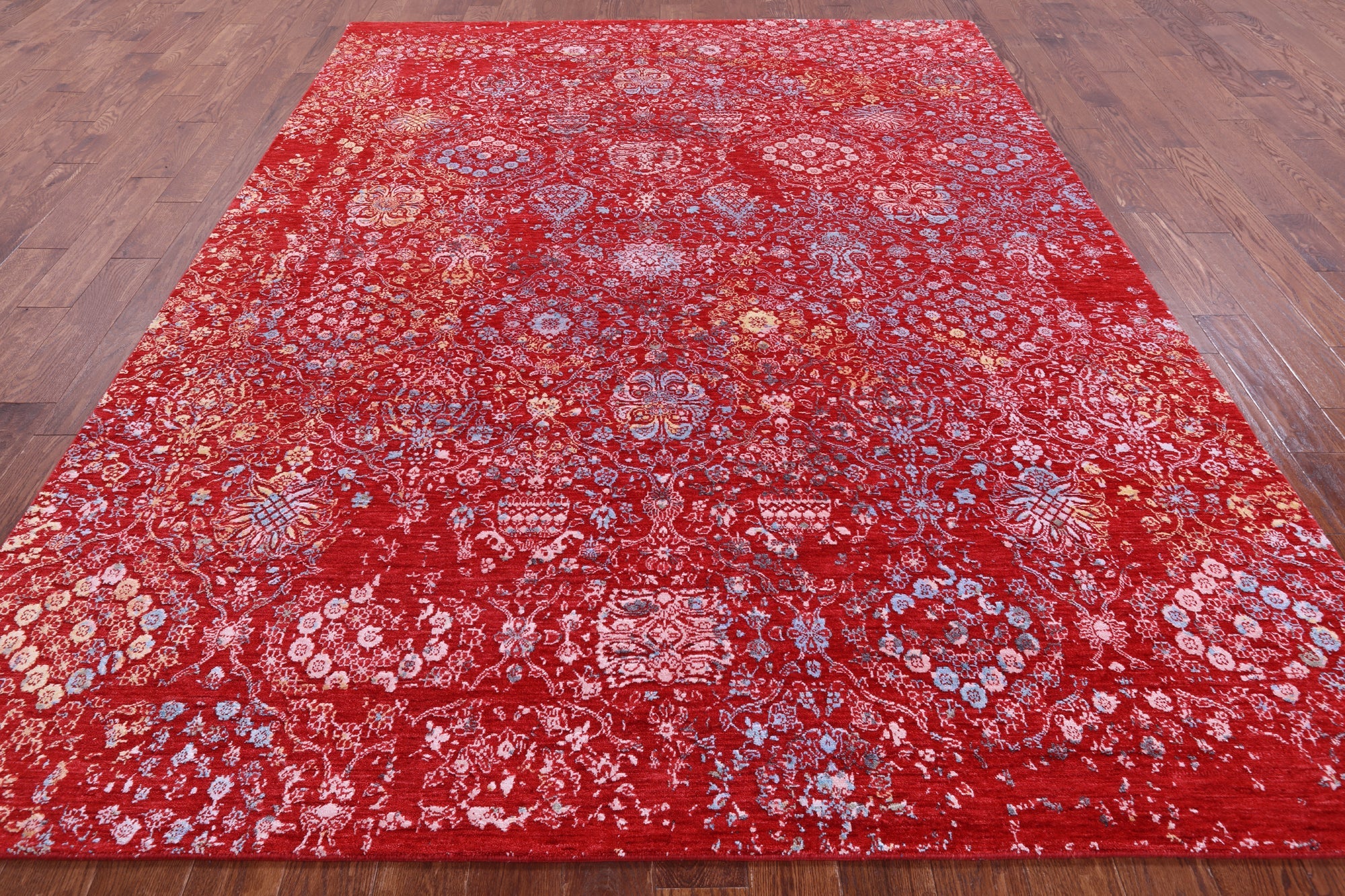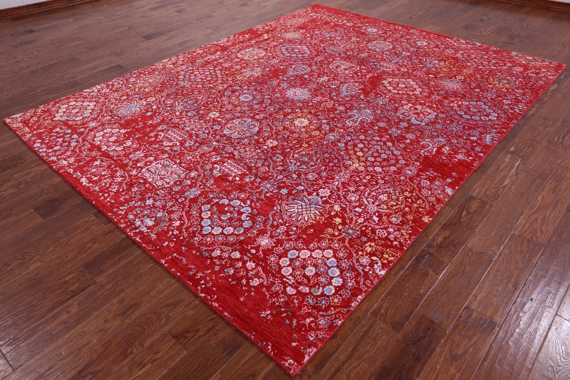 Red 7' 10" X 10' 5" Wool & Silk Modern Handmade Rug - Q14899