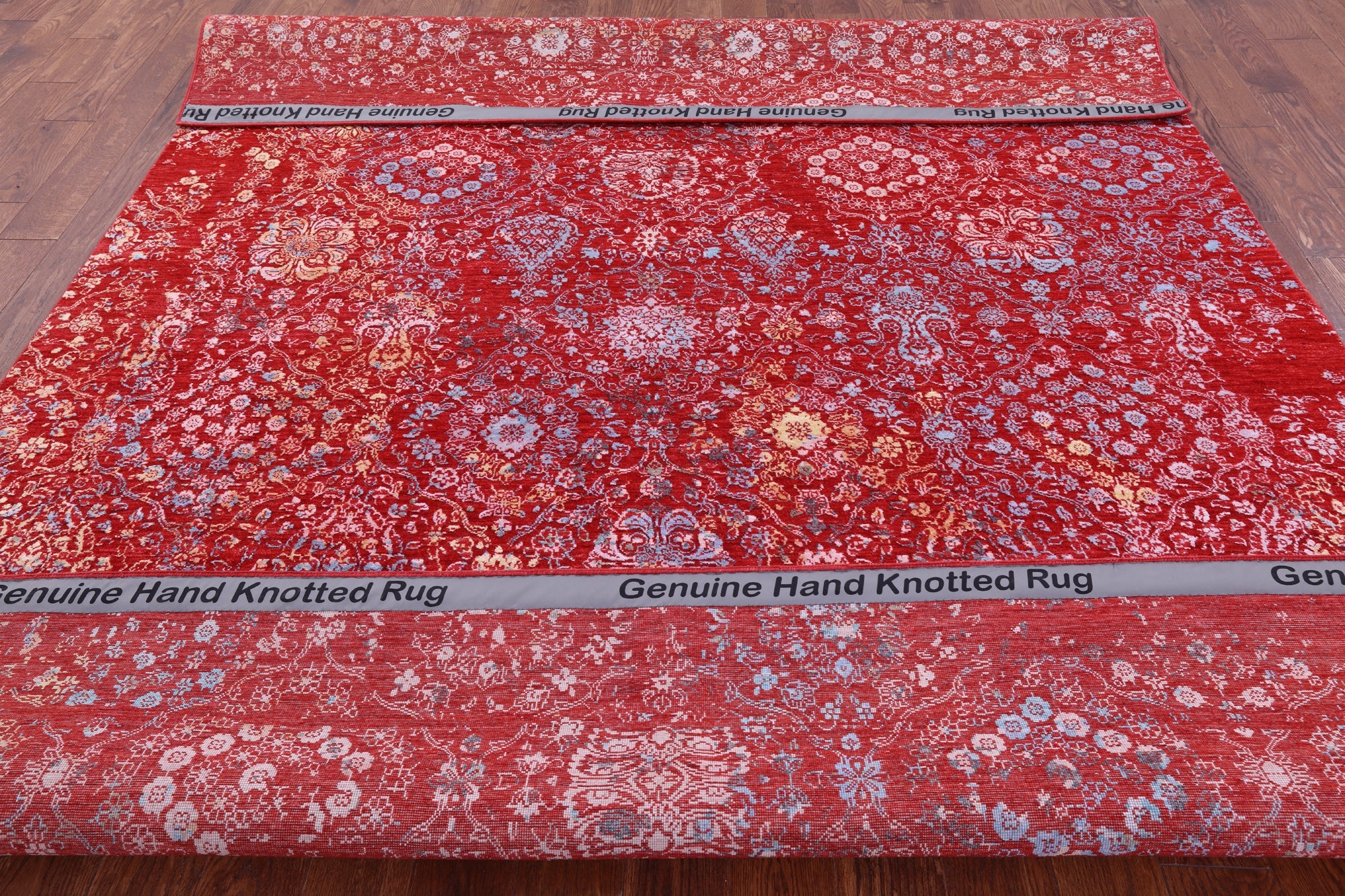 Red 7' 10" X 10' 5" Wool & Silk Modern Handmade Rug - Q14899 is backordered and will ship as soon as it is back in stock.