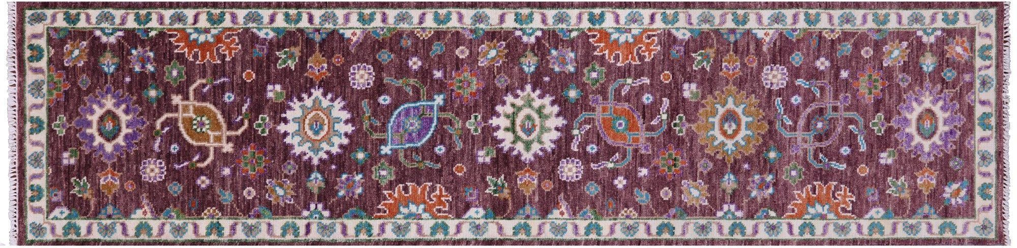2' 7" X 10' 4" Runner Hand Knotted Turkish Angora Oushak Wool Rug - Q19379