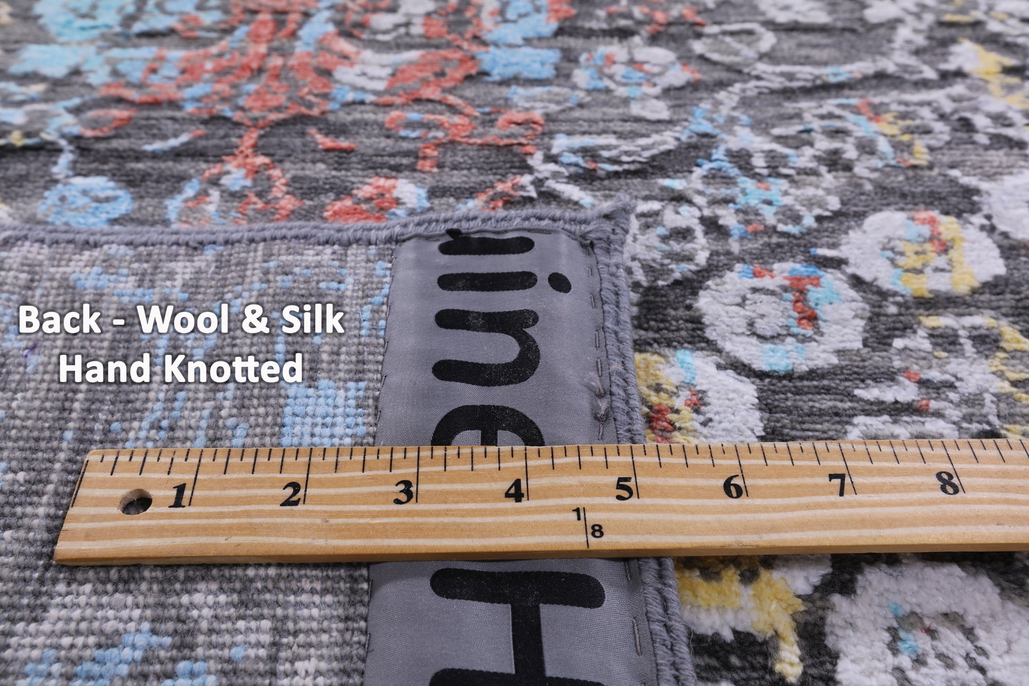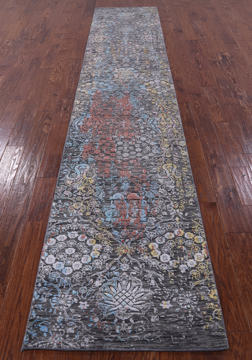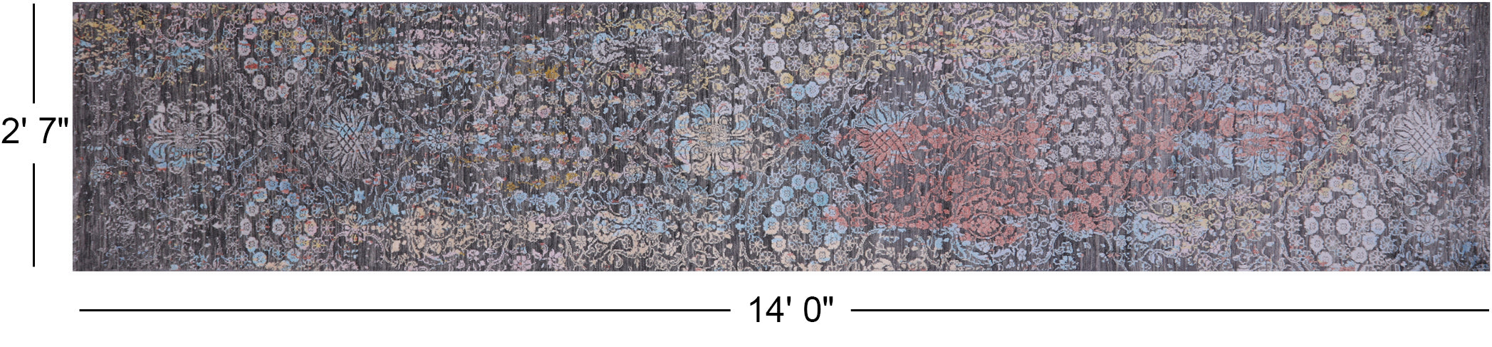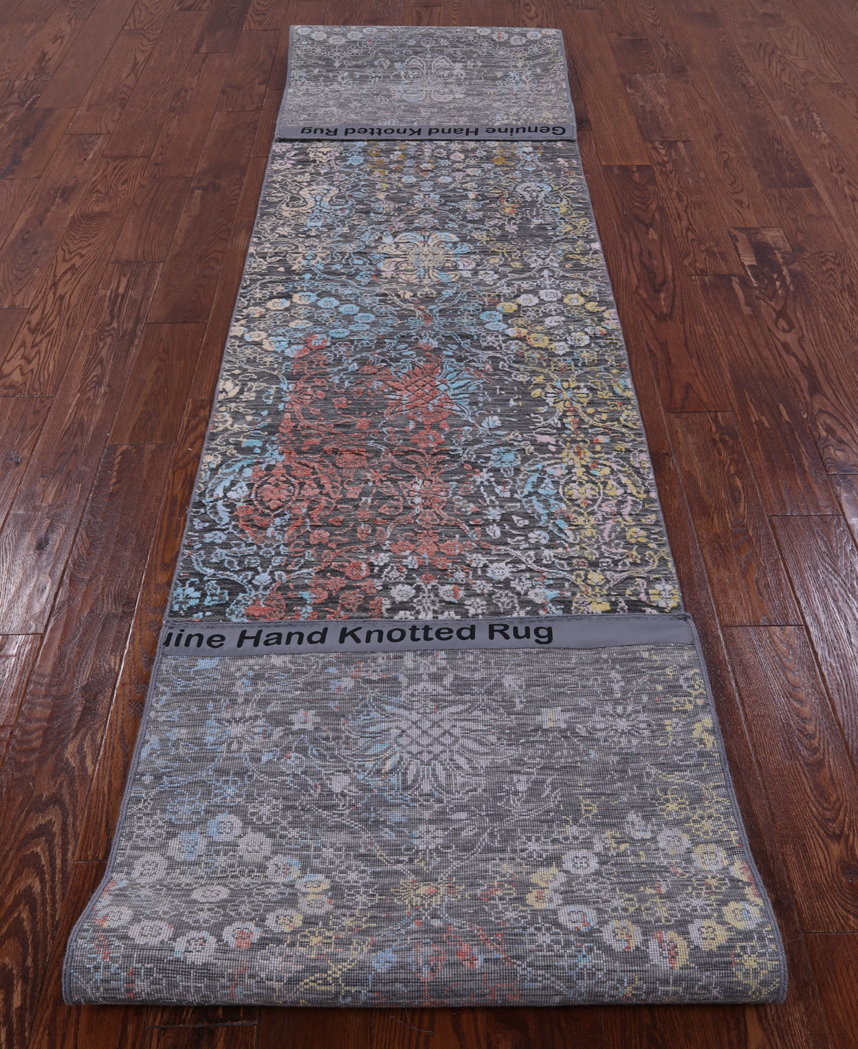 Runner Handmade Modern Wool & Silk Rug 2' 7" X 14' 0" - Q9266