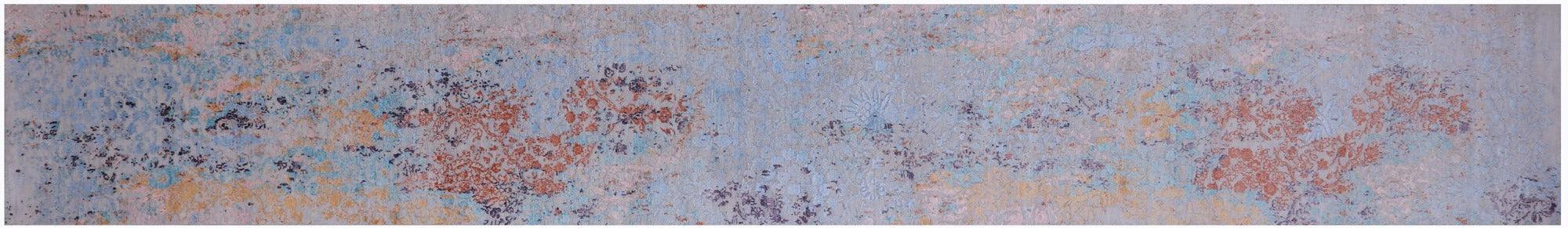 2' 5" X 17' 7" Runner Modern Handmade Wool & Silk Rug - Q9265