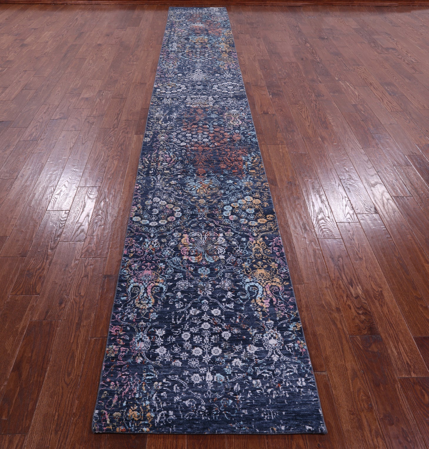 Runner Modern Wool & Silk Hand-Knotted Rug 2' 6" X 17' 11" - Q11832