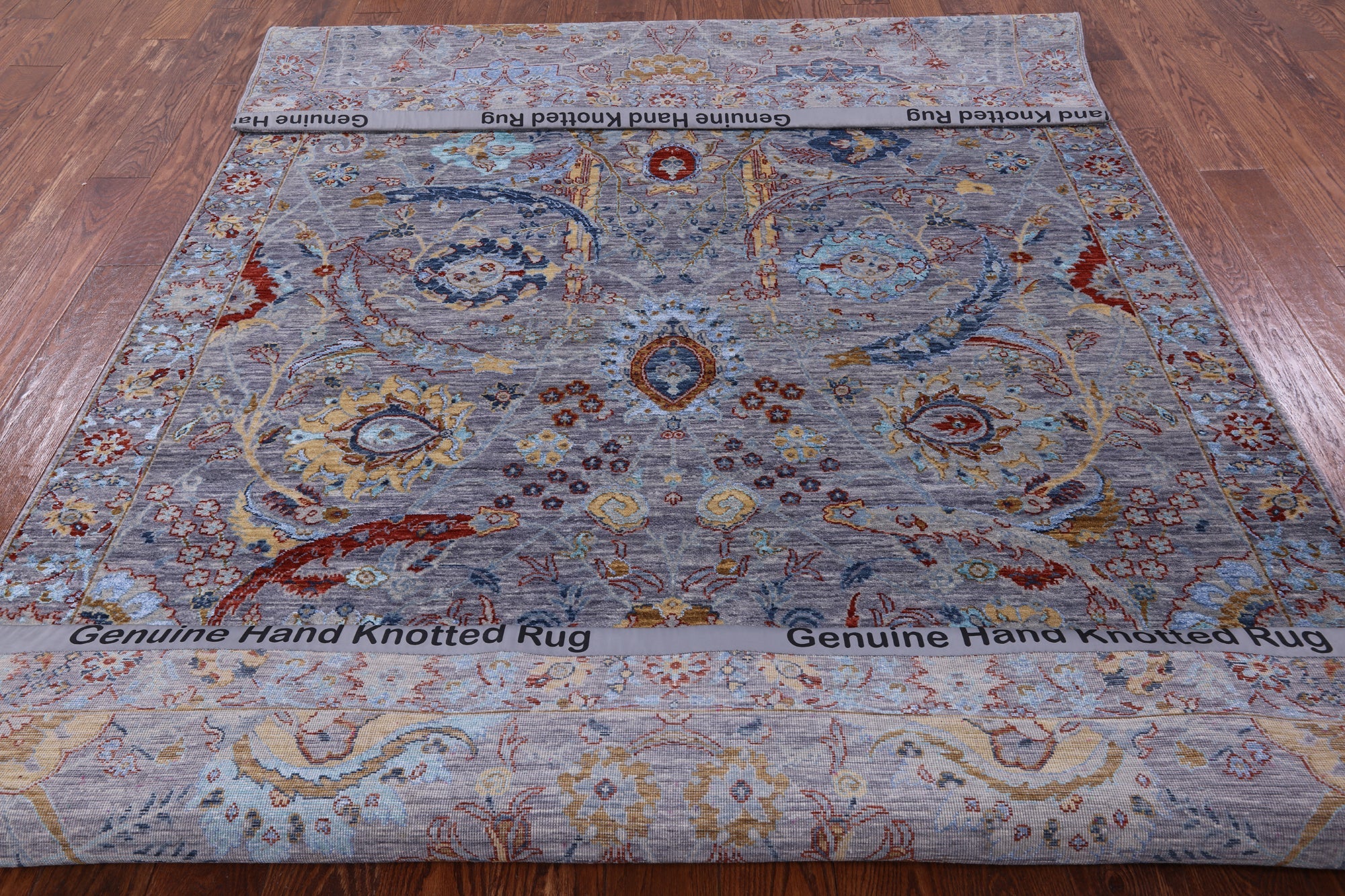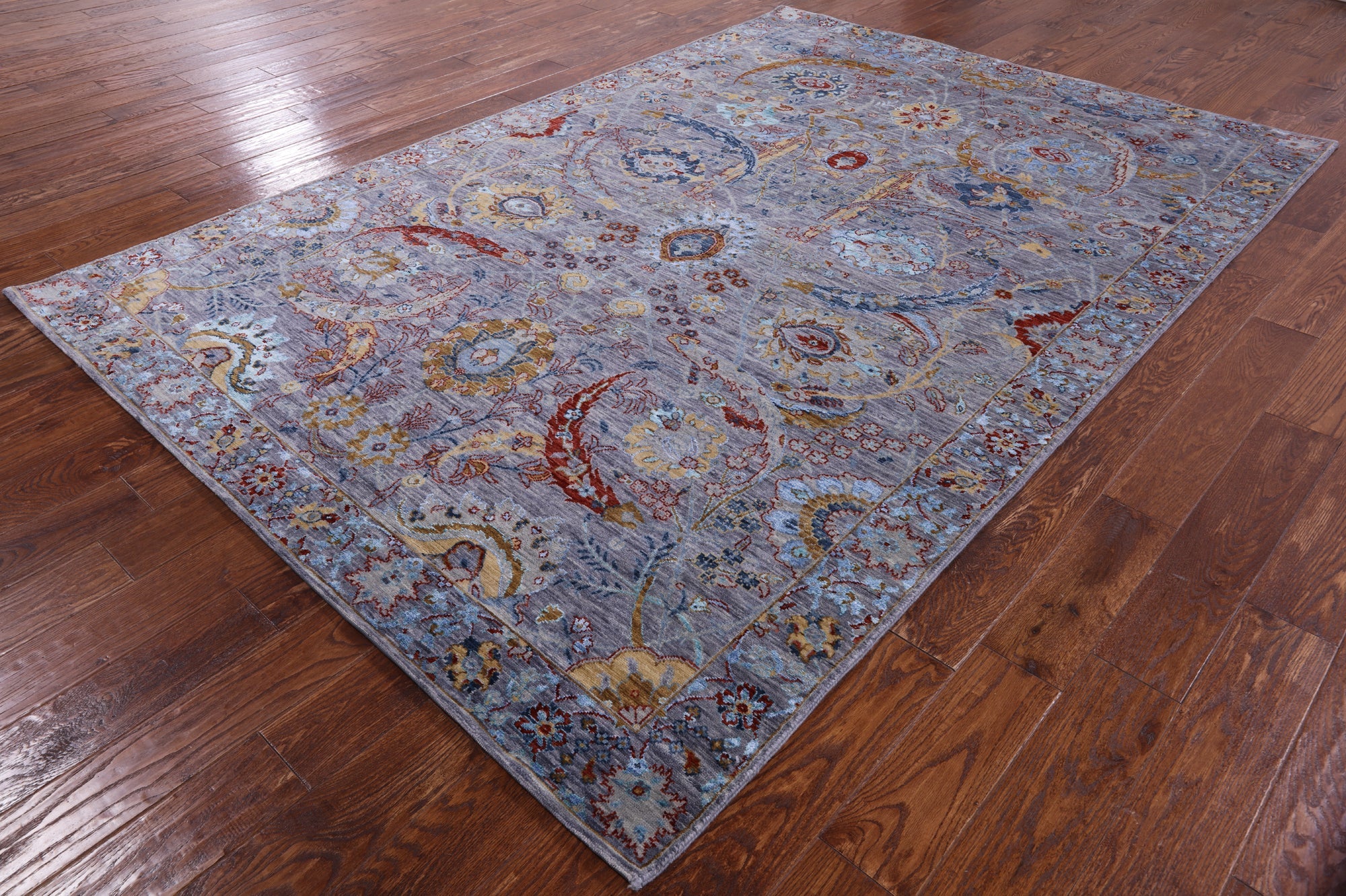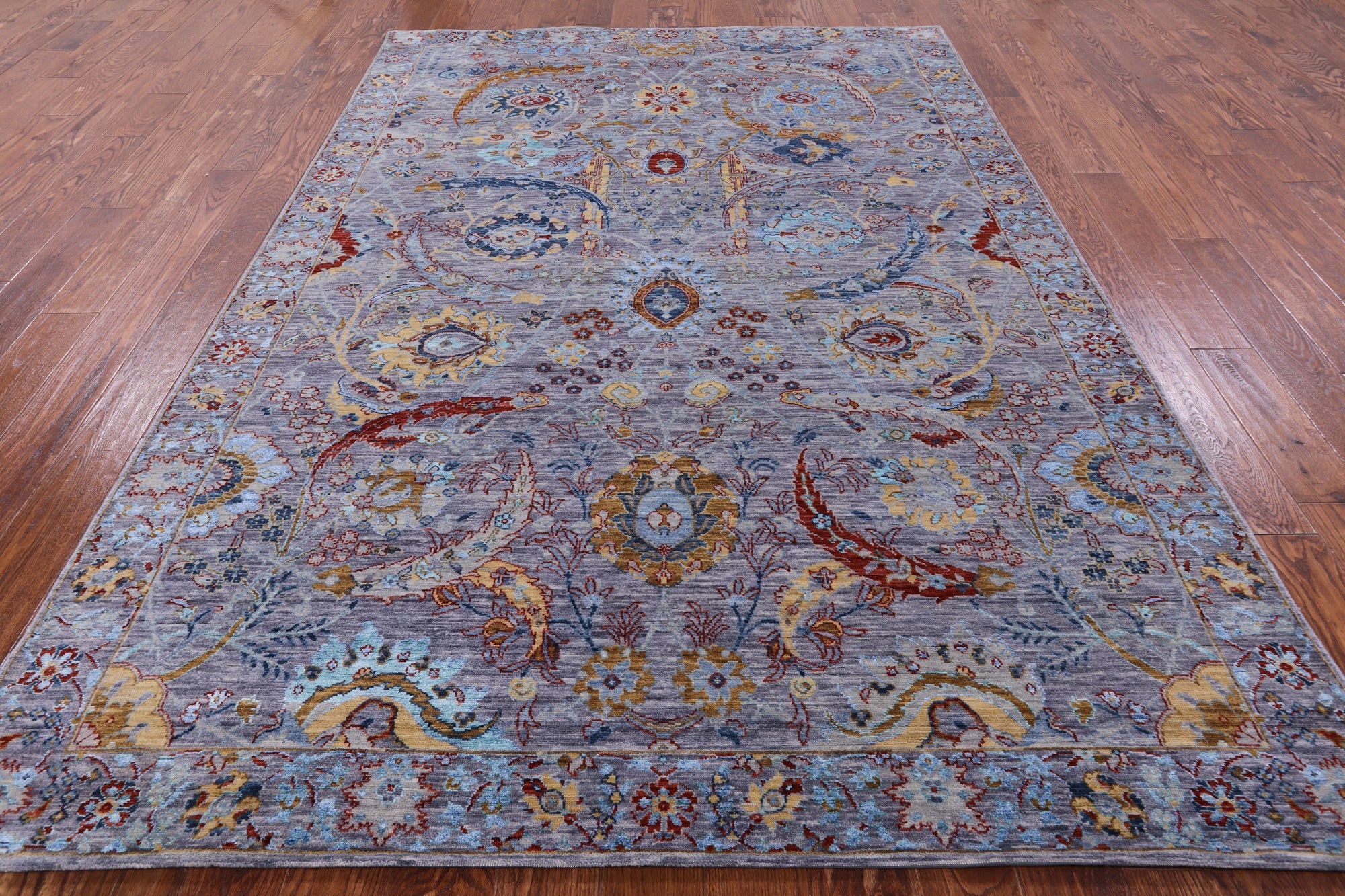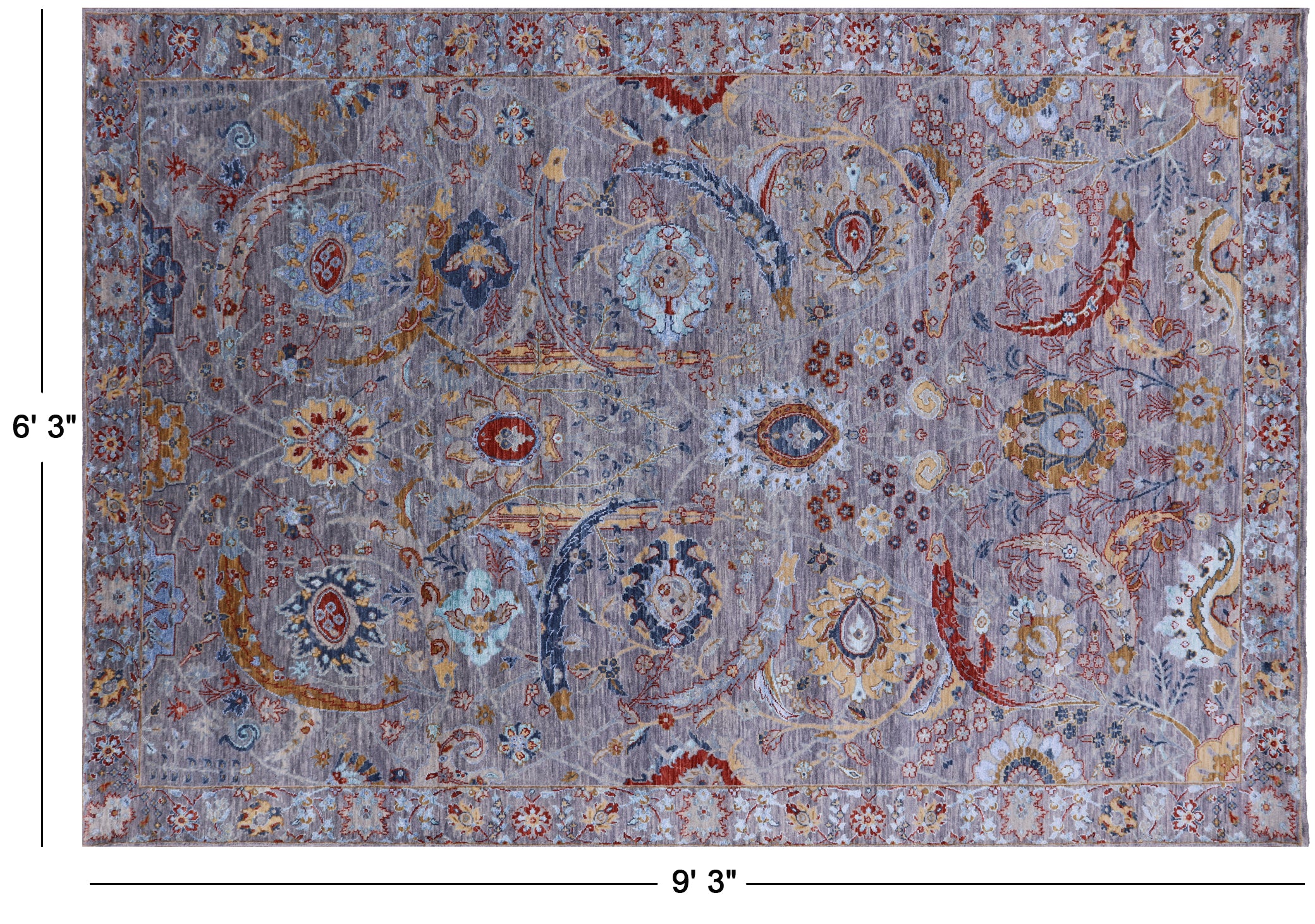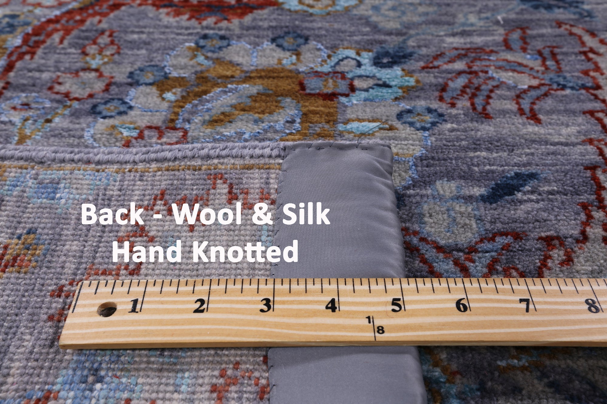 Sickle Leaf Design Persian Wool & Silk Hand Knotted Rug 6' 3" X 9' 3" - Q6075 is backordered and will ship as soon as it is back in stock.
