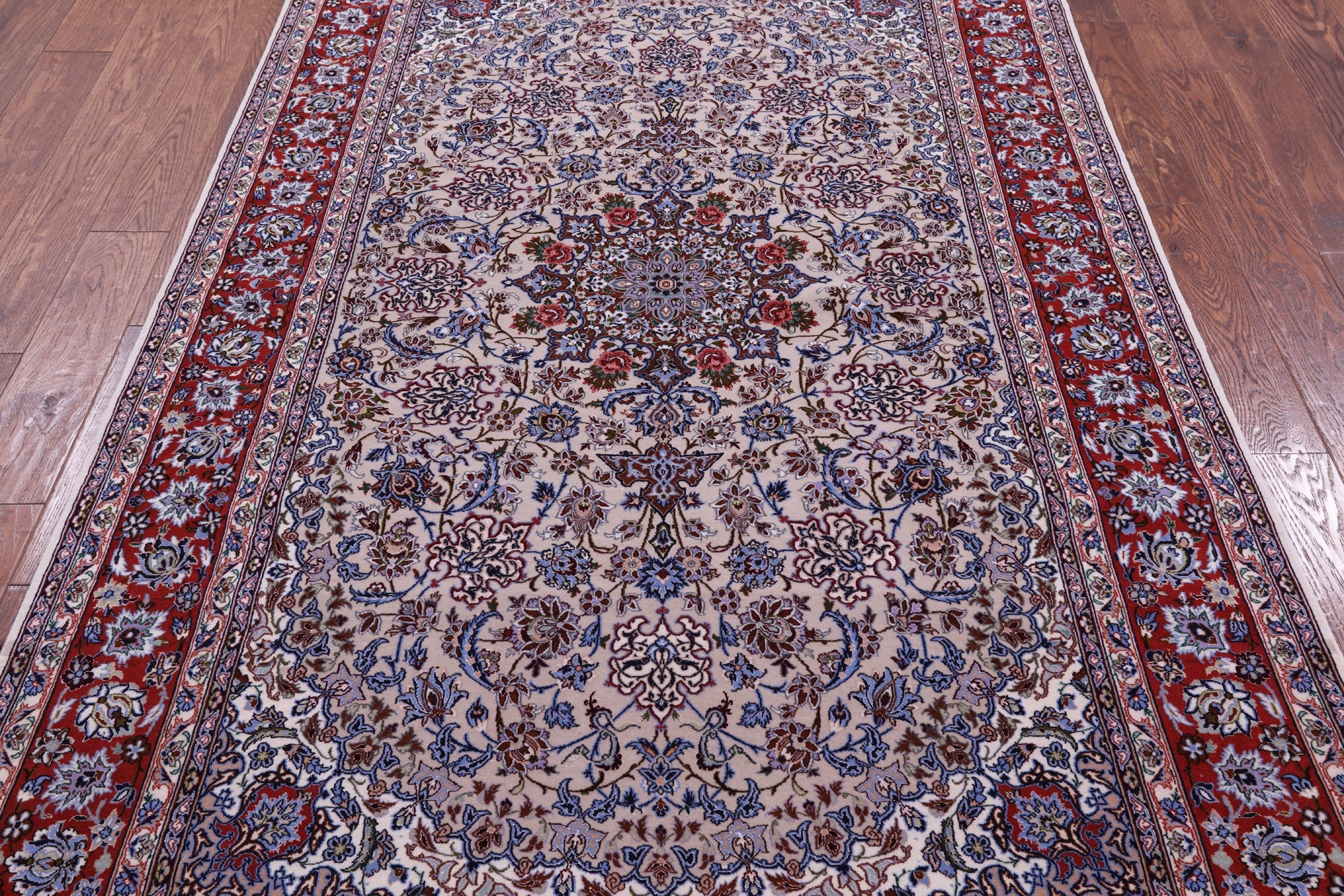 Isfahan rugs date back to the seventeenth century. Isfahan was then the capital of Persia. These rugs are known to be classic and are hand knotted with either silk or wool foundations. They use variety vegetable dye colors such as reds, blues, ivory, beige, black and much more. Isfahan rugs are one of the highest quality rugs in the world.