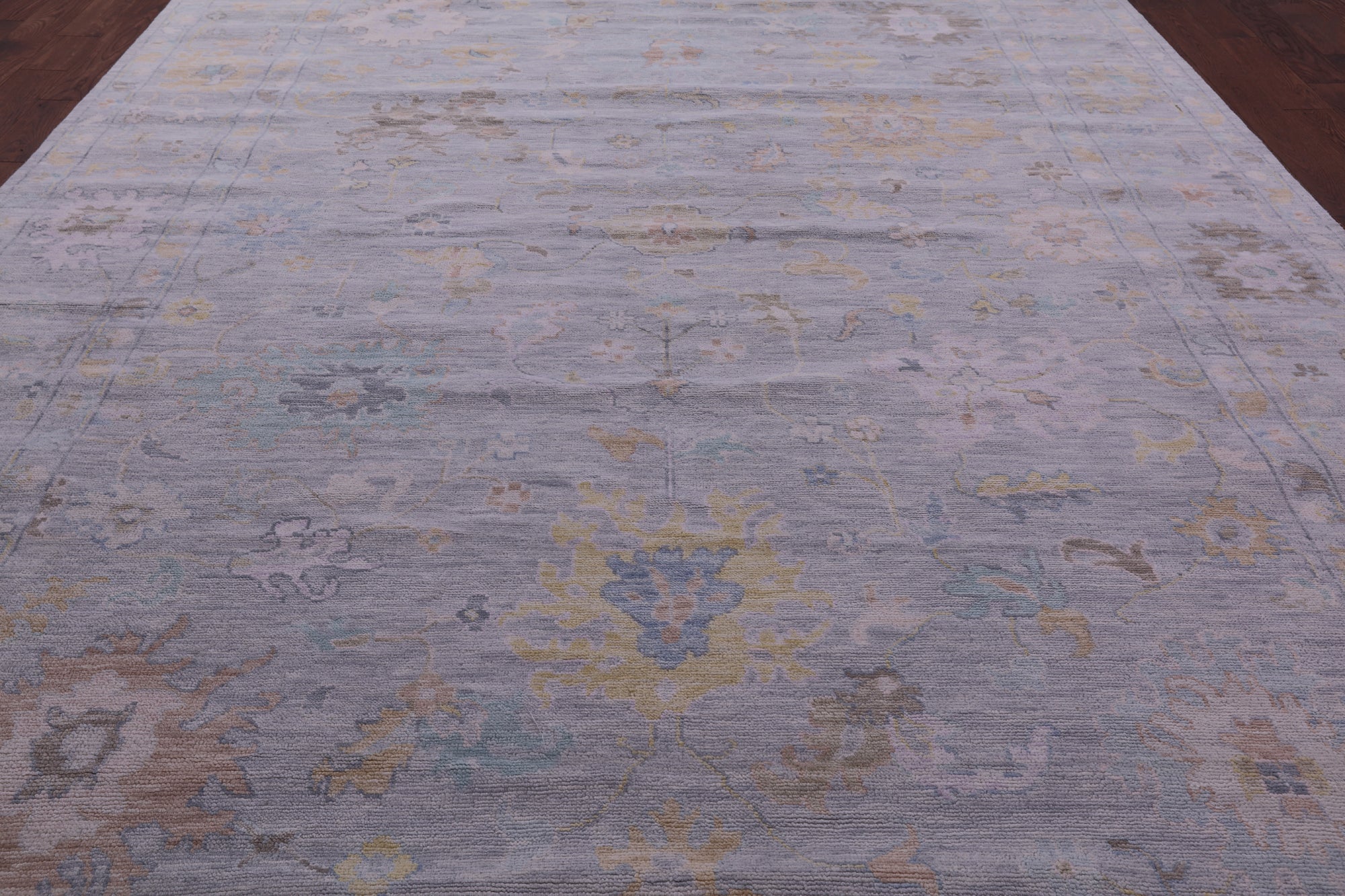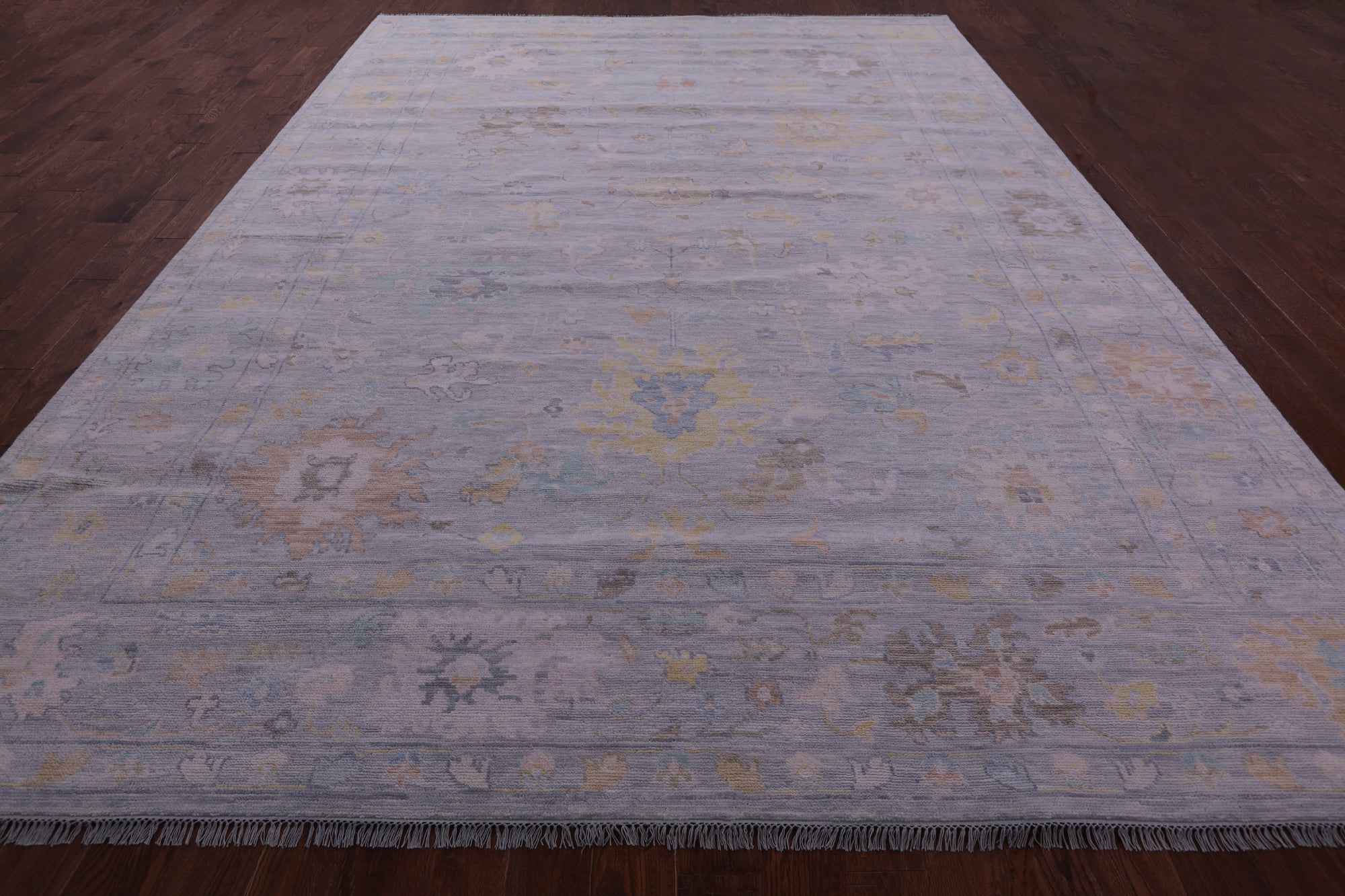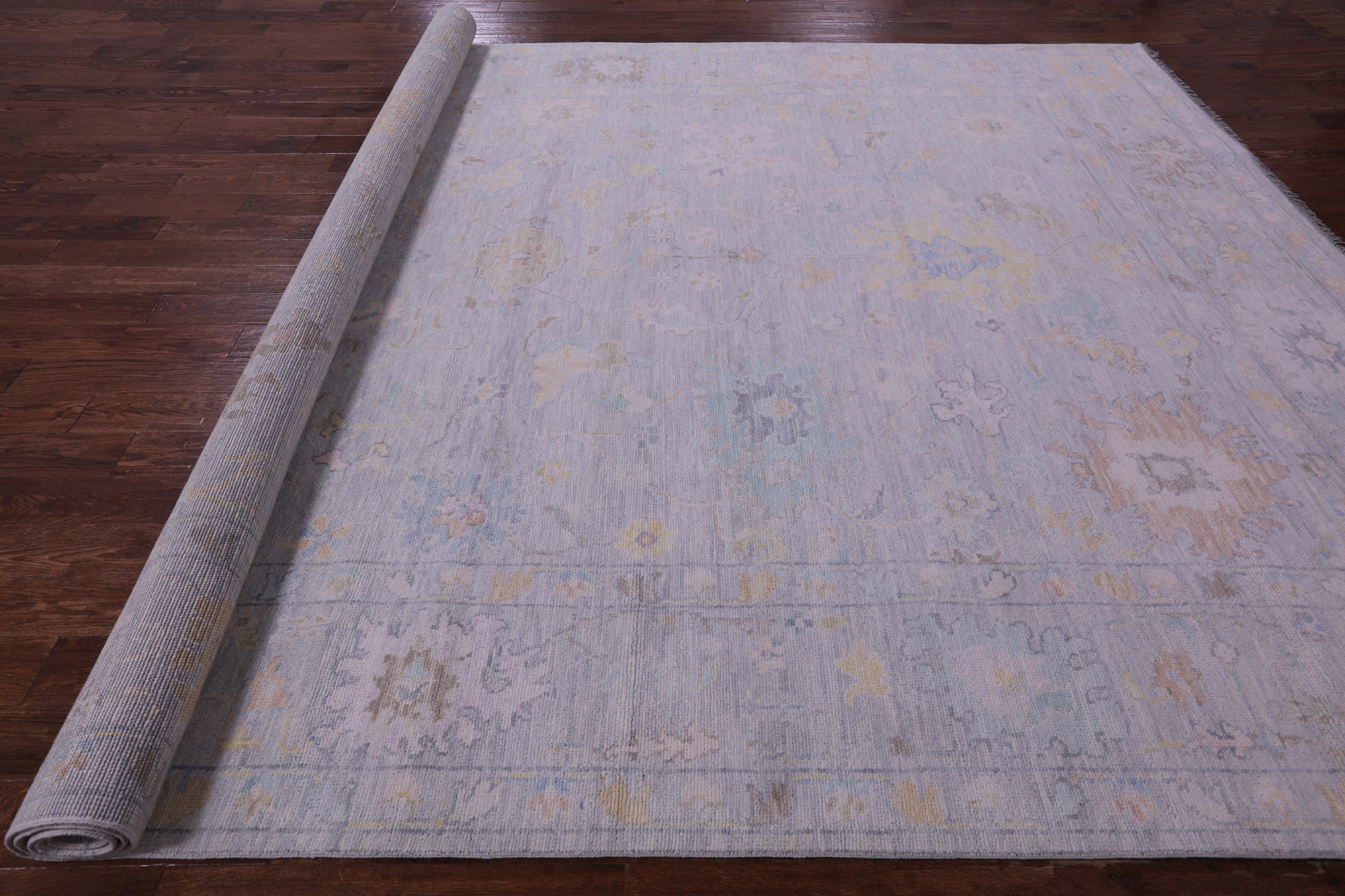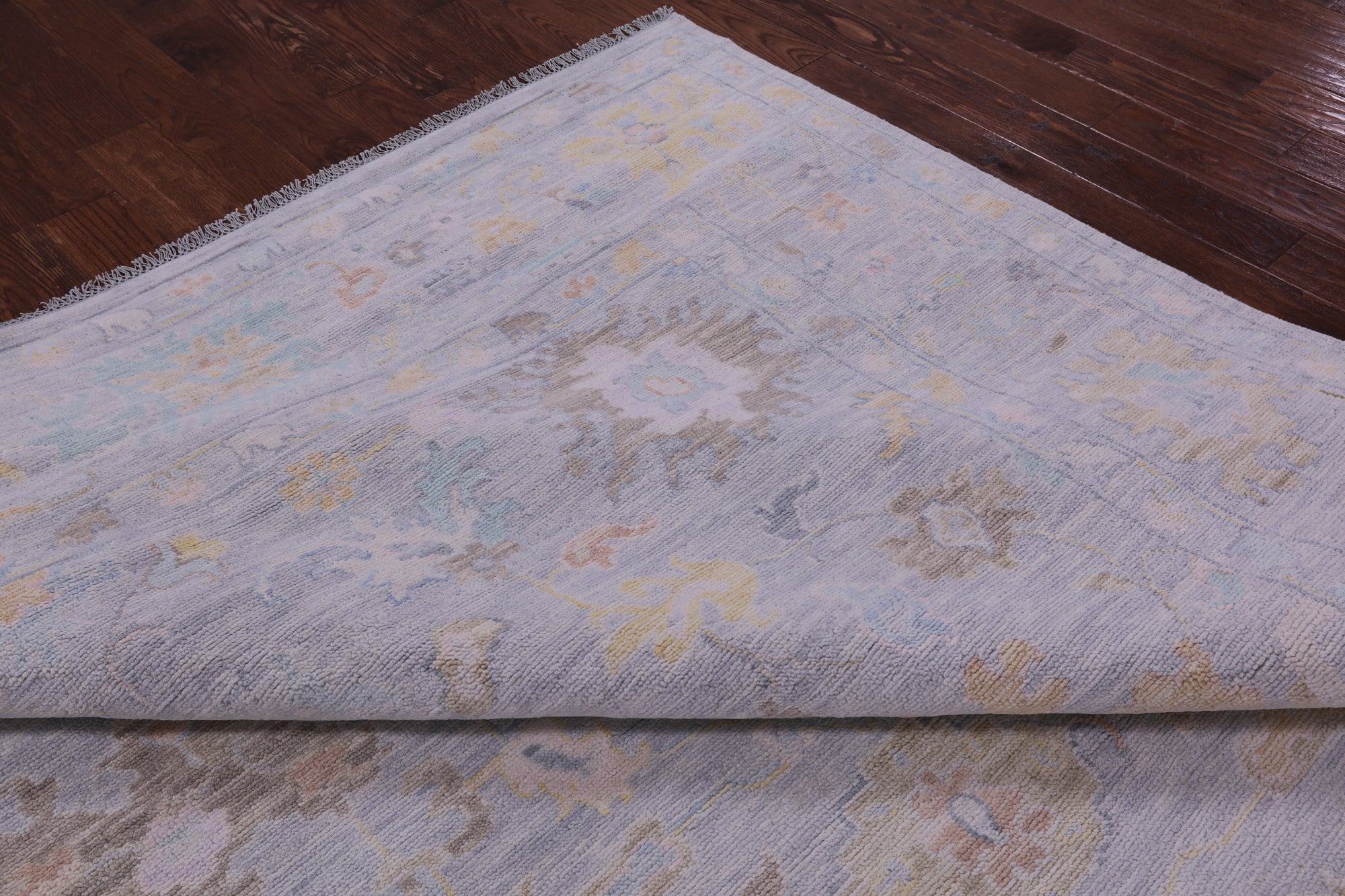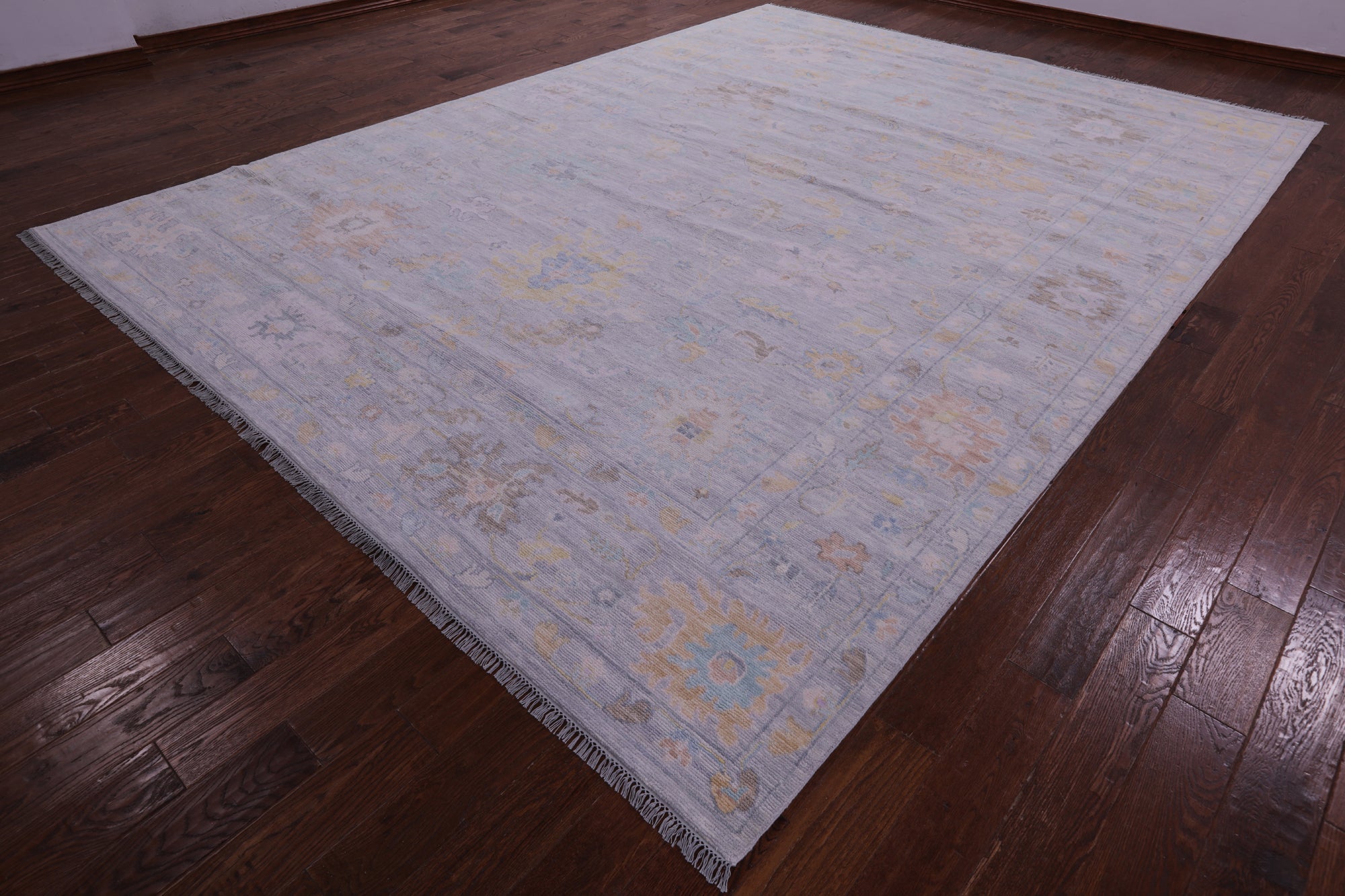 Silver 10' 1" X 13' 8" Hand-Knotted Turkish Angora Oushak Wool Rug - Q21219
