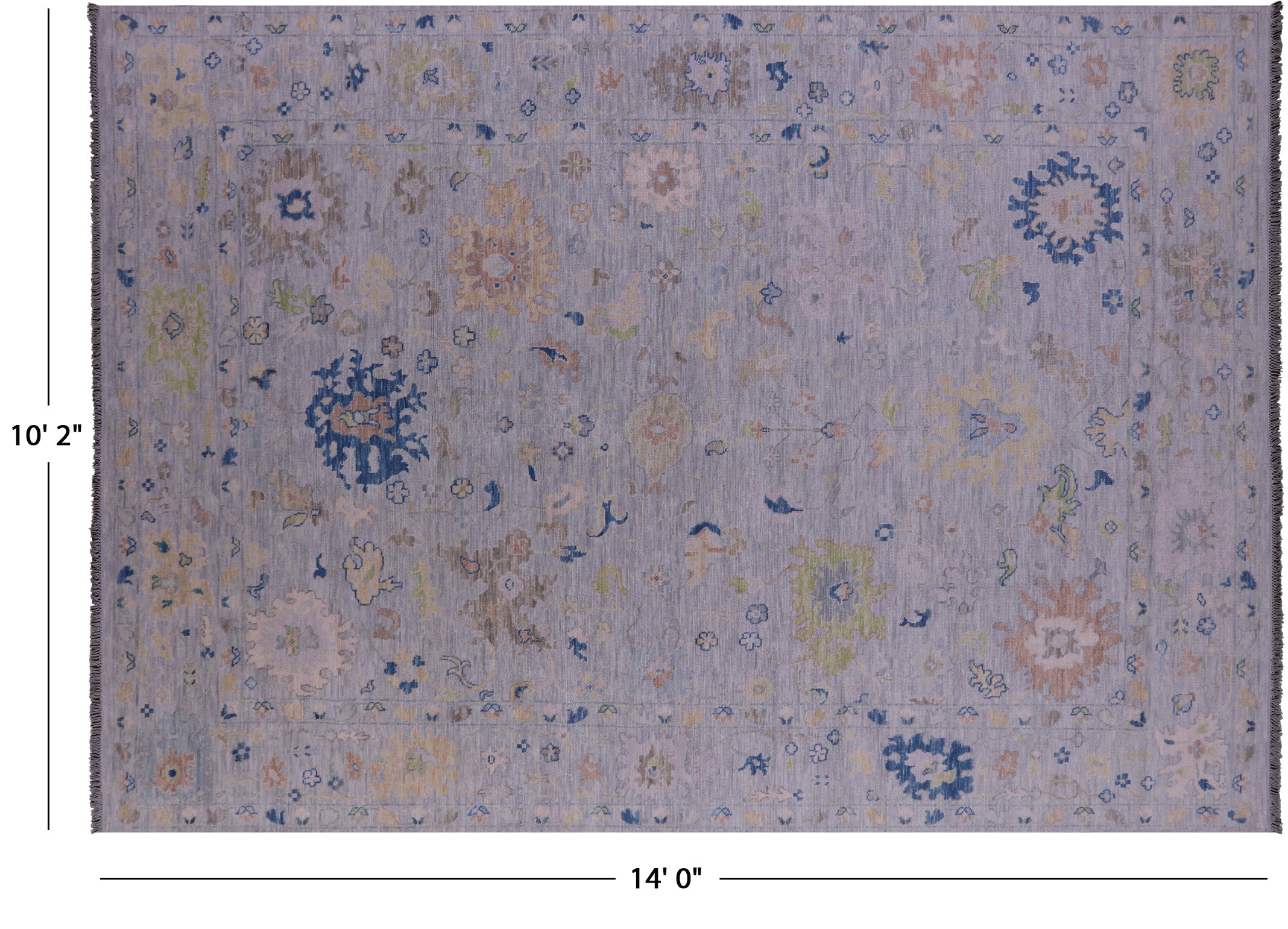 Silver 10' 2" X 14' 0" Hand-Knotted Turkish Angora Oushak Wool Rug - Q21225