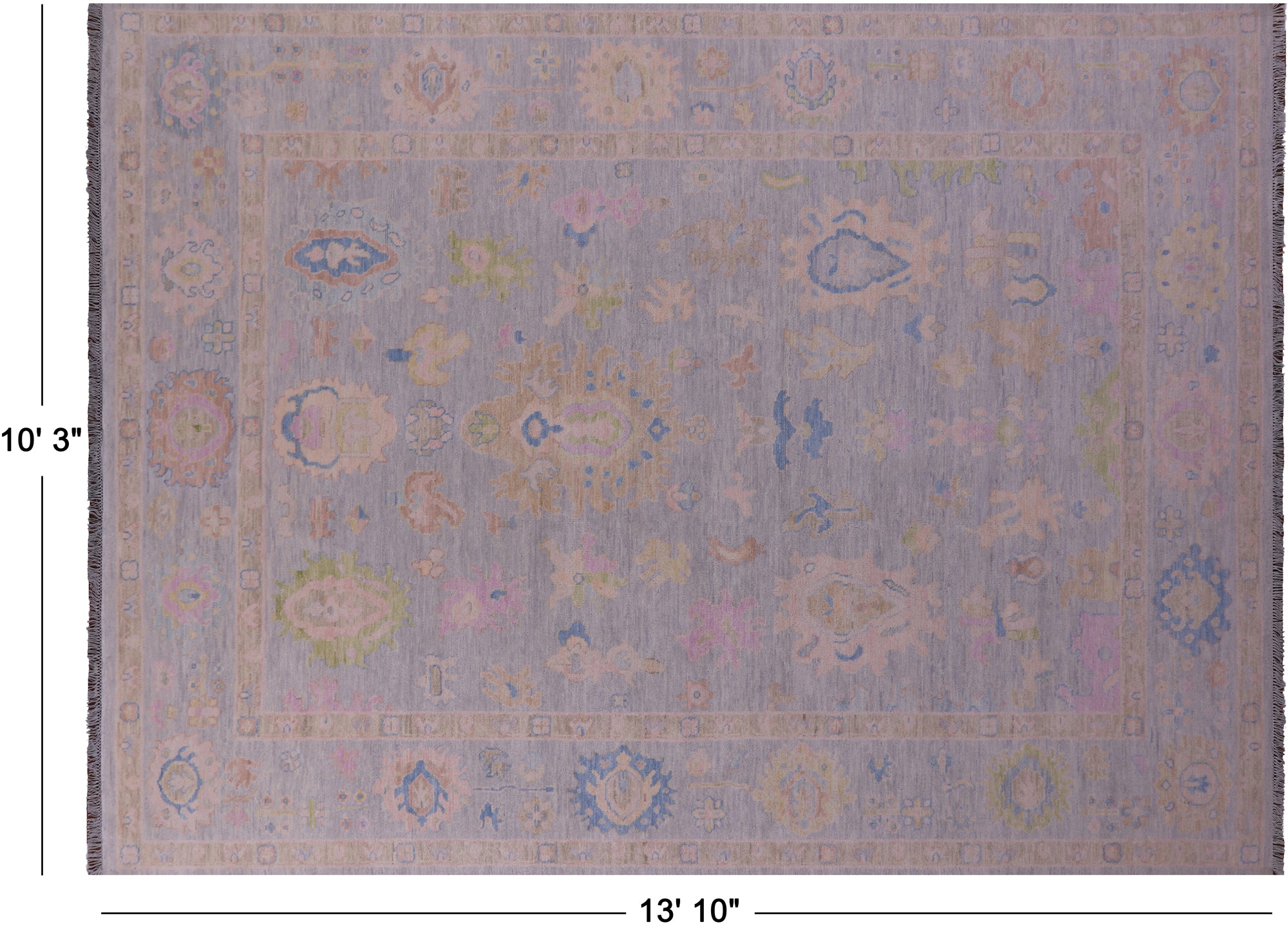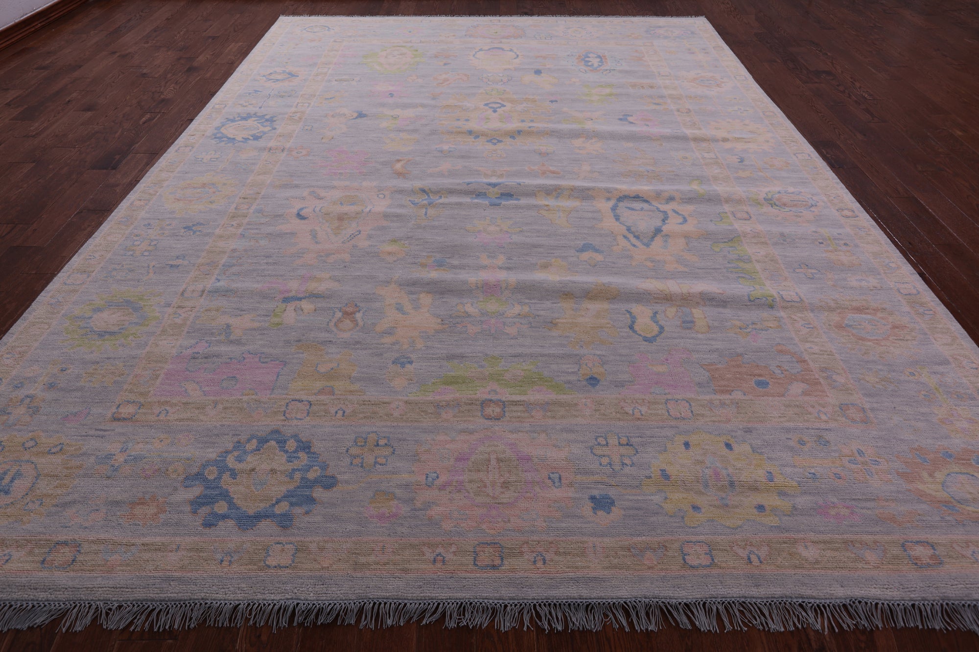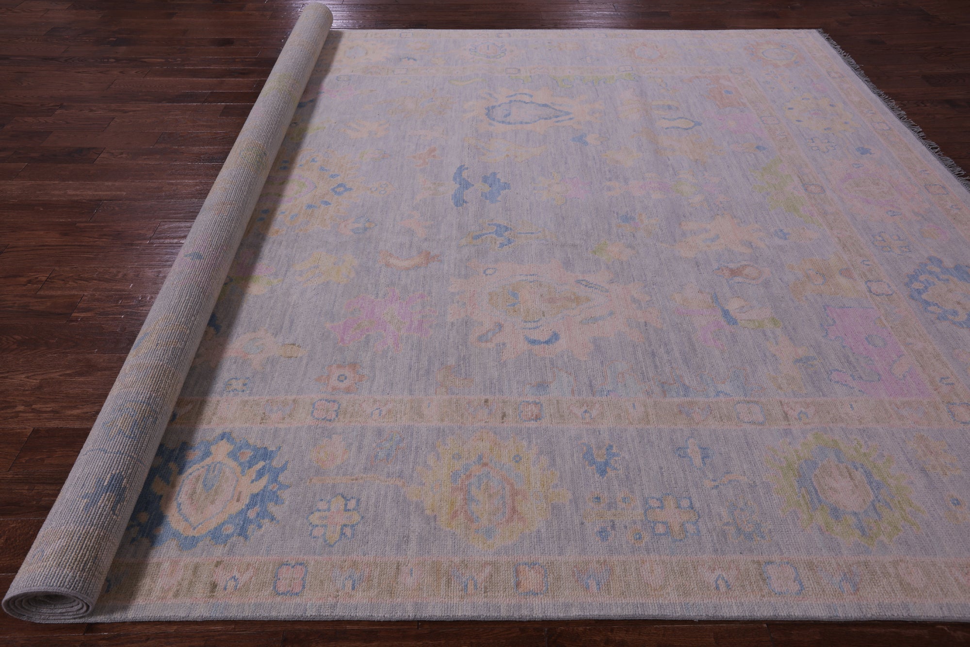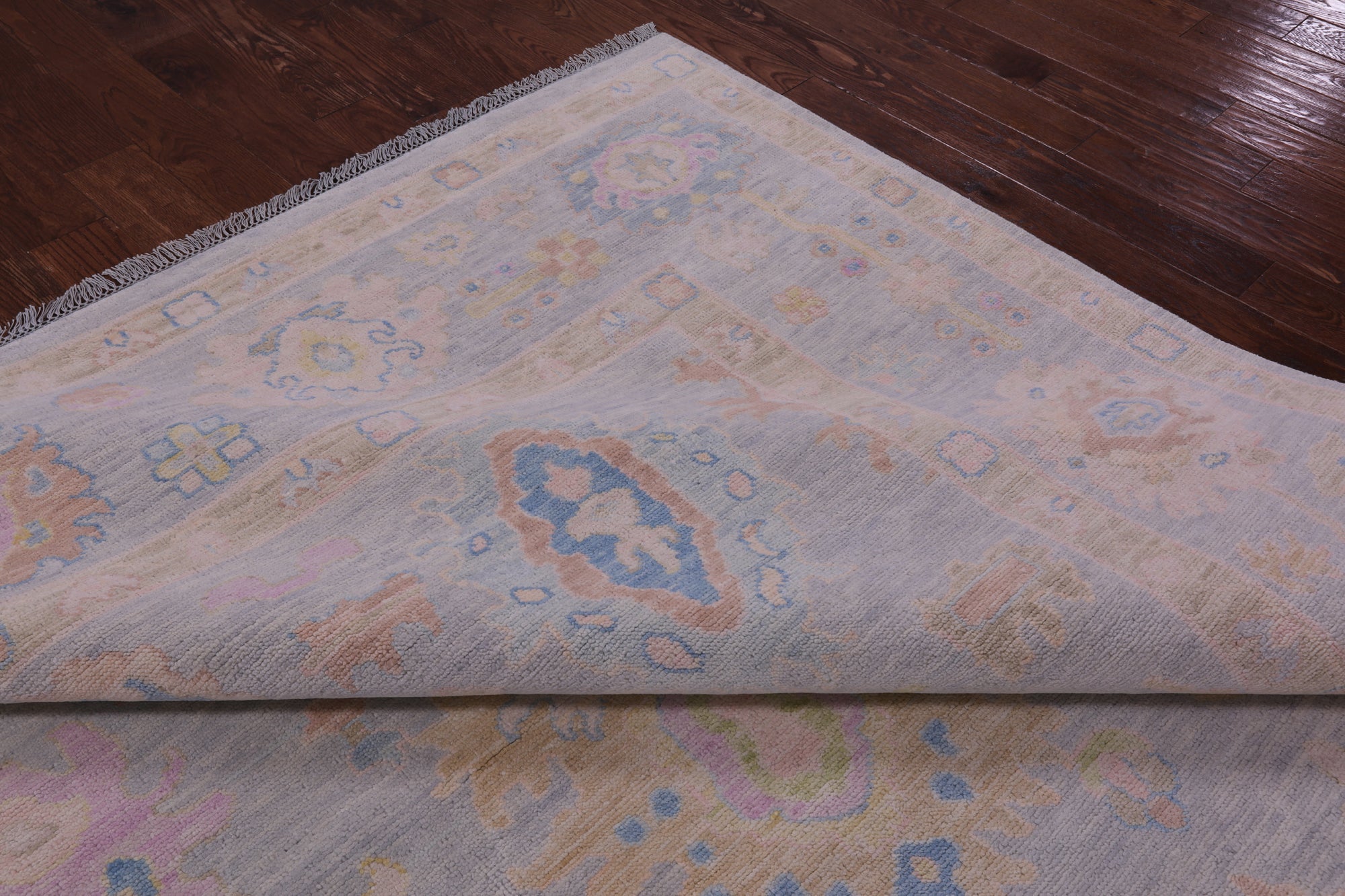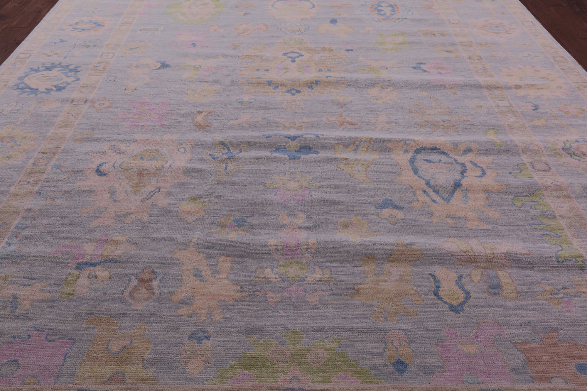 Silver Hand Knotted Turkish Angora Oushak Wool Rug 10' 3" X 13' 10" - Q22658 is backordered and will ship as soon as it is back in stock.