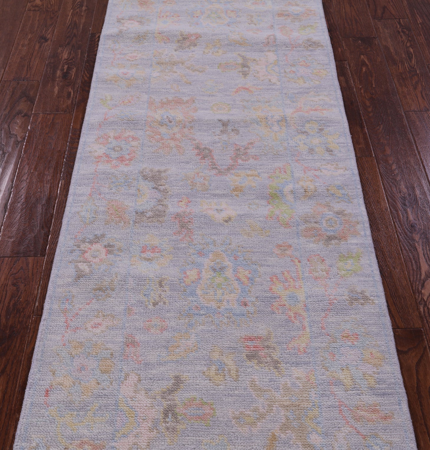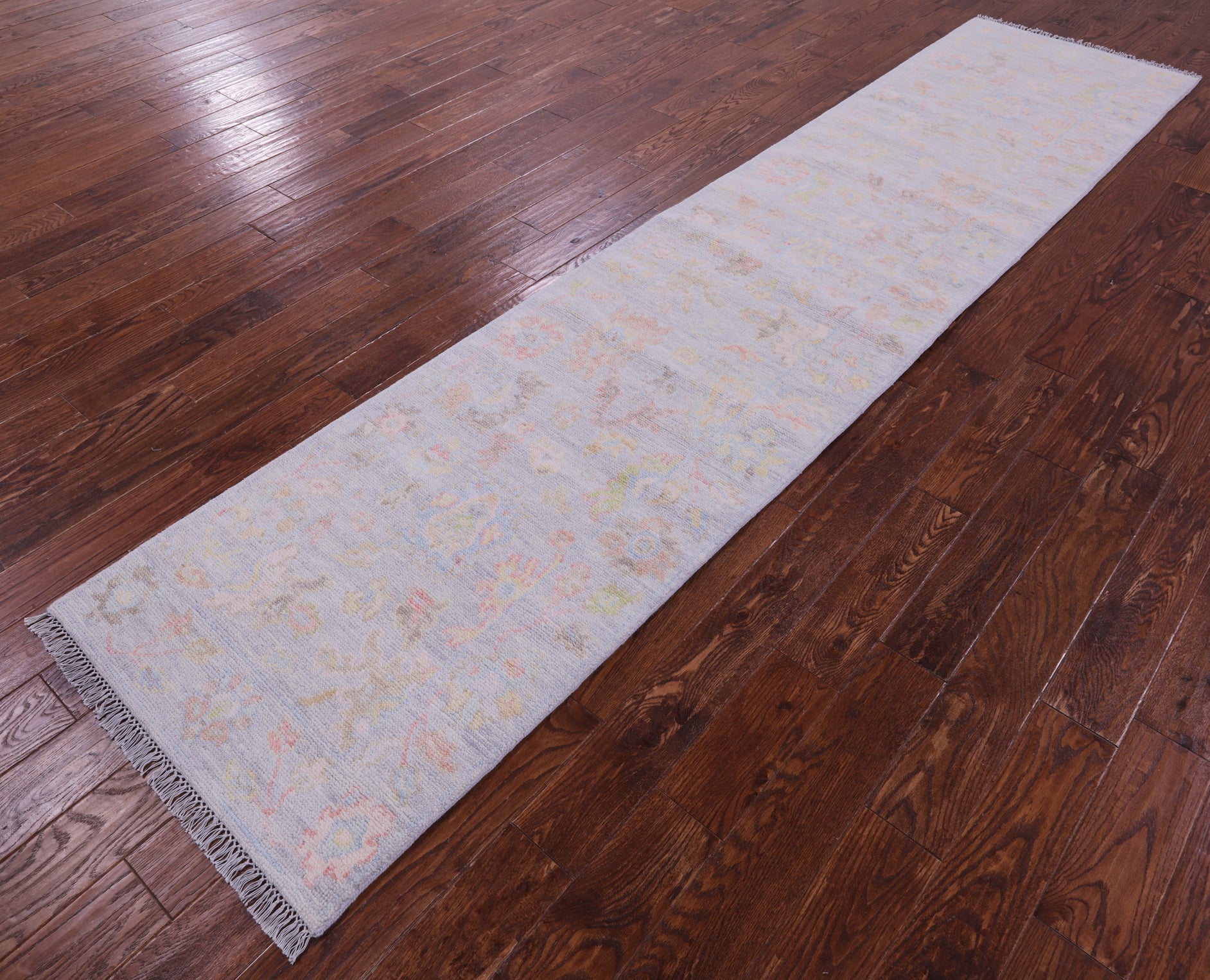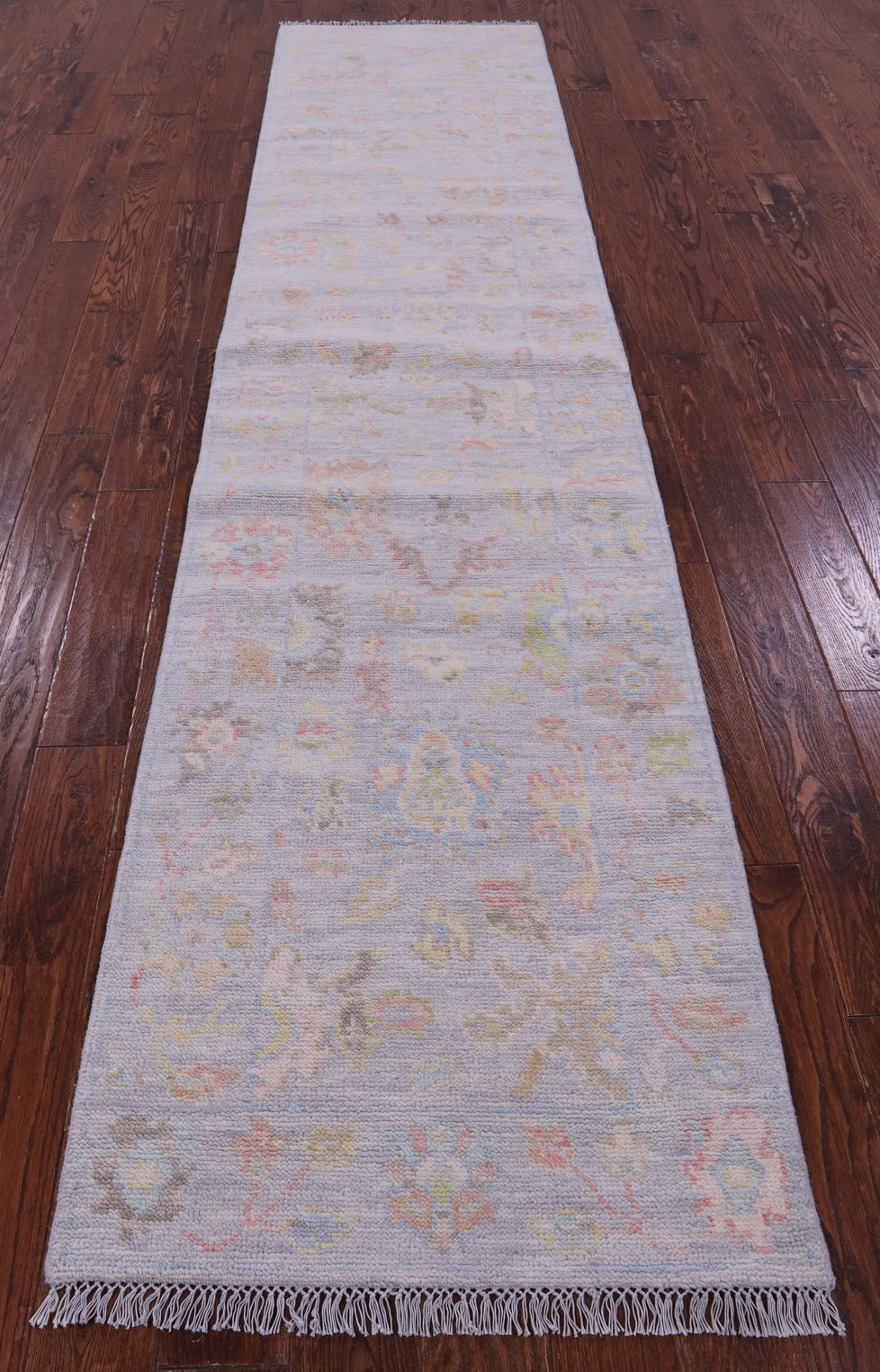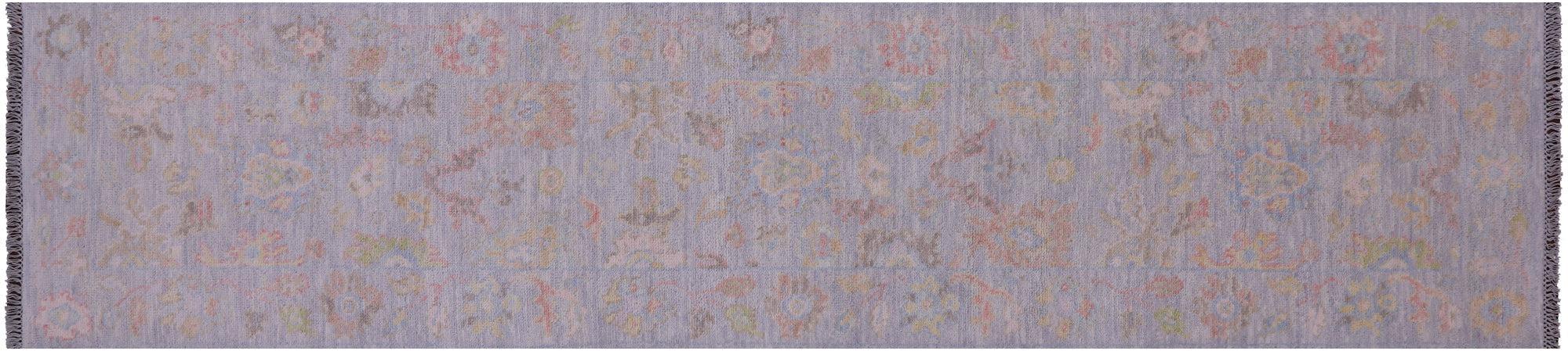 Silver 2' 7" X 11' 10" Runner Handmade Turkish Angora Oushak Wool Rug - Q21342