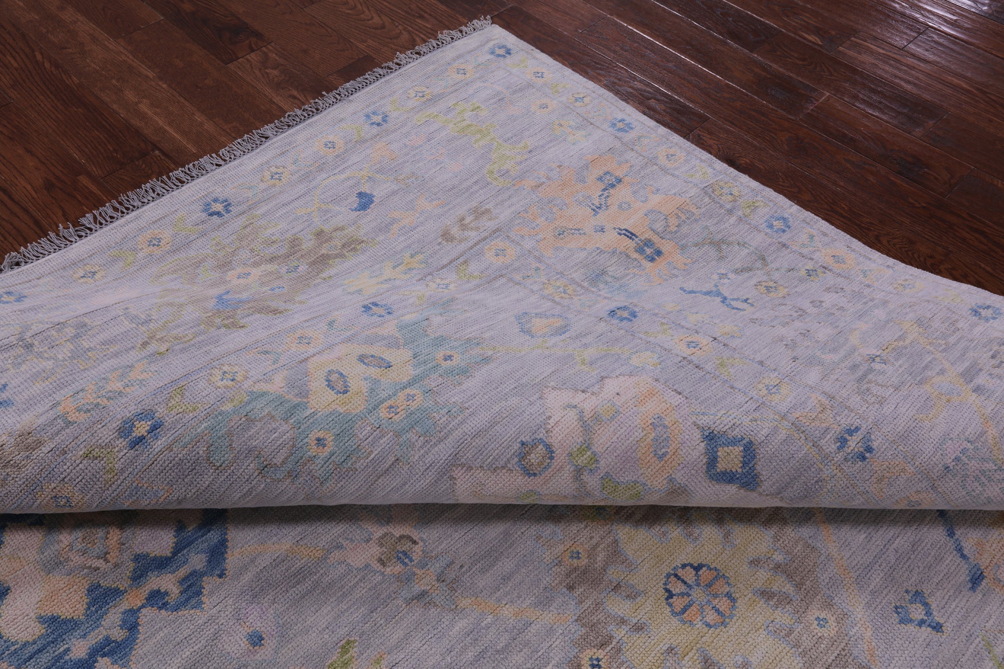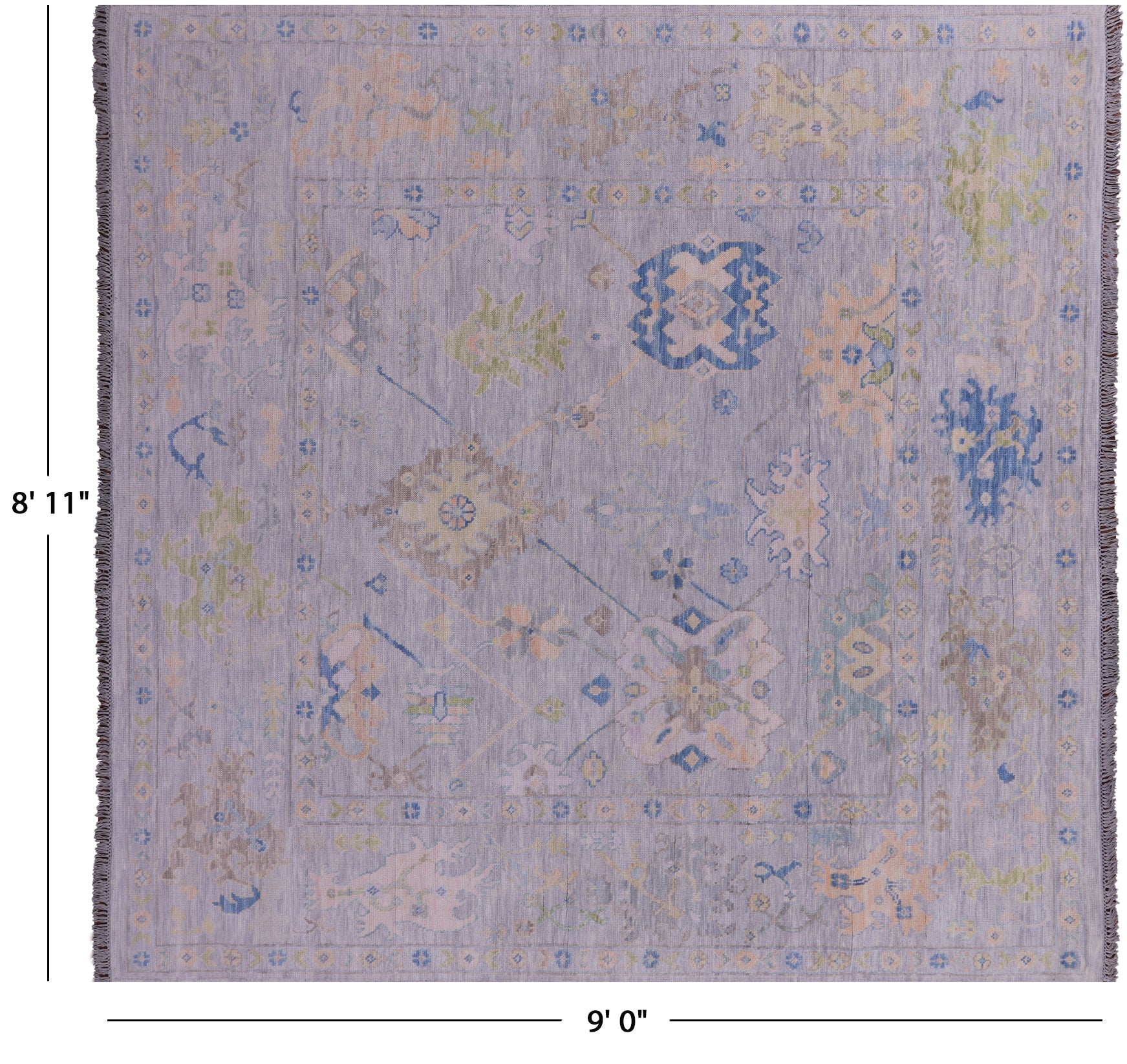 Silver 9' Square Handmade Turkish Angora Oushak Wool Rug - Q22353 is backordered and will ship as soon as it is back in stock.