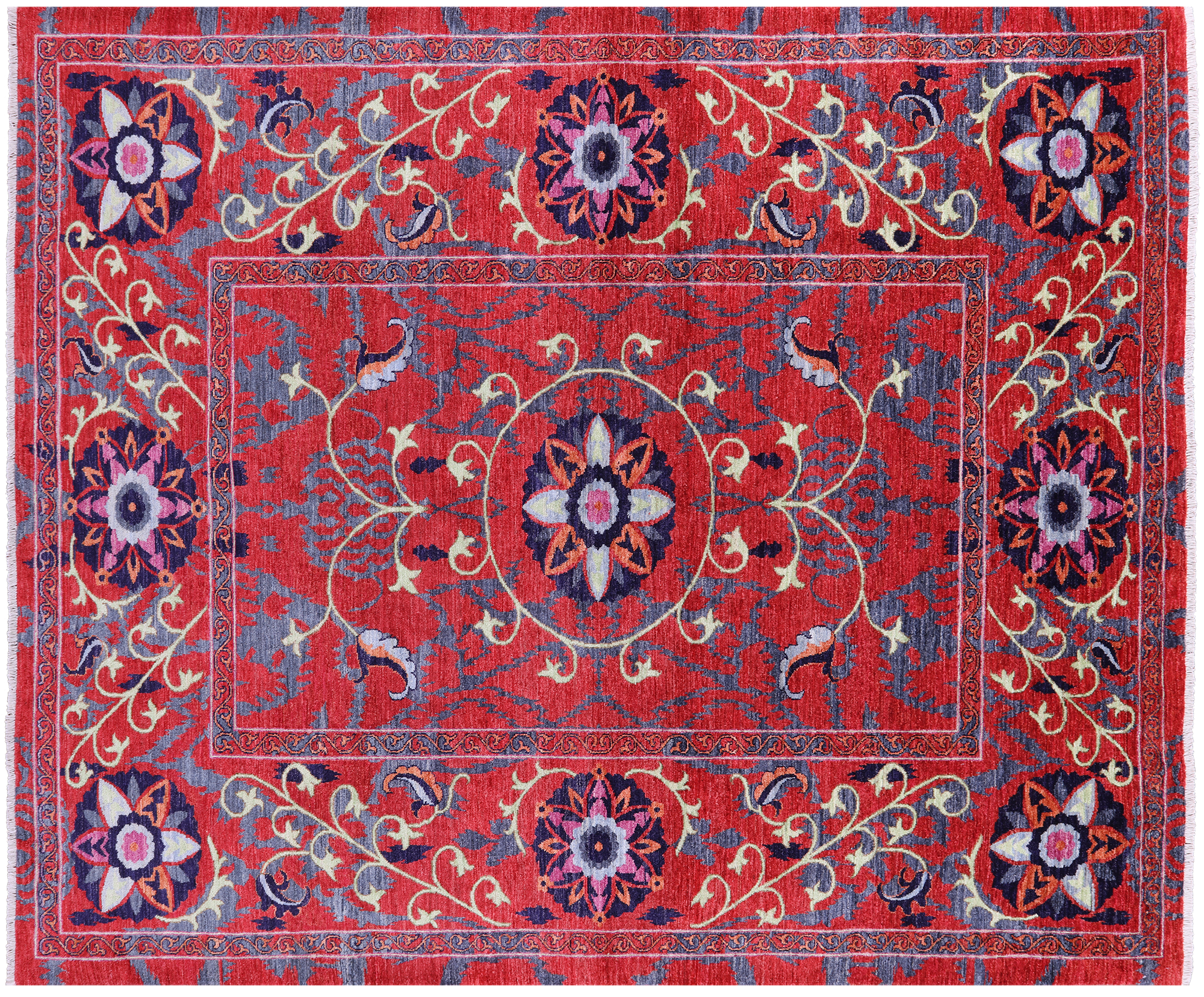 William Morris design are part of arts and crafts movement often including natural forms. These 19th and early 20th century designs are distinctive for their stylized natural forms, their symmetry and their vibrant colors. William Morris patterns are based on nature such thistles, ginkgo leaves, willow trees and flowers. These modern hand knotted rugs are woven with high quality wool, silk or both.