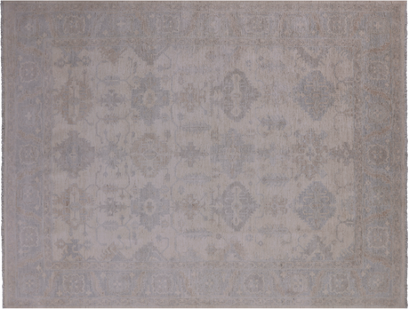 Ivory 7' 11" X 9' 11" Turkish Oushak Washed Out Hand-Knotted Wool Rug - Q9601