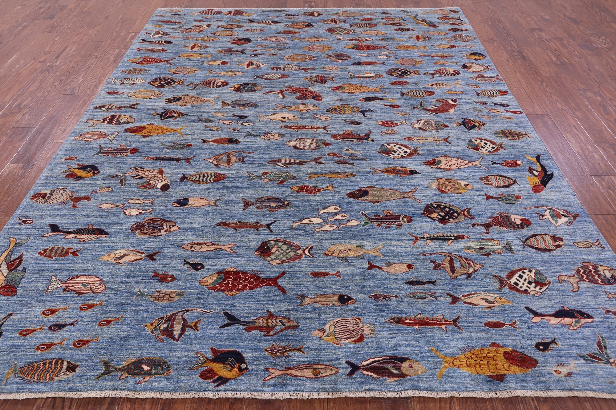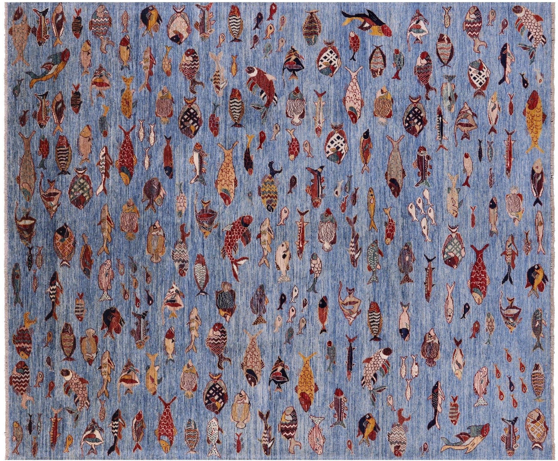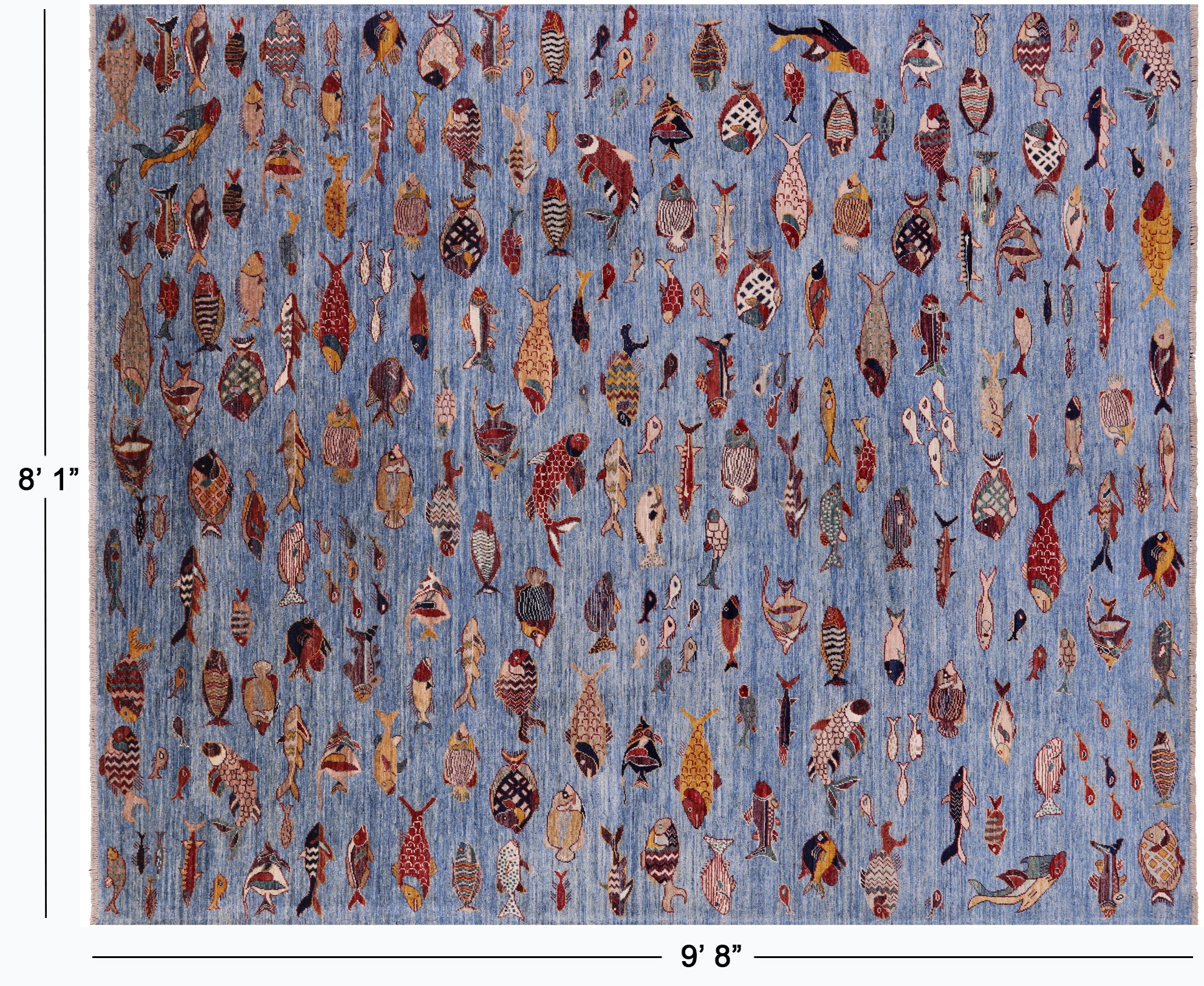 Blue Gabbeh Fish Design Handmade Rug 8' 1" X 9' 8" - Q20822