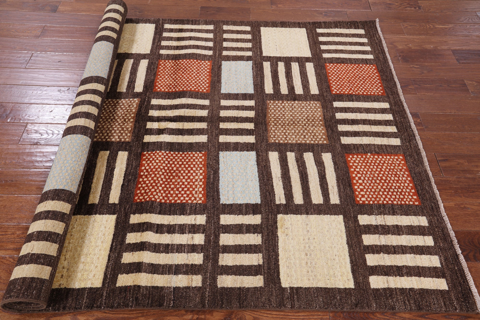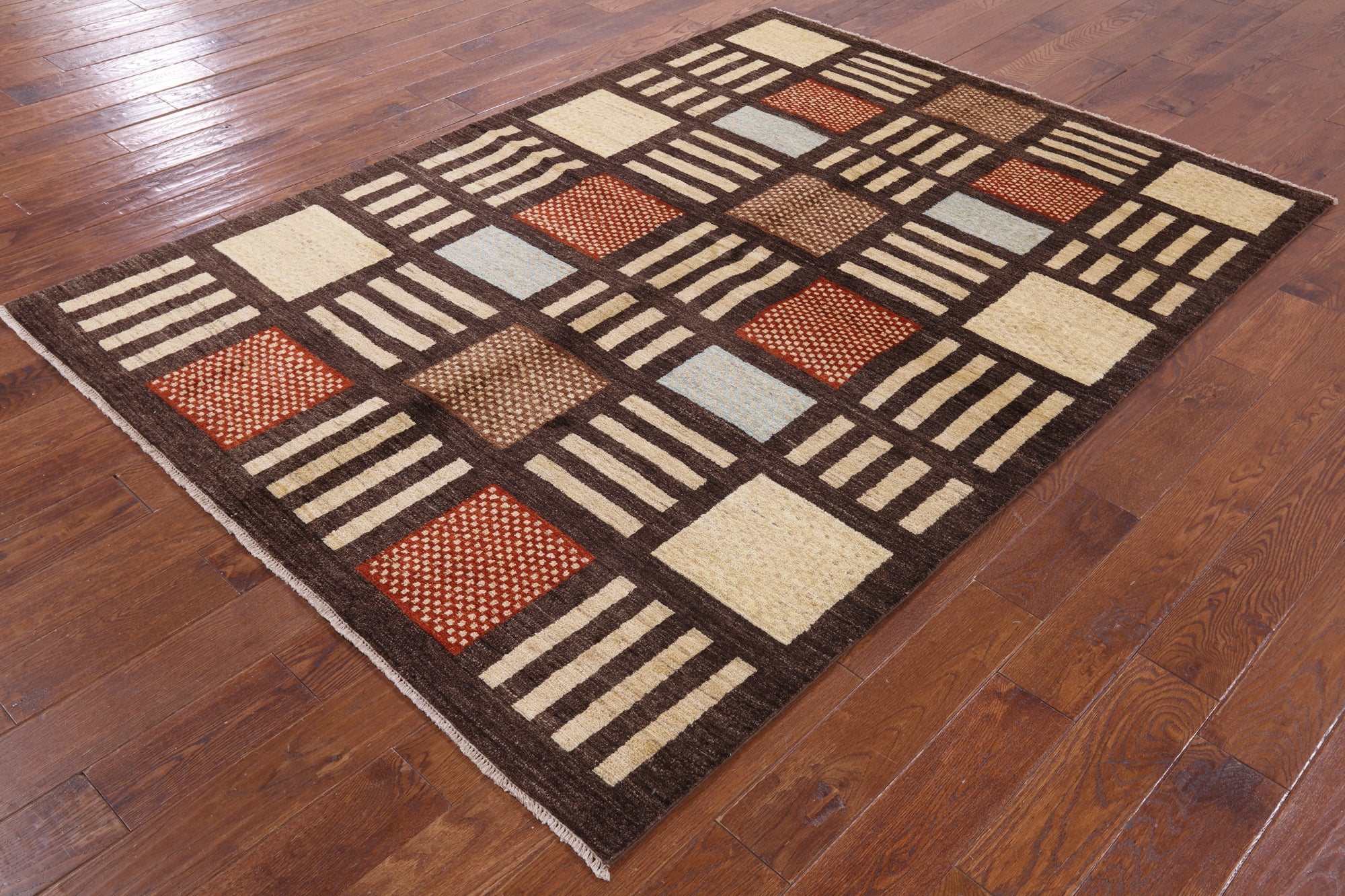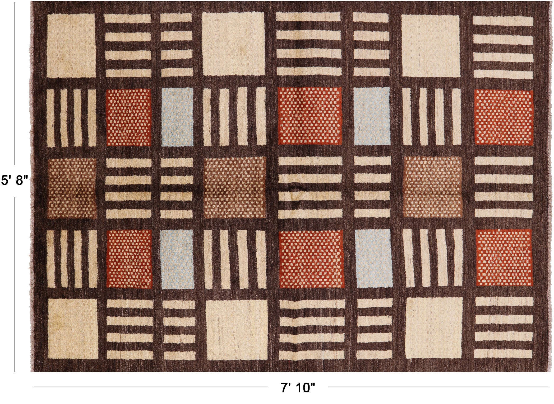 Brown 5' 8" X 7' 10" Persian Gabbeh Hand Knotted Wool Rug - H6292
