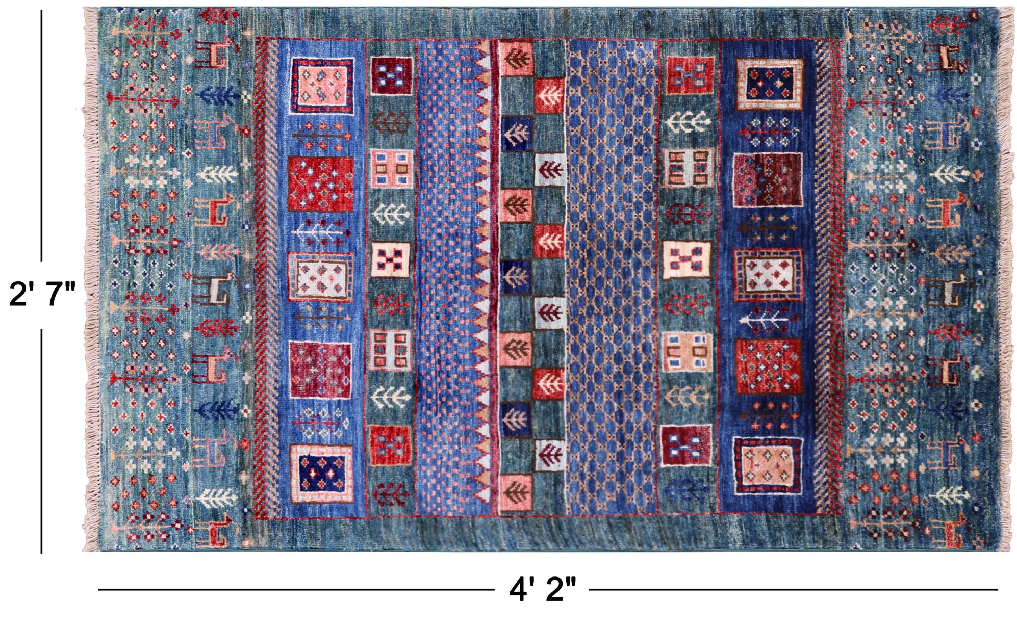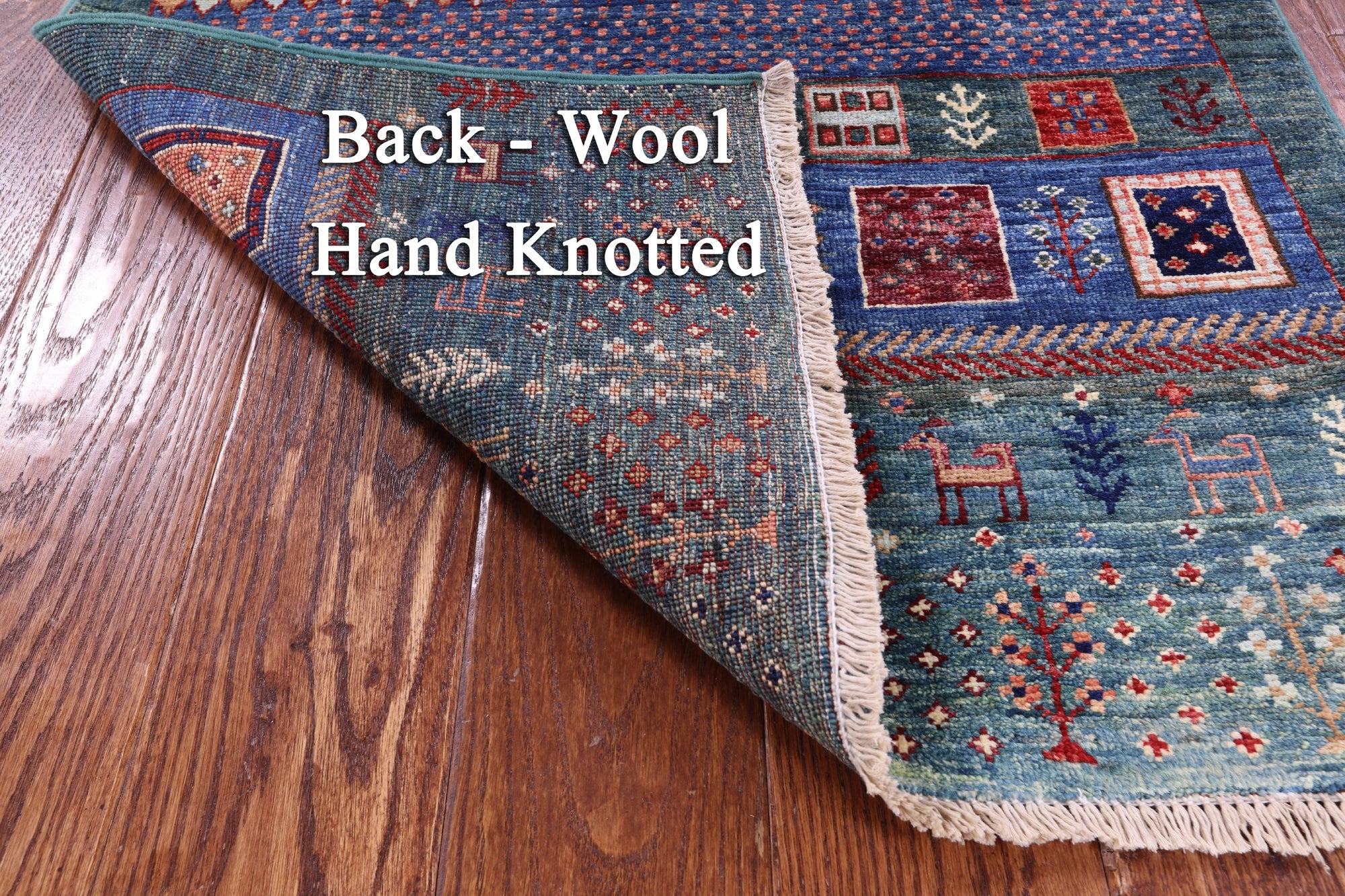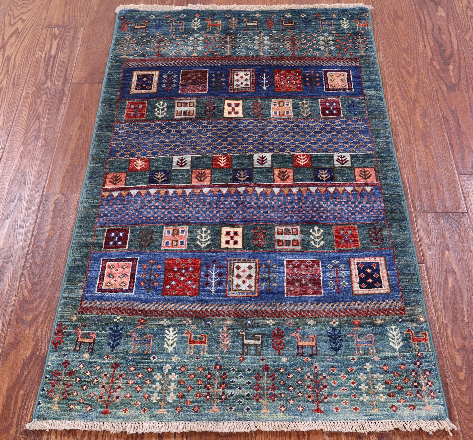 Green 2' 7" X 4' 2" Handmade Persian Gabbeh Tribal Rug - Q22987 is backordered and will ship as soon as it is back in stock.