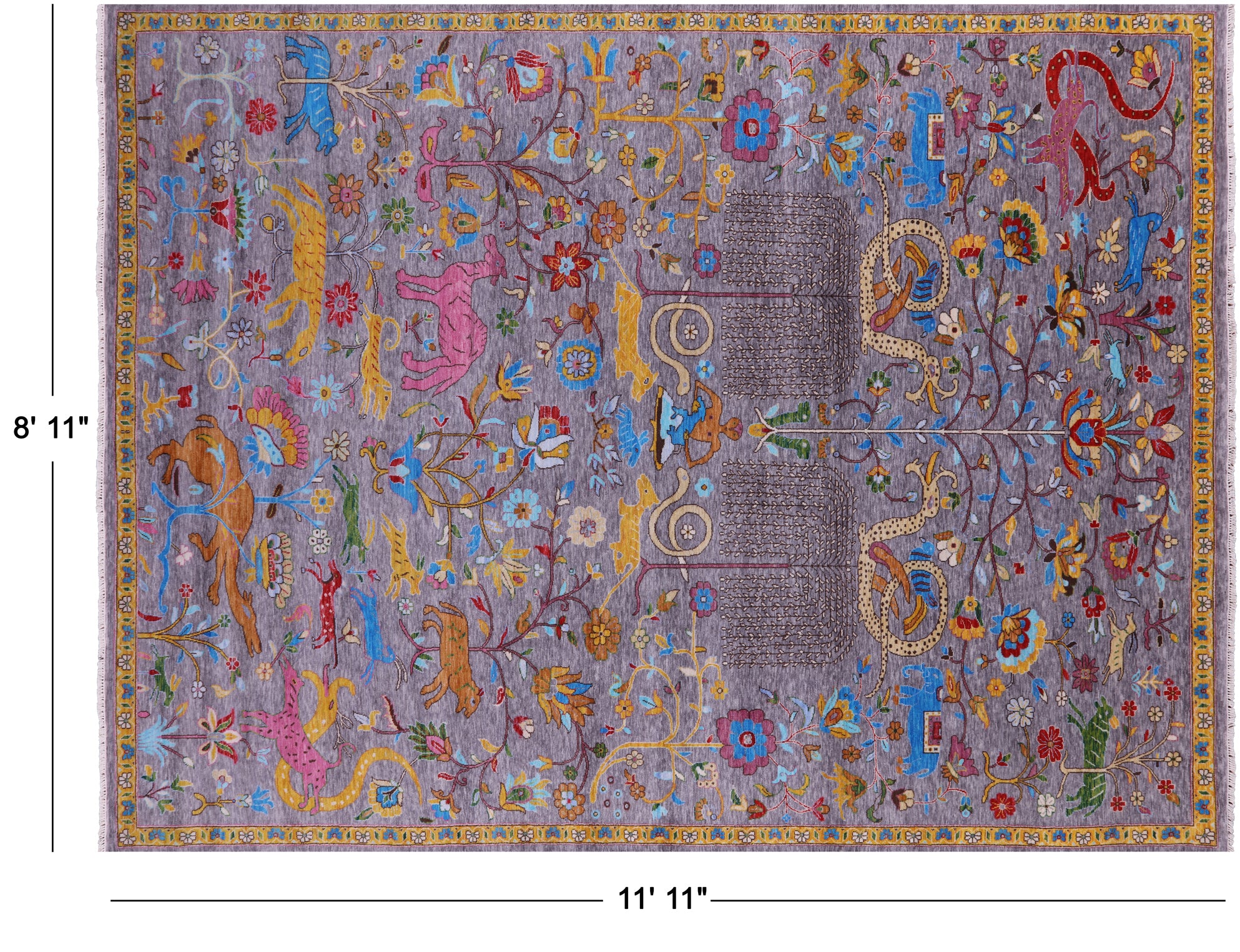 Grey Persian Gabbeh Tribal Handmade Wool Rug 8' 11" X 11' 11" - Q23458