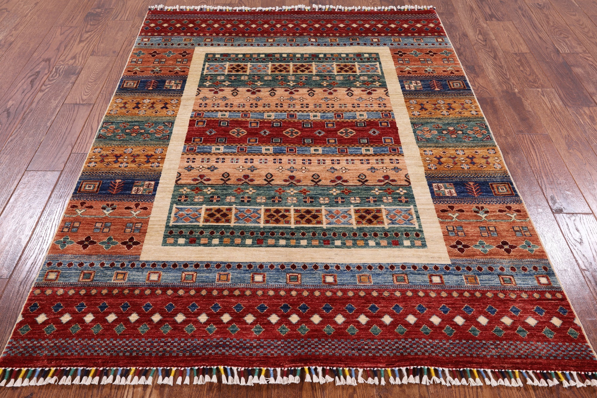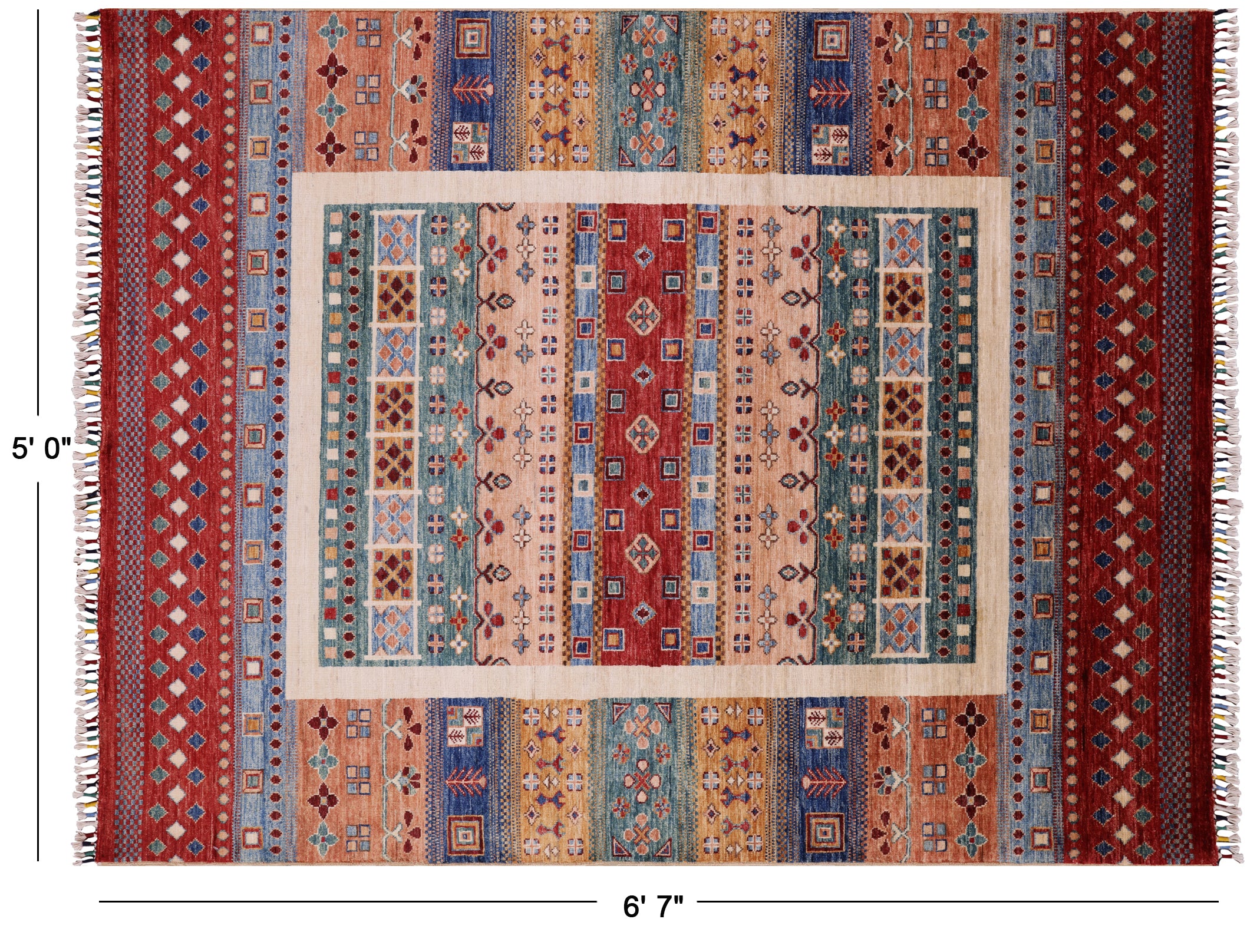 Hand Knotted Tribal Persian Gabbeh Rug 5' 0" X 6' 7" - P9217